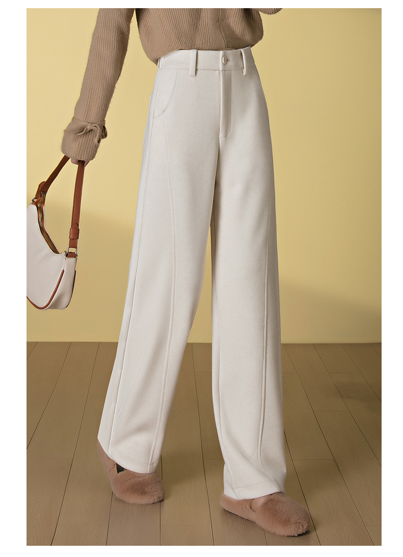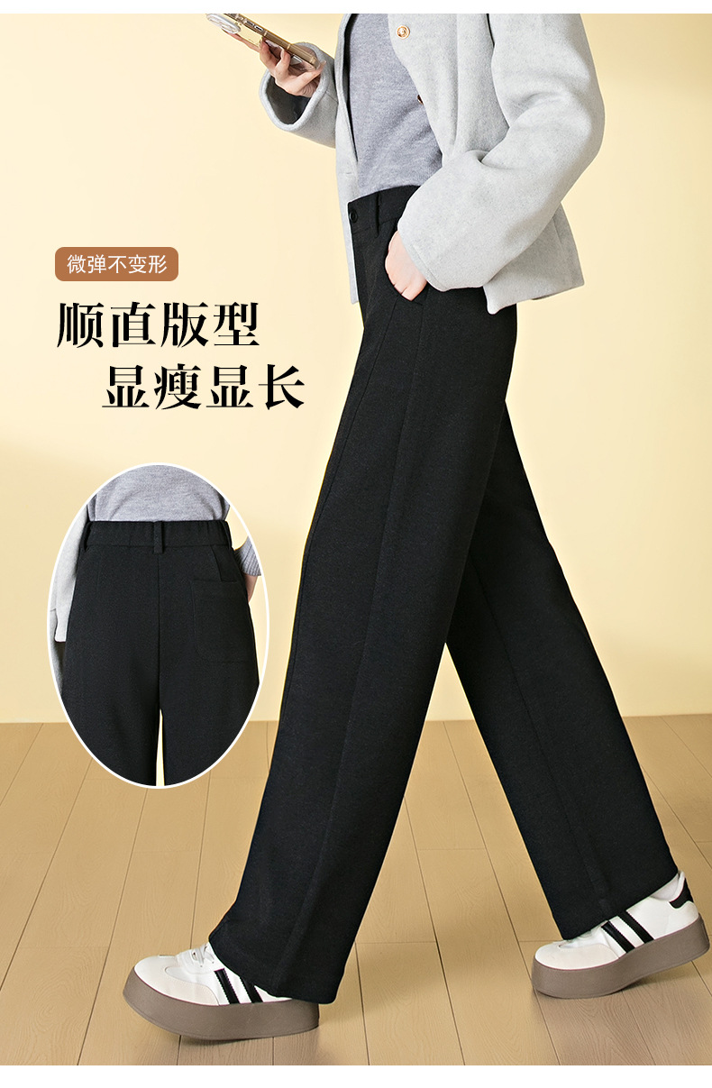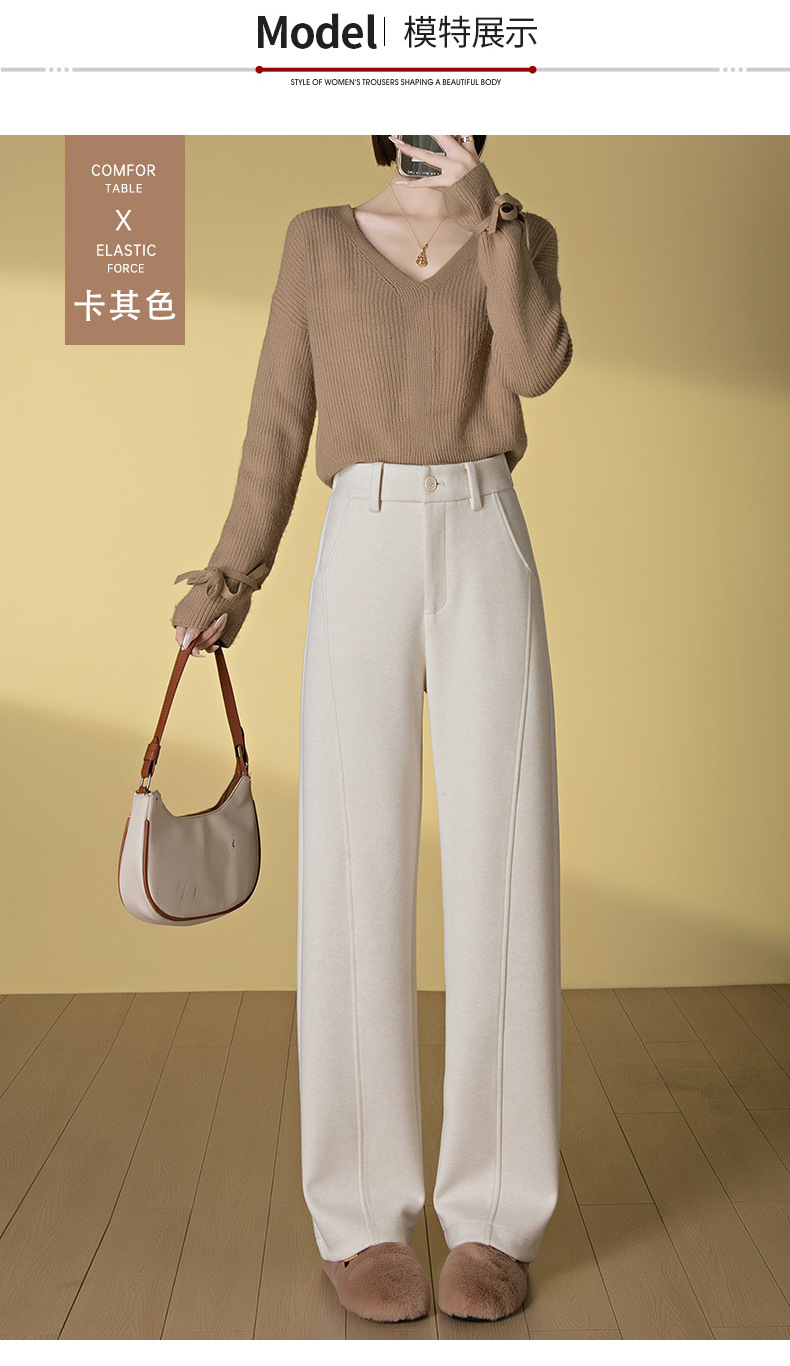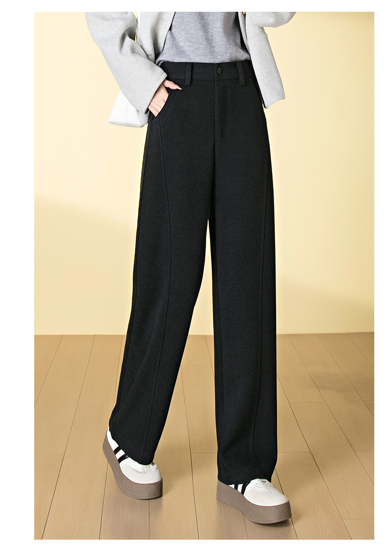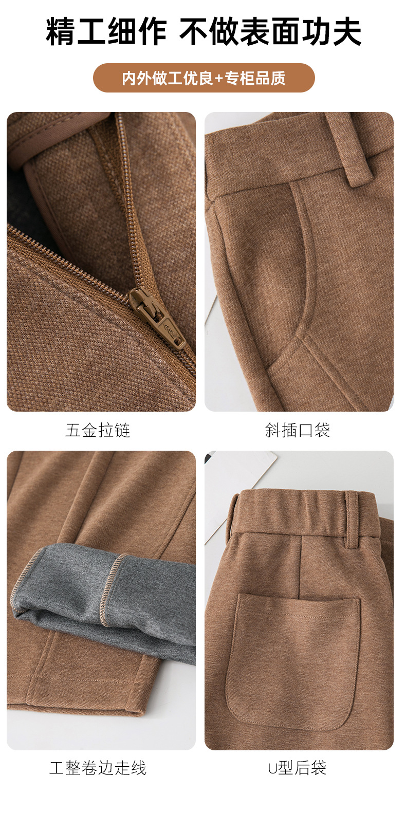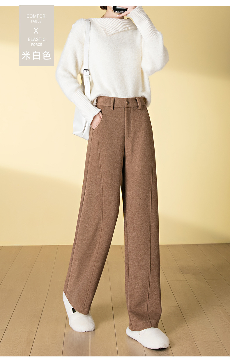 HSS 3076羊毛呢弯刀裤美拉德色系显瘦休闲窄版阔腿裤 商品图3