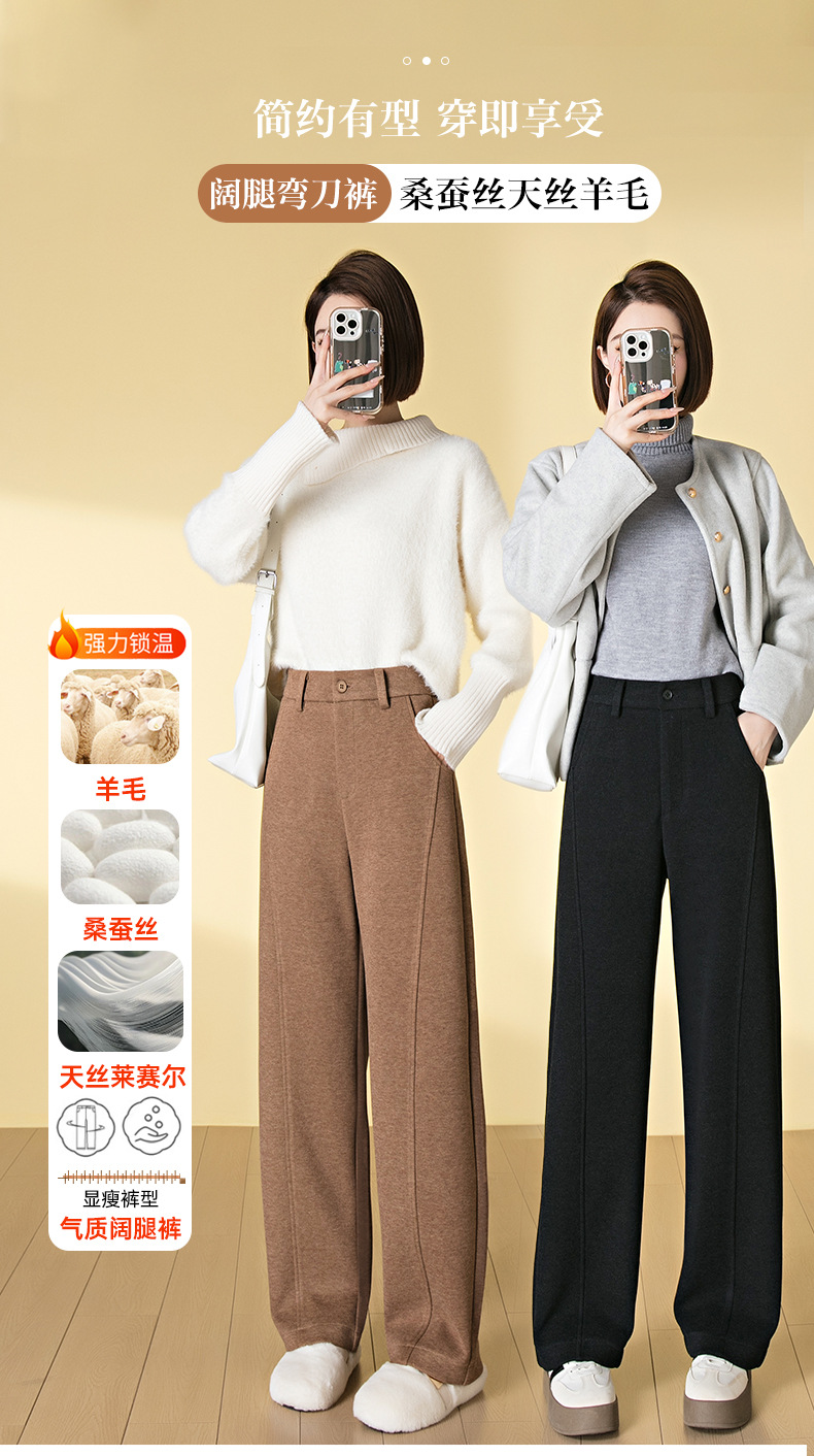 HSS 3076羊毛呢弯刀裤美拉德色系显瘦休闲窄版阔腿裤 商品图0