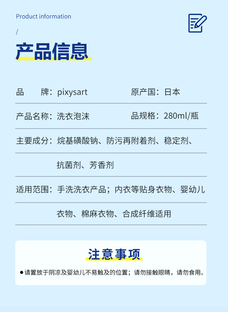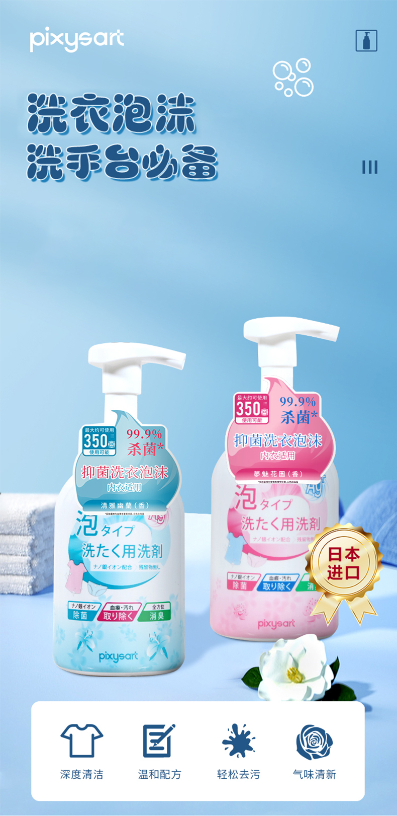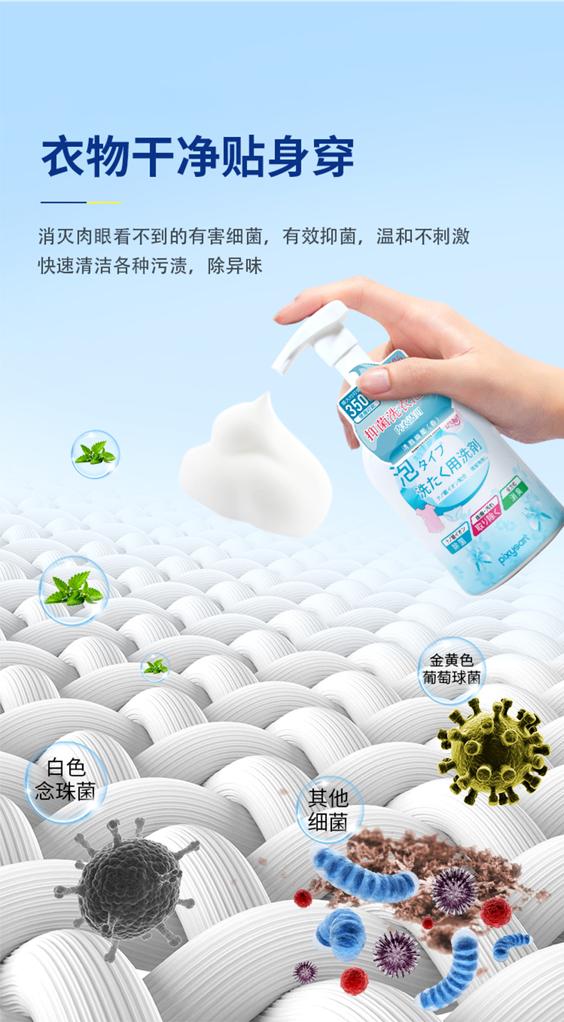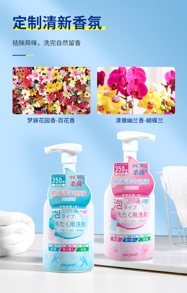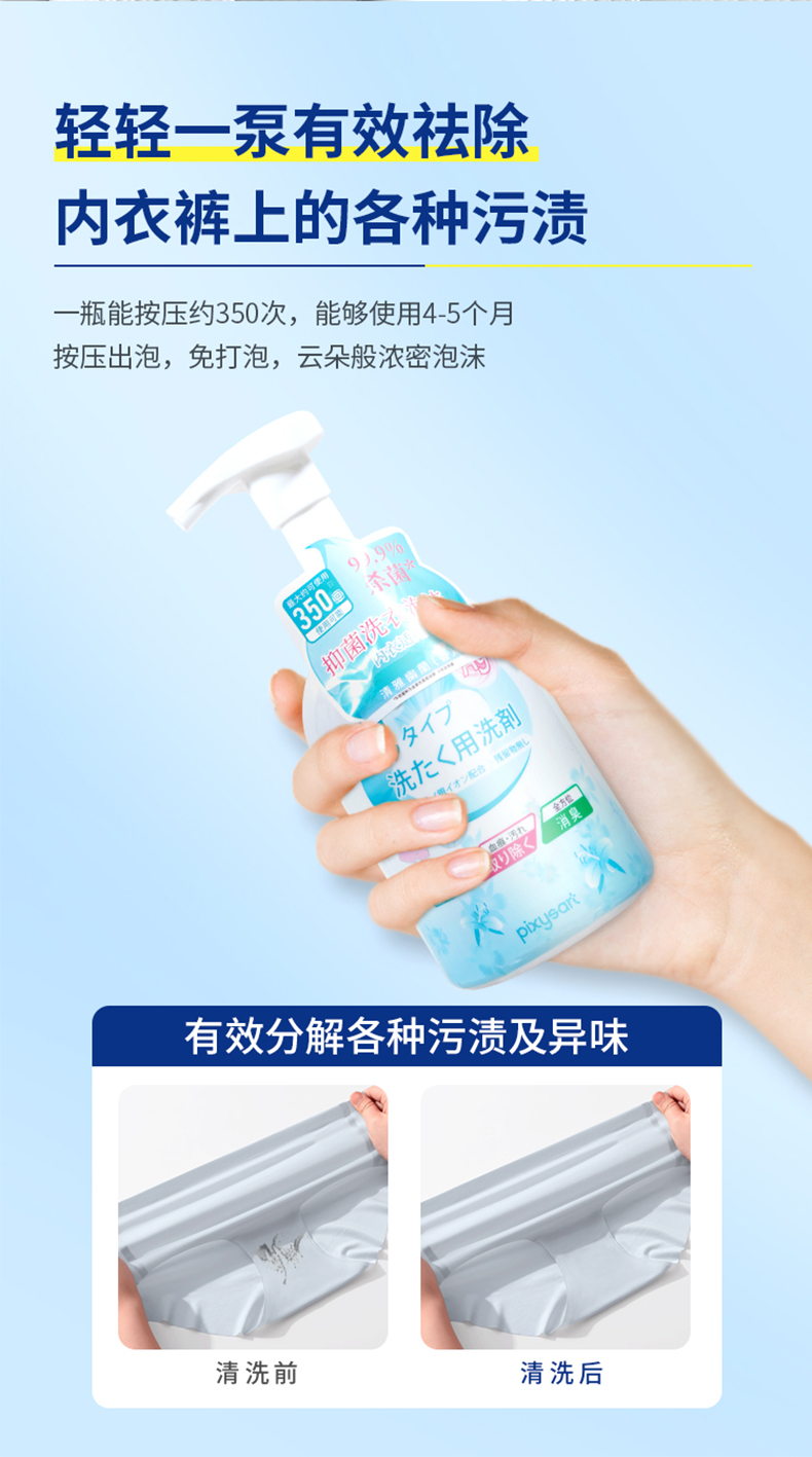 【温和配方】pixysart日本内衣洗衣泡沫轻松去污气味清新轻松消臭除血渍