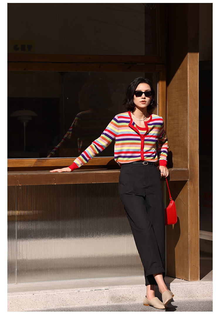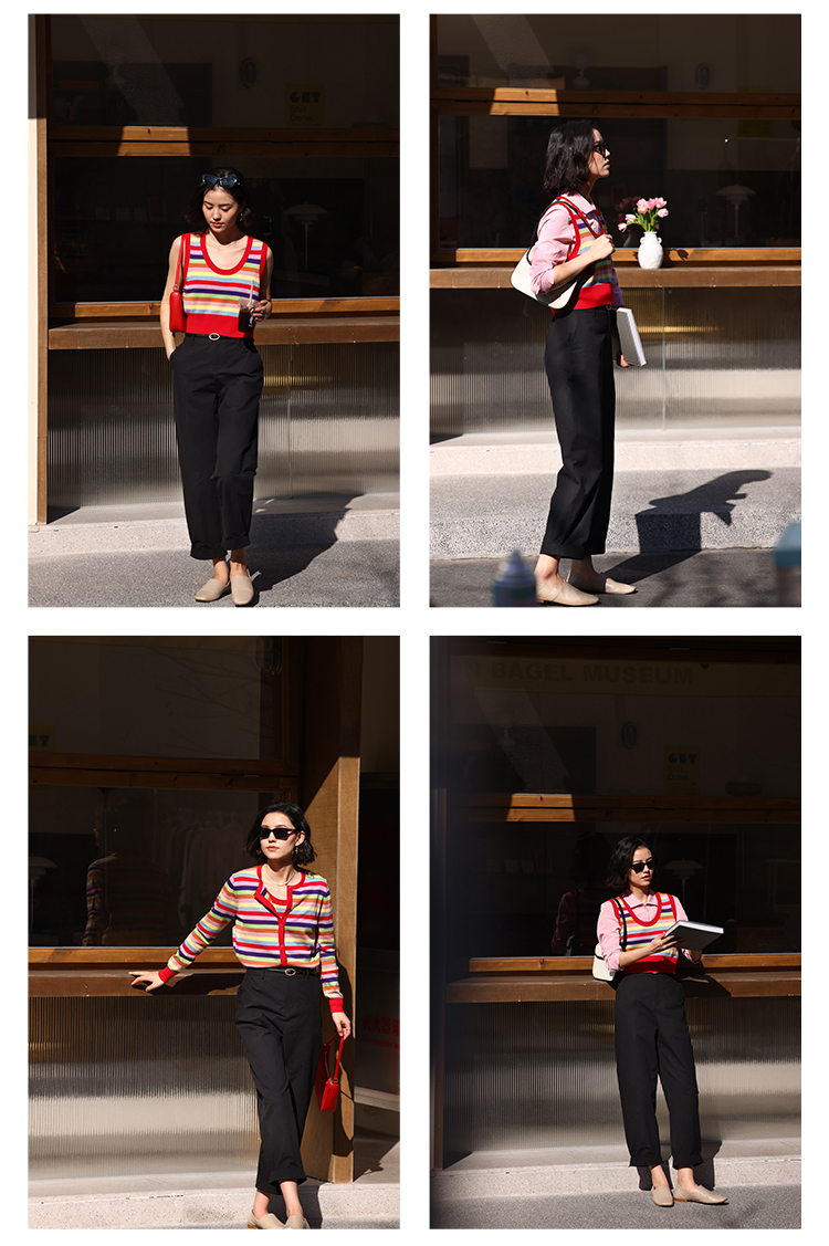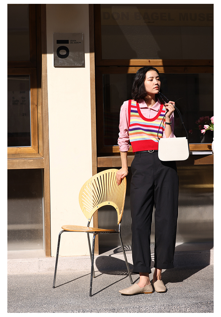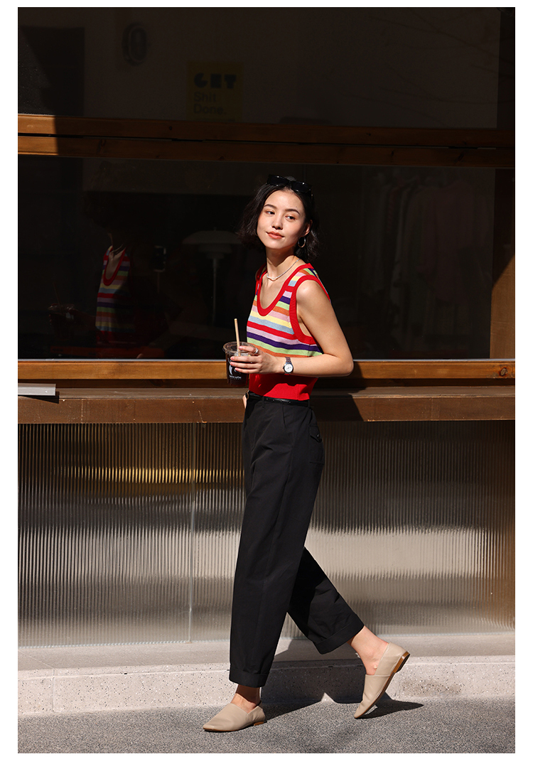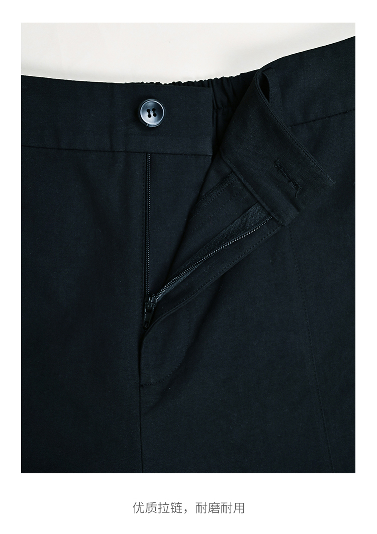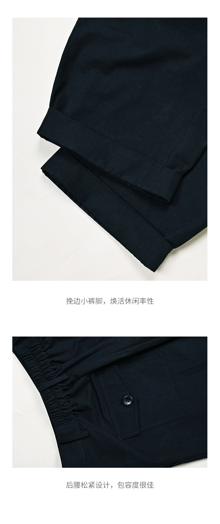 HeyDress法式九分休闲裤女春季高腰宽松显瘦挽边设计感纯棉裤子