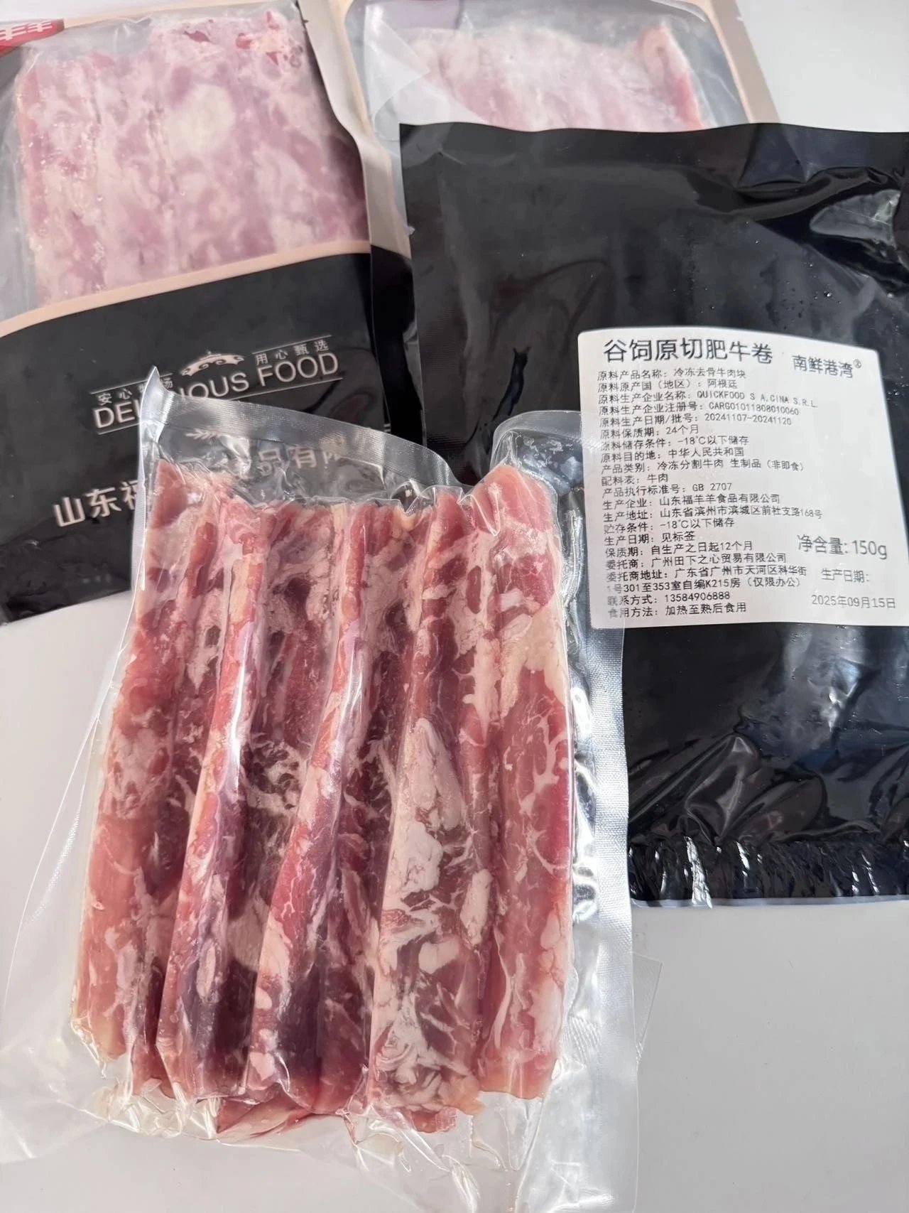 【团品】:南鲜港湾原切肥牛卷/羊肉卷 【规格1】:进口谷饲原切肥牛卷150g*10袋 【规格2】:进口原切羊肉卷150g*10袋 【规格3】:进口肥牛卷150g*5袋+进口羊肉卷150g*5袋 【分装日期】:近期 【保质期】:12个月 【发货地】:山东日照 【发货快递】:顺丰 【发货时效】:72小时 【不发货地区】新疆,西藏,青海,甘肃,云南,海南,以及港澳台 【加运费地区】黑龙江+2元 【关于售后】 1.产品发出不支持无理由拒收拦截撤单改地址 2.如出现异常情况,请带面单+产品拍照+产品包装照片与我们联系,我们会第一时间处理,如产品有质量问题可在收货12小时之内,联系客服进行售后或者补发 3.运输过程引起的不真空 不售后! 4.加工的肥牛/肥羊都是铅笔卷,因为抽真空会使产品紧缩,与产品本身有点区别,不抽真空不会变形,真空后会使铅笔卷变形不售后,介意慎拍