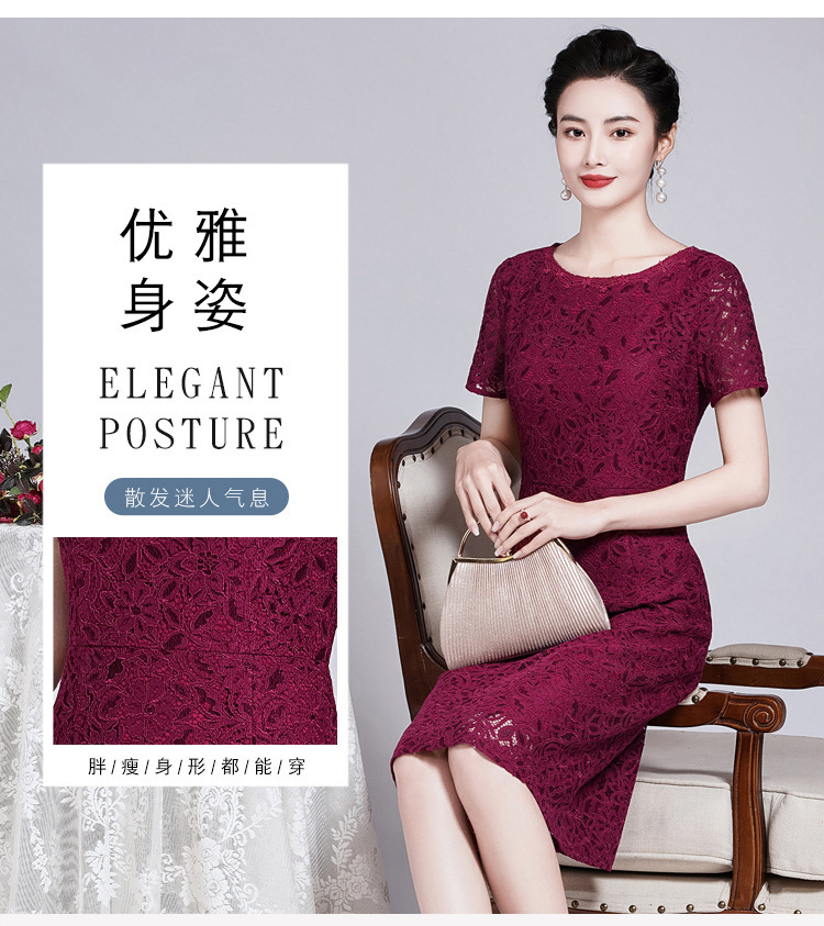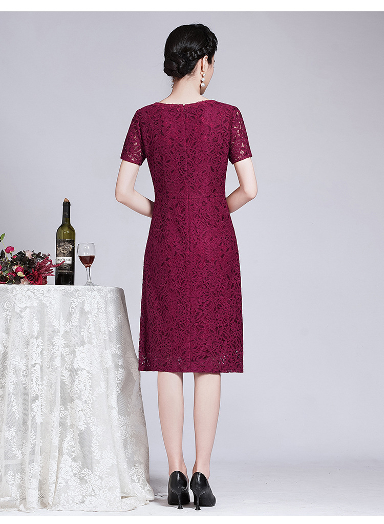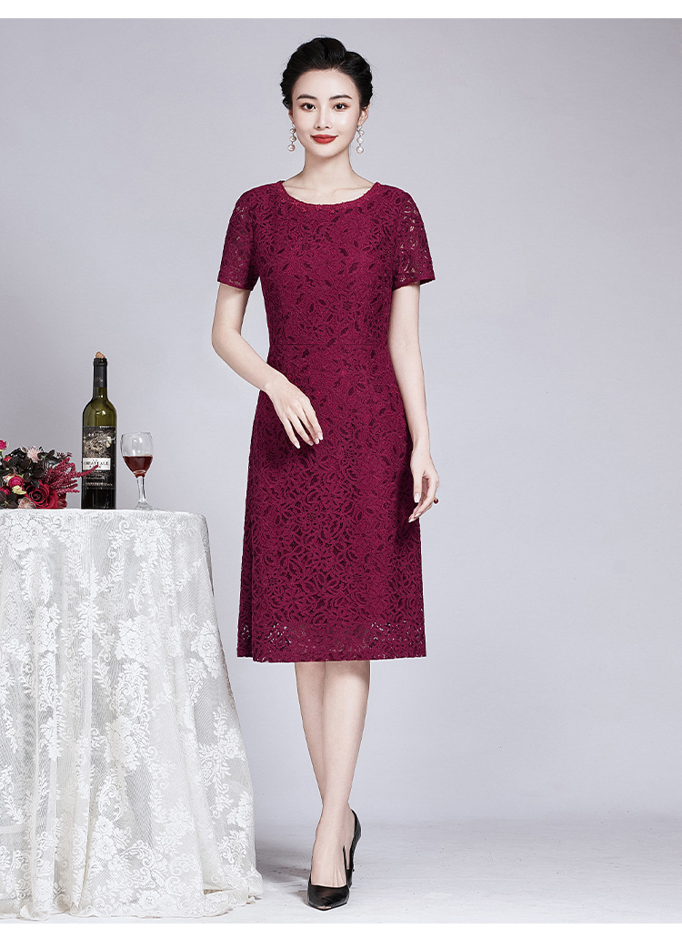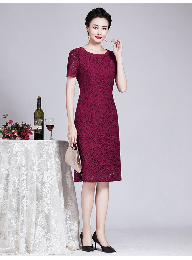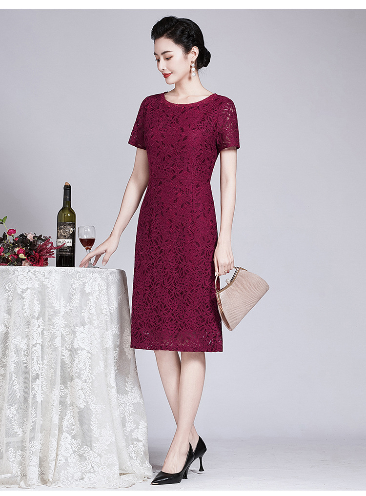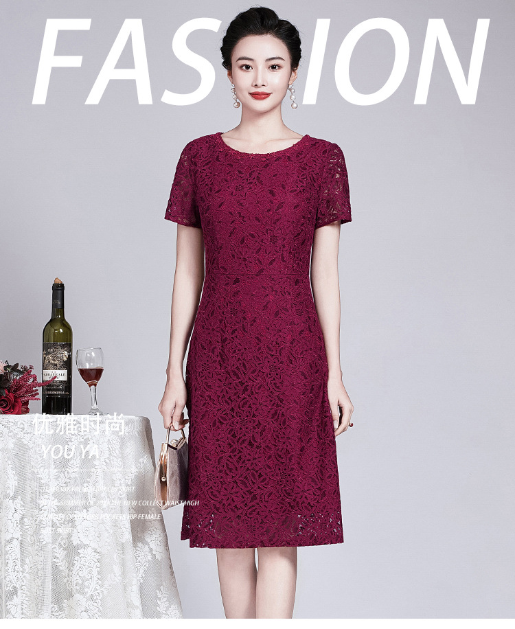 ZY-Q5696夏装新款酒红色蕾丝连衣裙收腰显瘦优雅