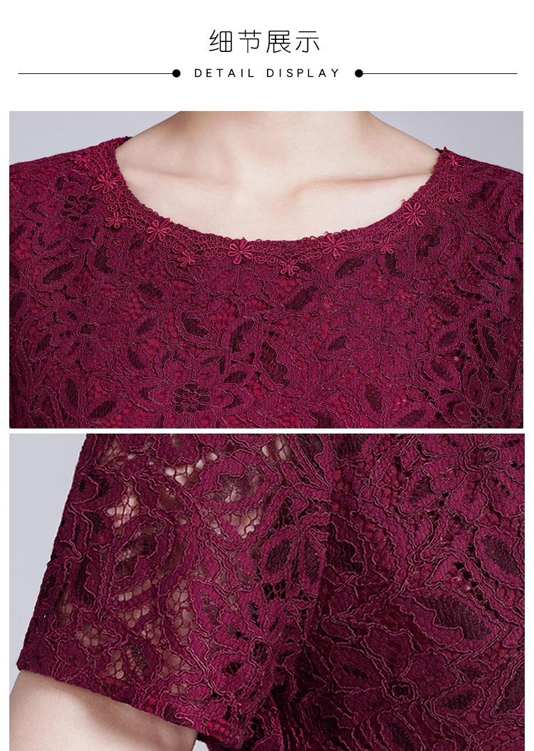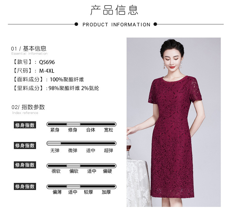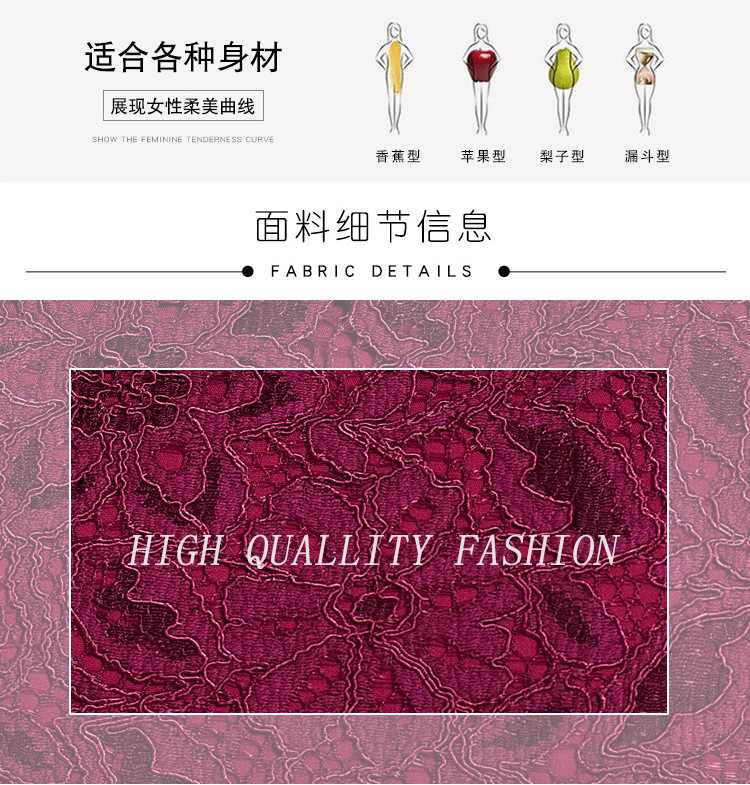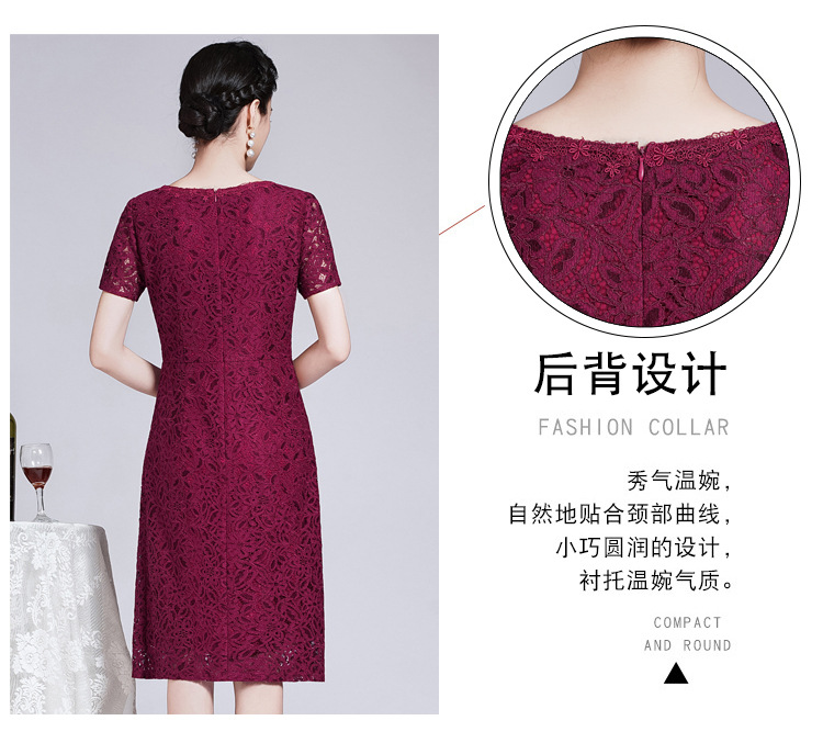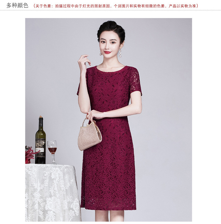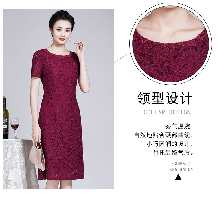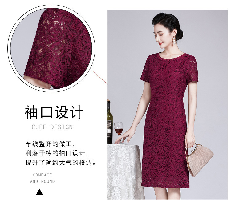 ZY-Q5696夏装新款酒红色蕾丝连衣裙收腰显瘦优雅