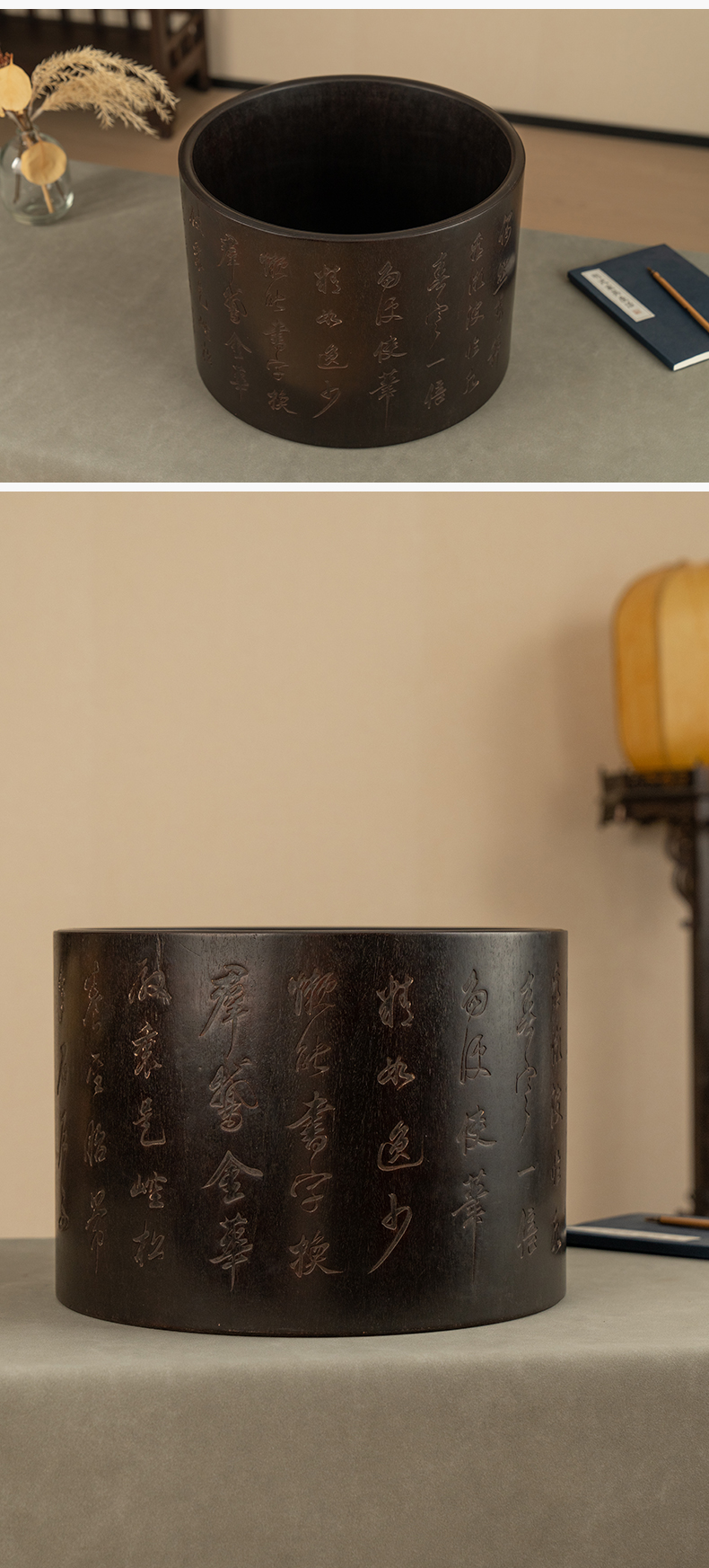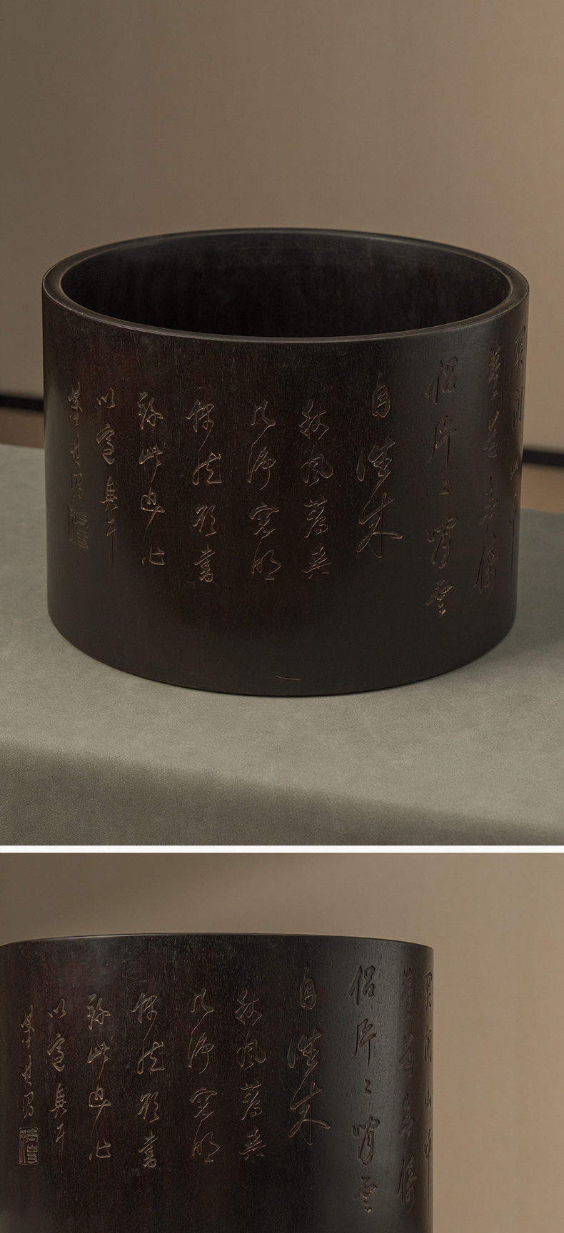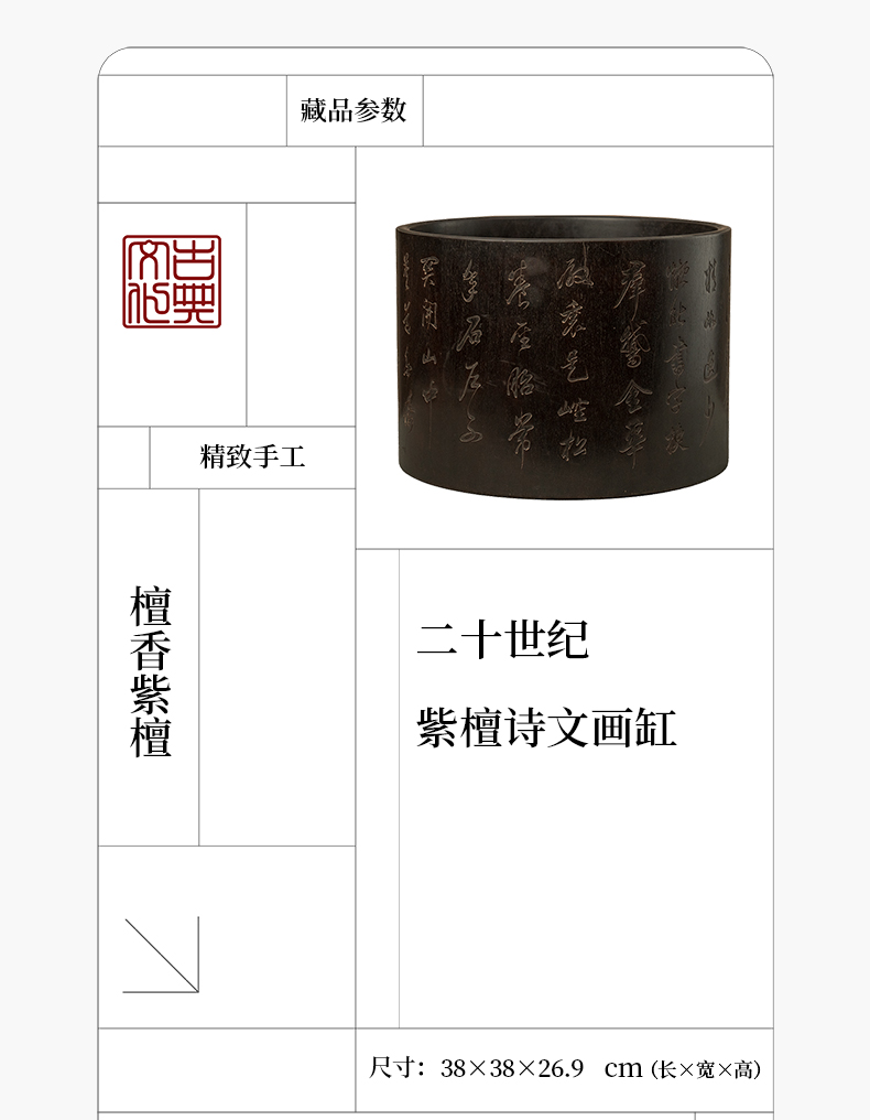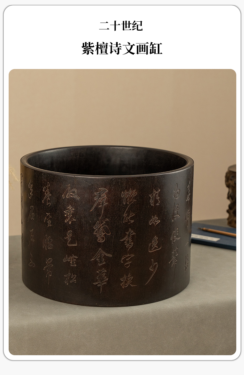 二十世纪 紫檀诗文画缸
