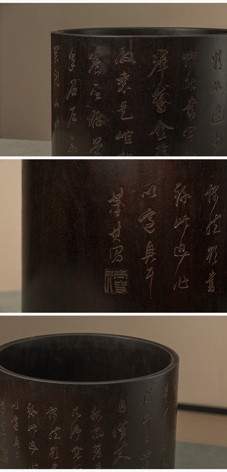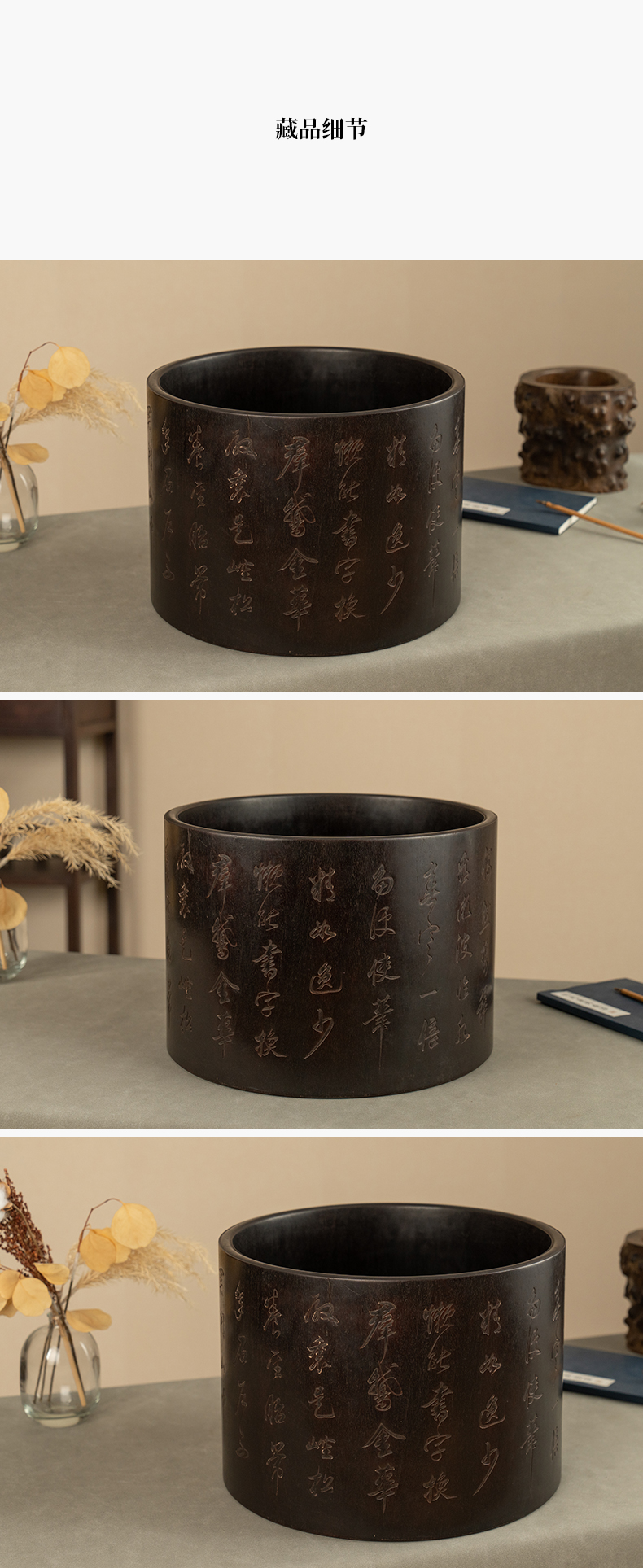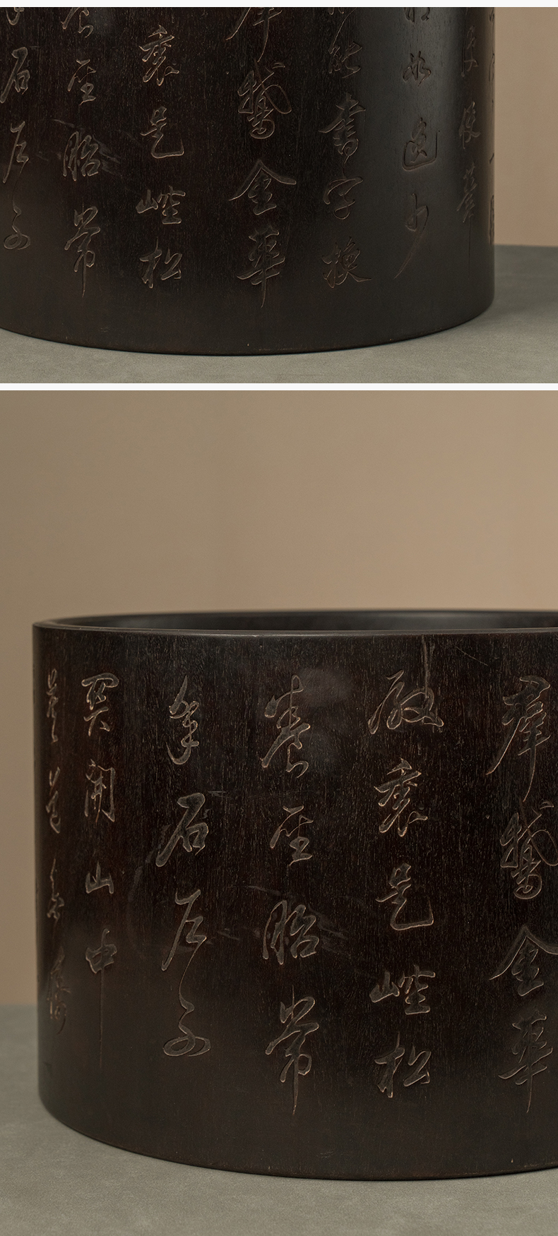 二十世纪 紫檀诗文画缸