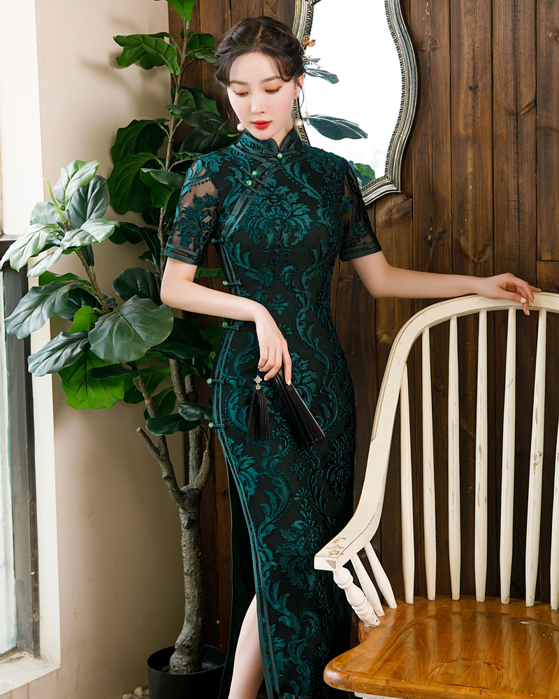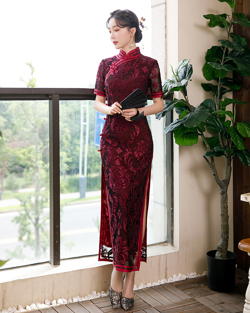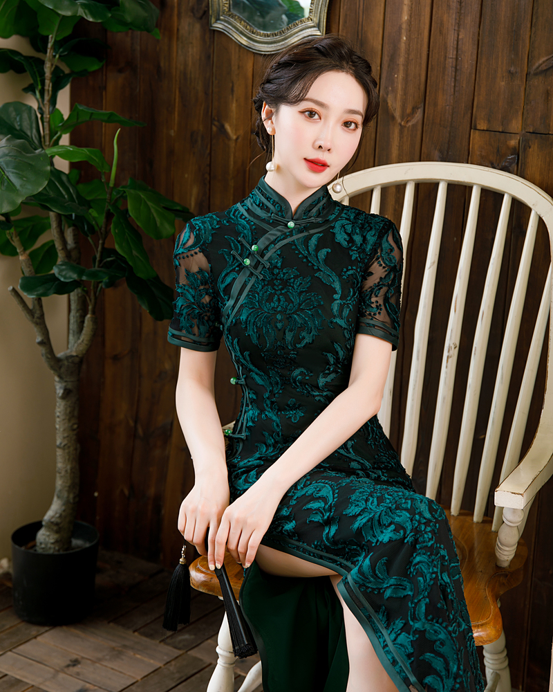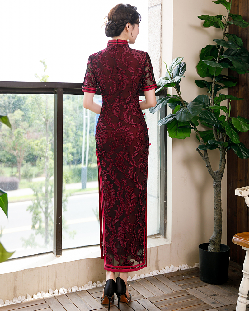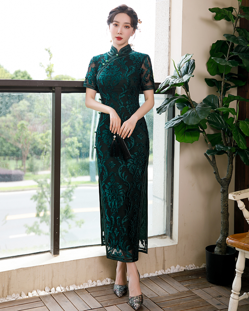 TQX182060 民国老上海旗袍女秋季2023年新款改良植绒复古妈妈装日常年轻长款