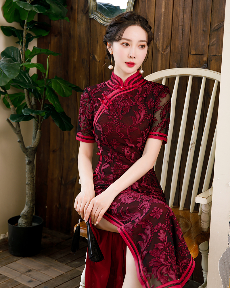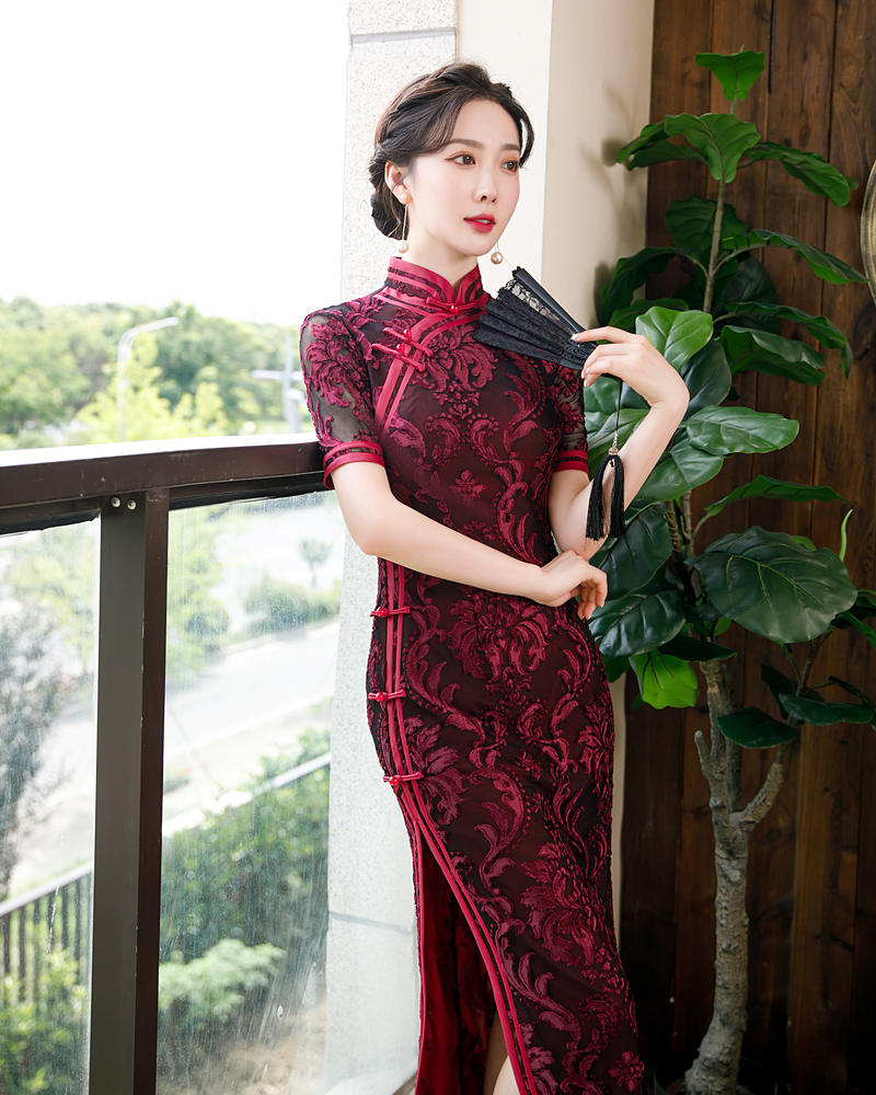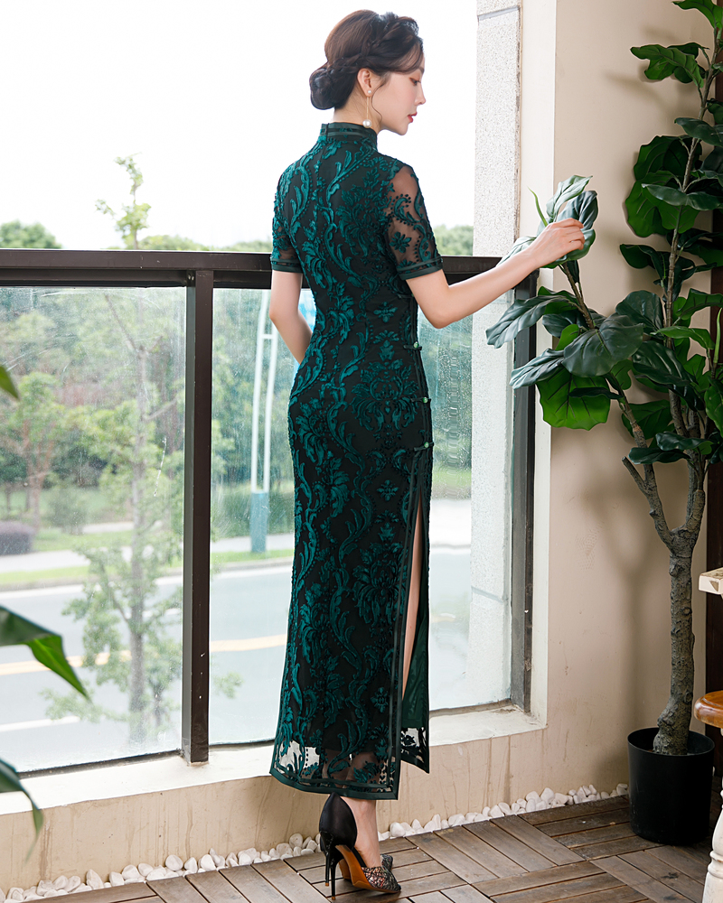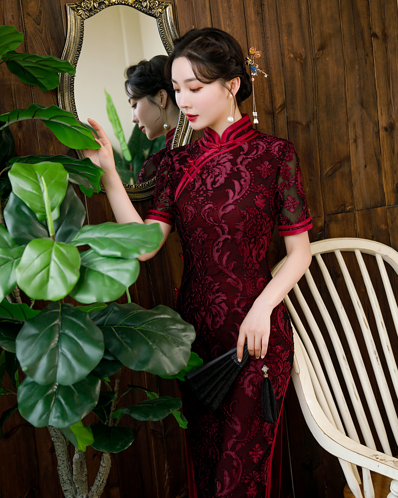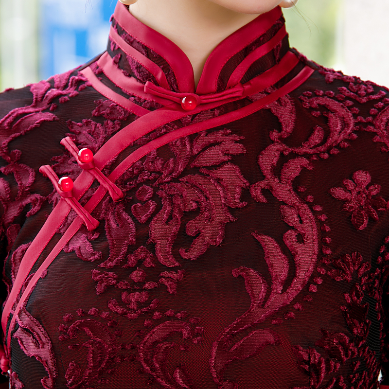 TQX182060 民国老上海旗袍女秋季2023年新款改良植绒复古妈妈装日常年轻长款