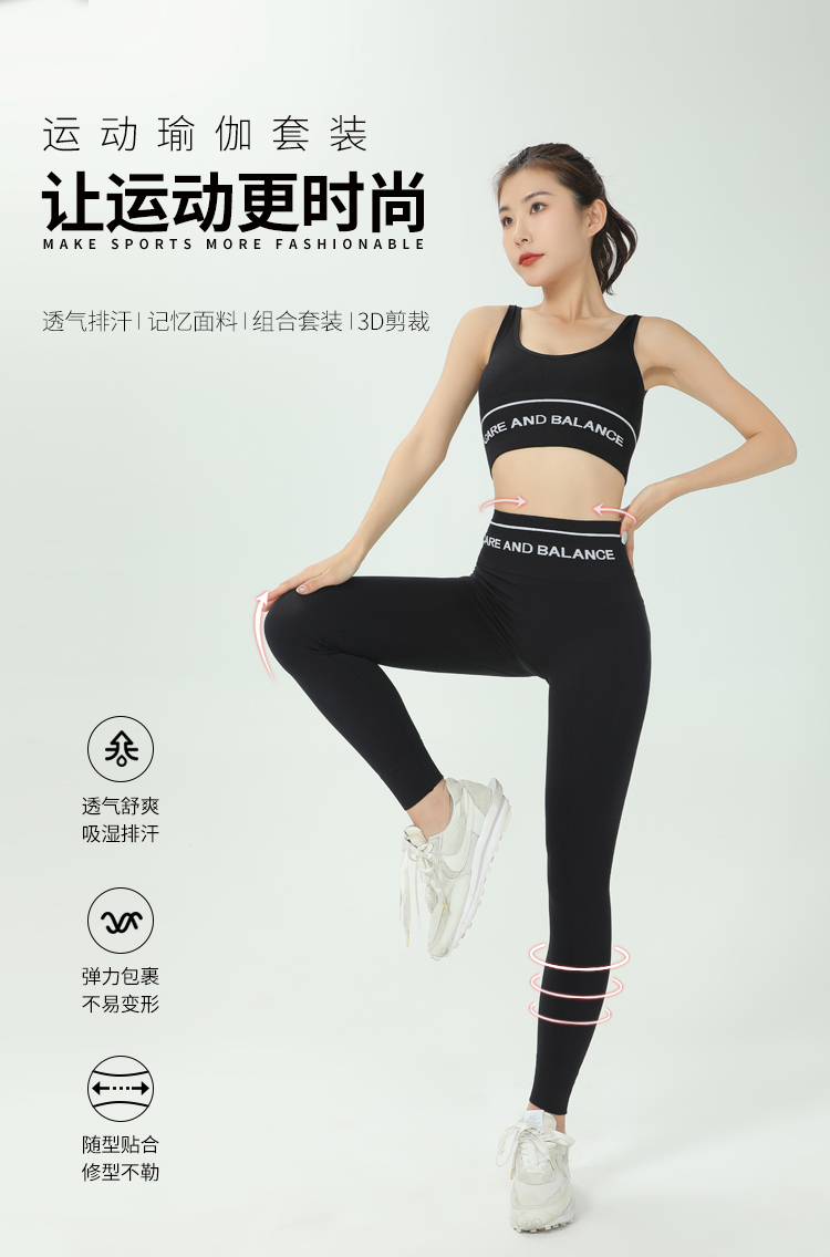 瑜伽套装 塑型裁剪 透气清爽 吸湿排汗 一体式设计 触感细腻
