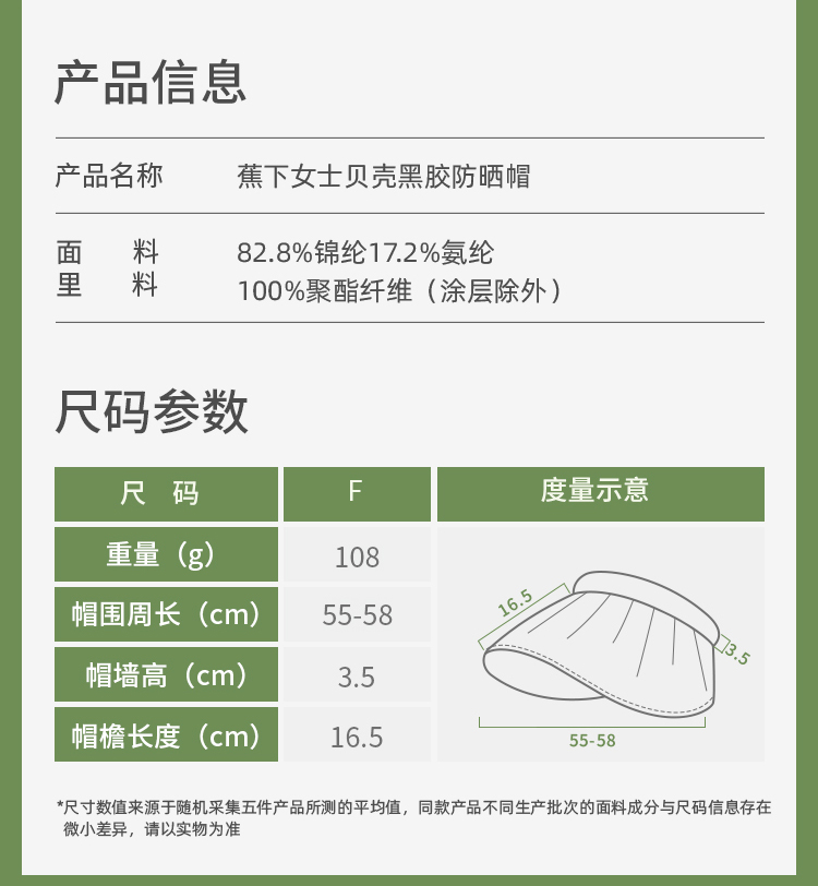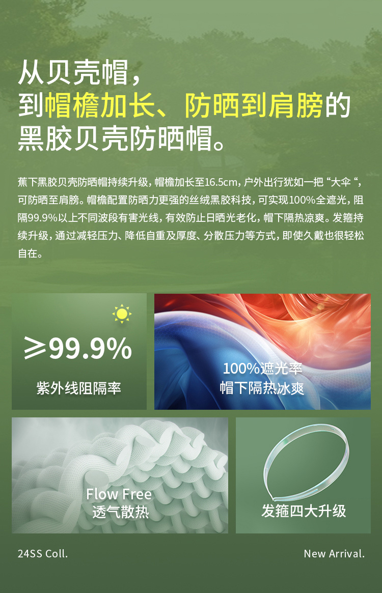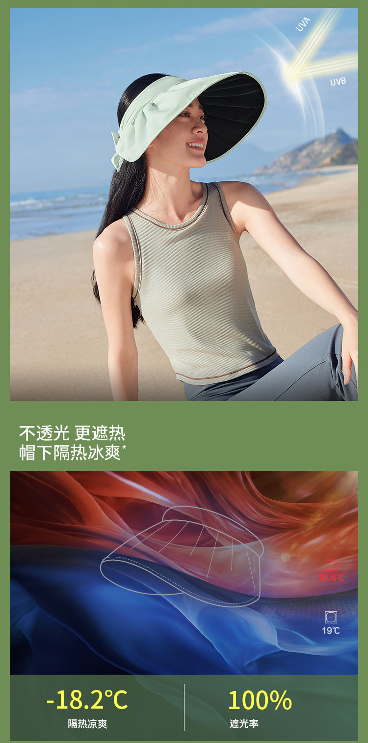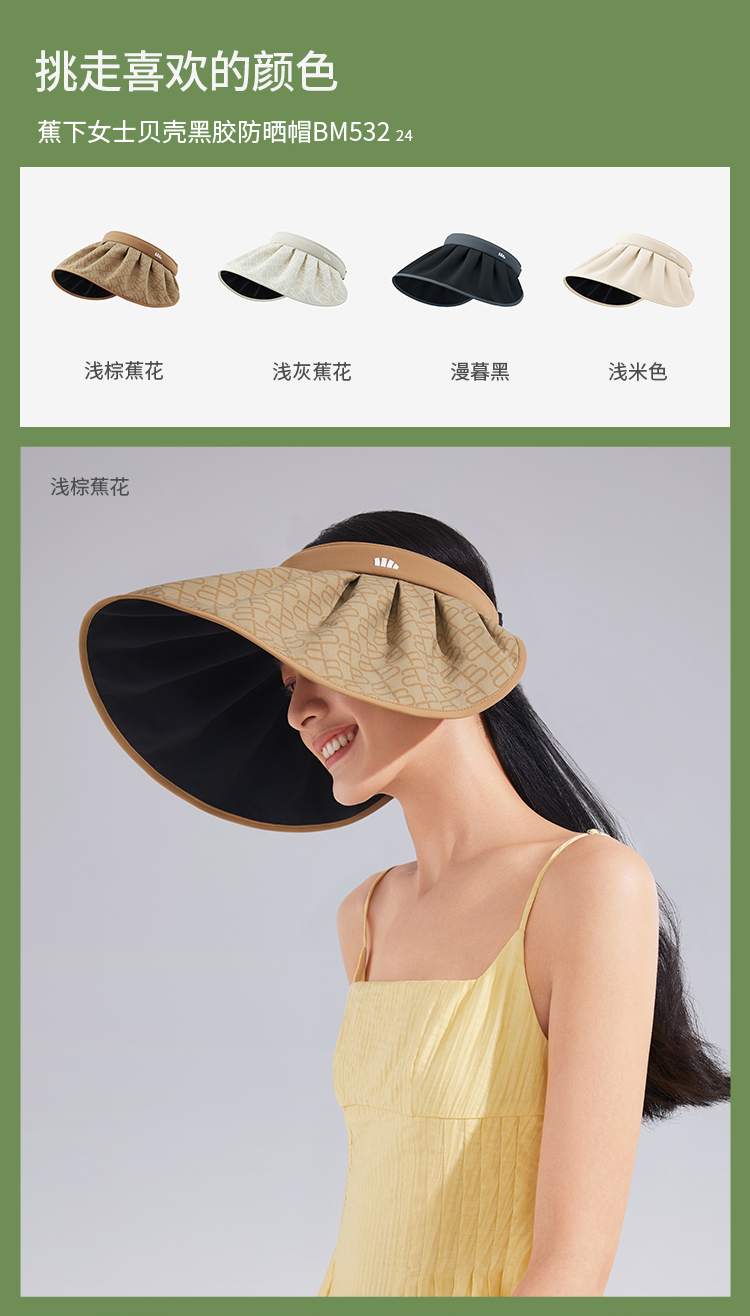 蕉下黑胶贝壳帽BM53224倍护空顶防晒全遮光女士大帽檐遮阳太阳帽