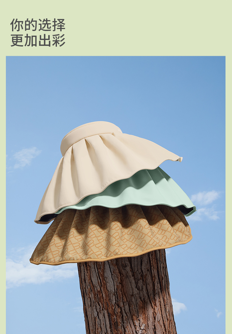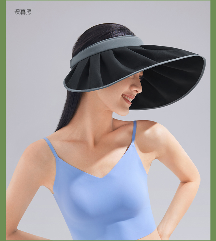 蕉下百褶贝壳帽BM561丝绒黑胶防晒防紫外线大帽檐户外遮阳空顶帽