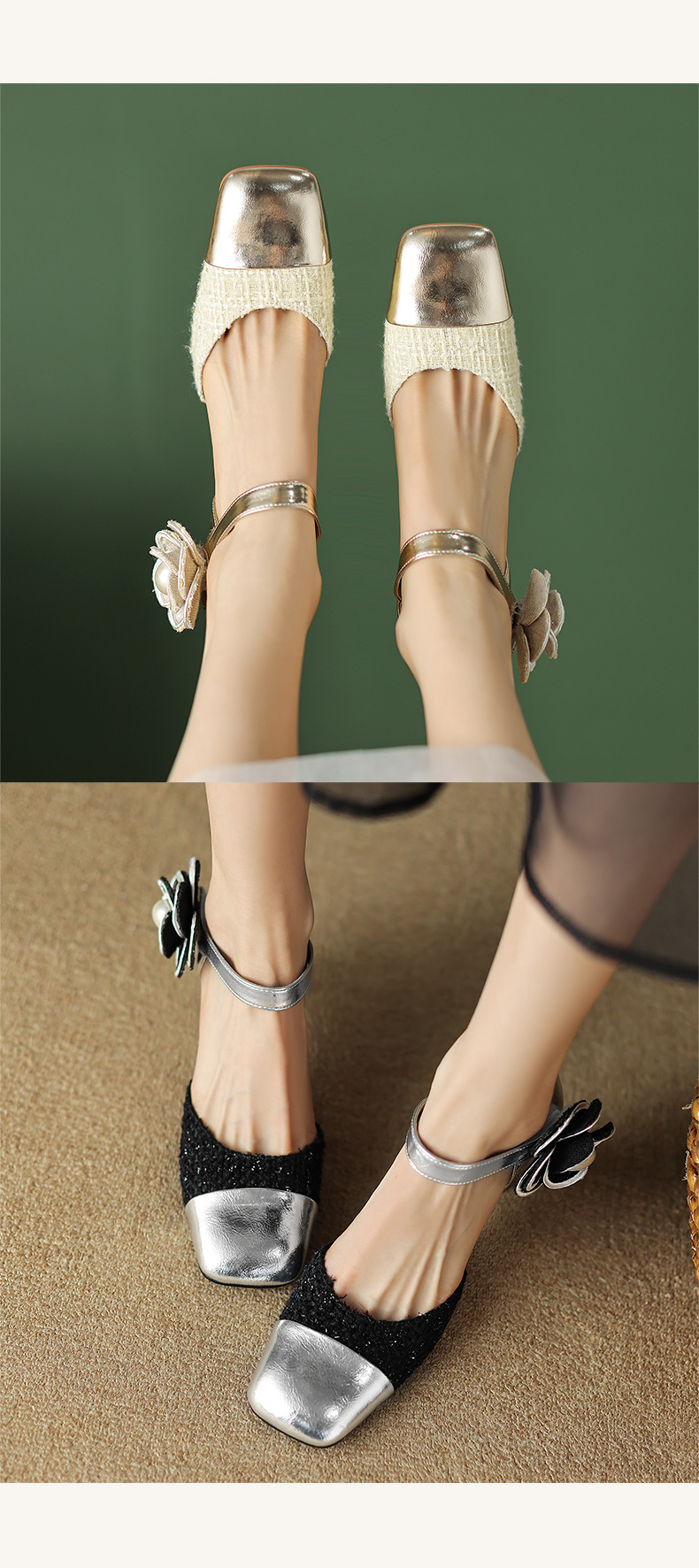 优雅百搭,粗跟花朵时尚中空凉鞋TYM-6187