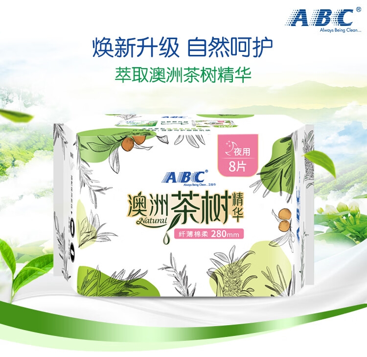 ABC夜用纤薄绵柔表层卫生巾280mm*8片
