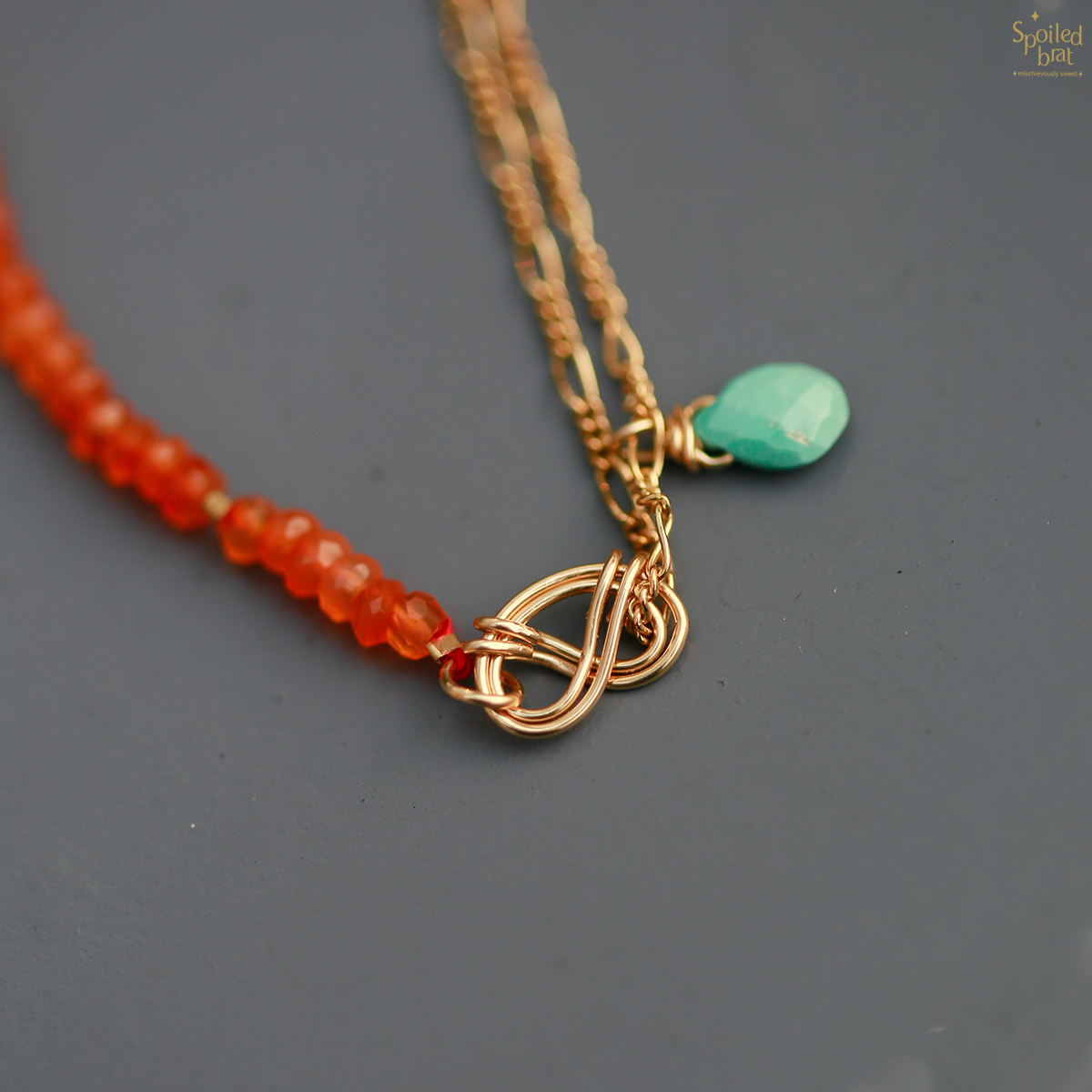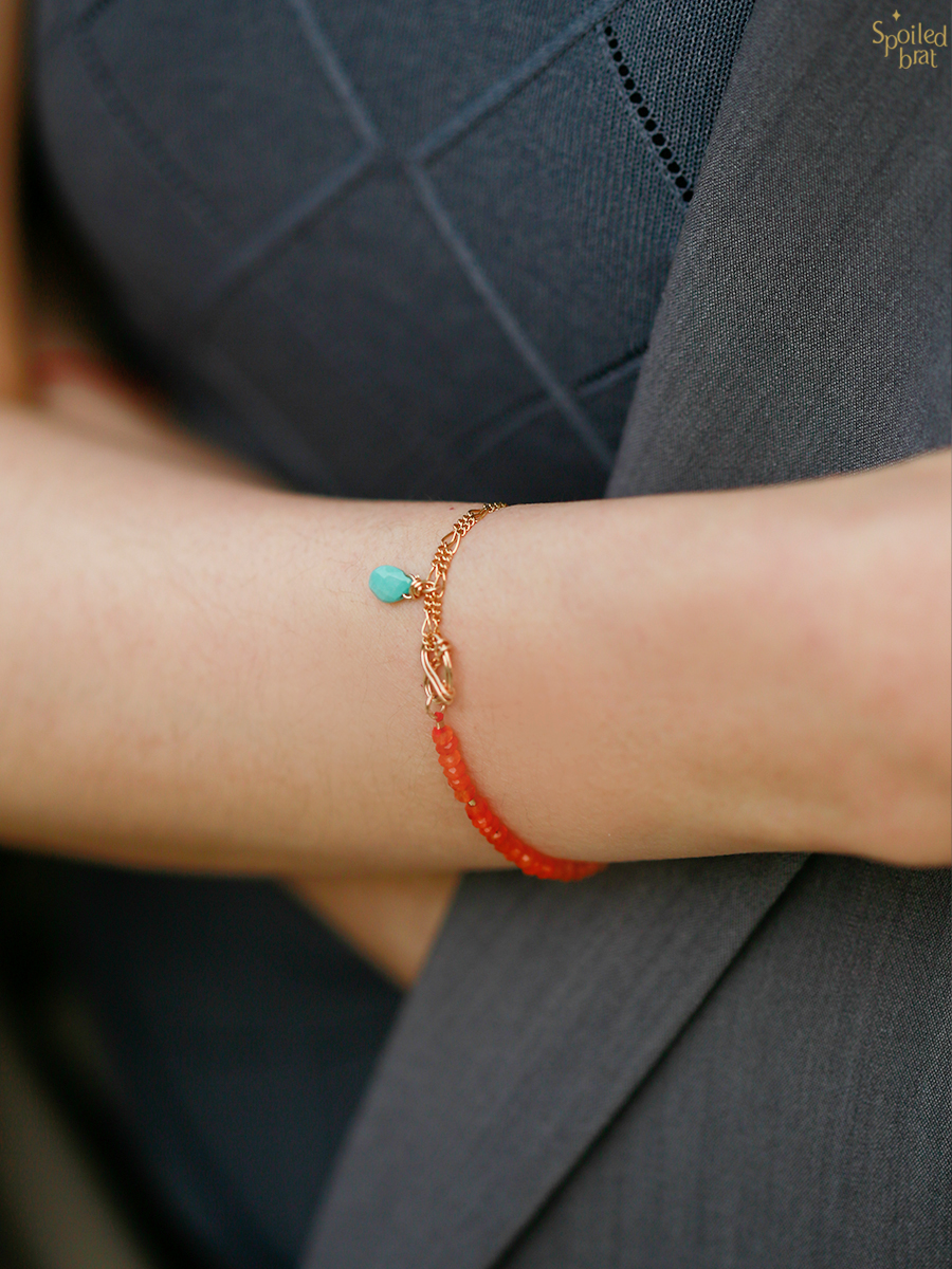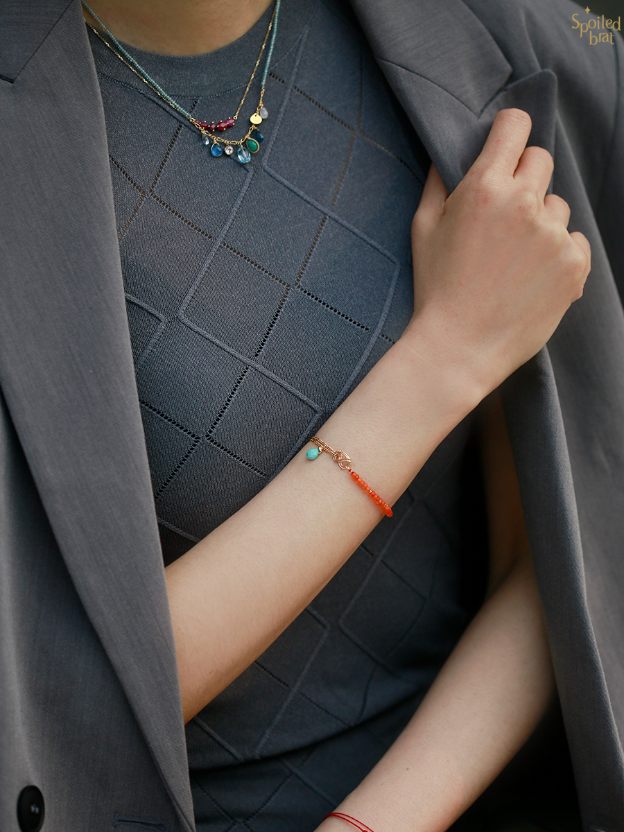 材质:14K注金、橘玛瑙、绿松石