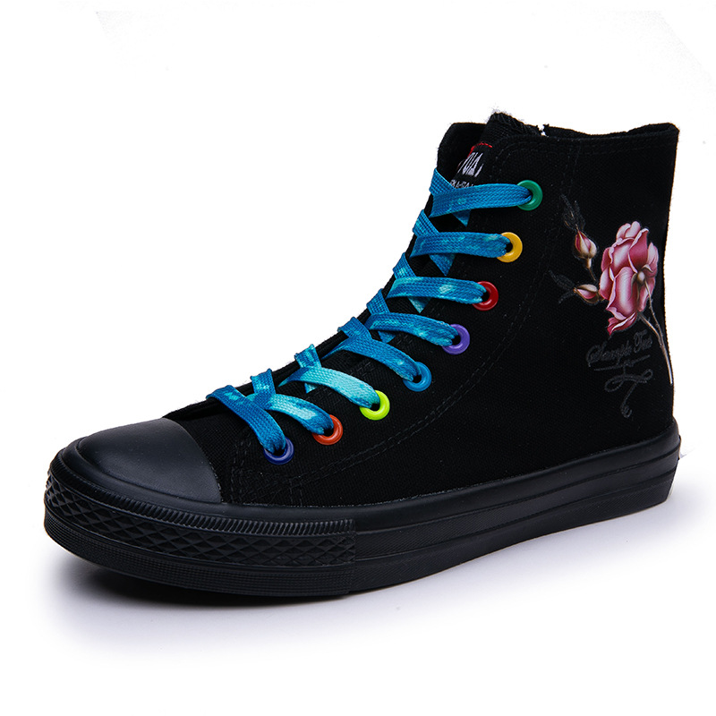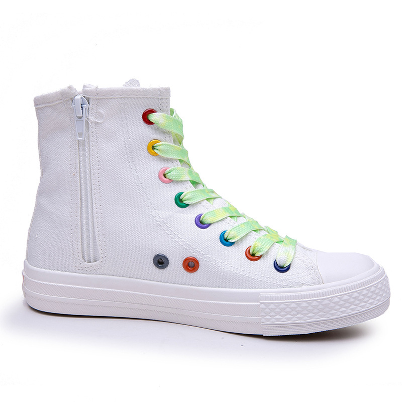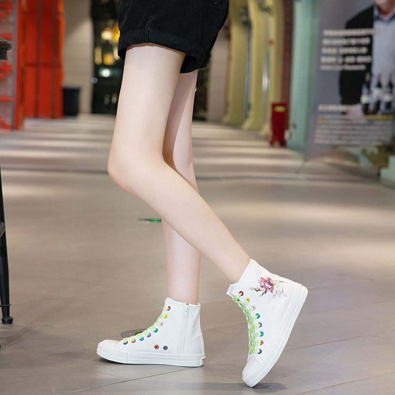 SX-6159 新款休闲帆布鞋内侧拉链胶鞋高帮小白鞋潮流女鞋短筒