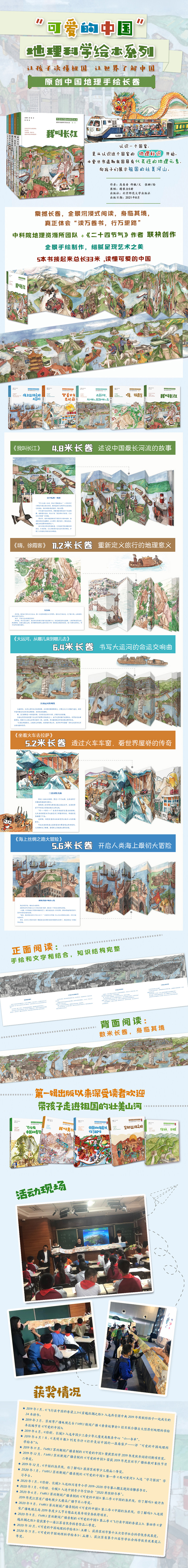 1.独特的长卷,孩子看了就爱: 5本接起来有30多米长,打造丰富有趣的沉浸式阅读体验。一套书读懂祖国: 长江、黄河、长城… 一套书带孩子走遍祖国大好山河。