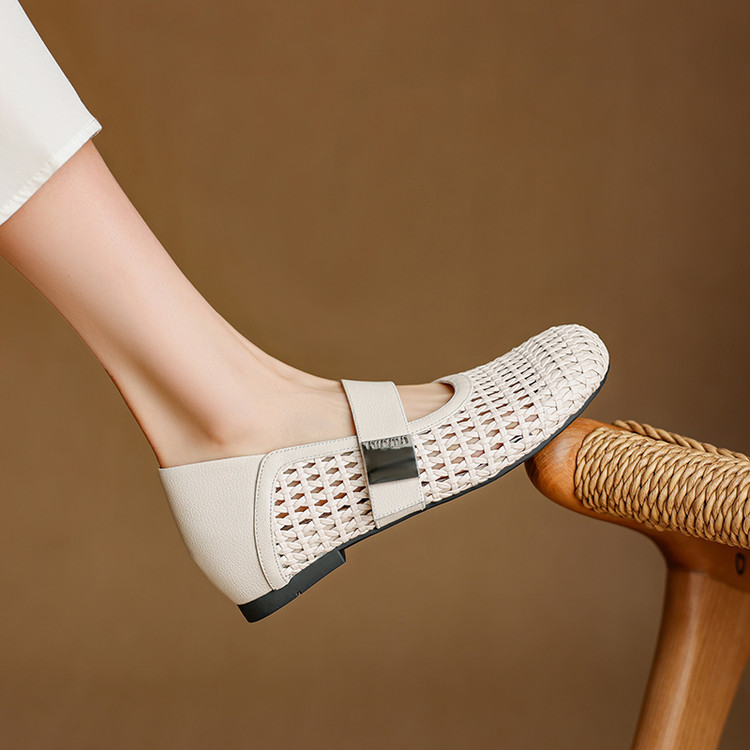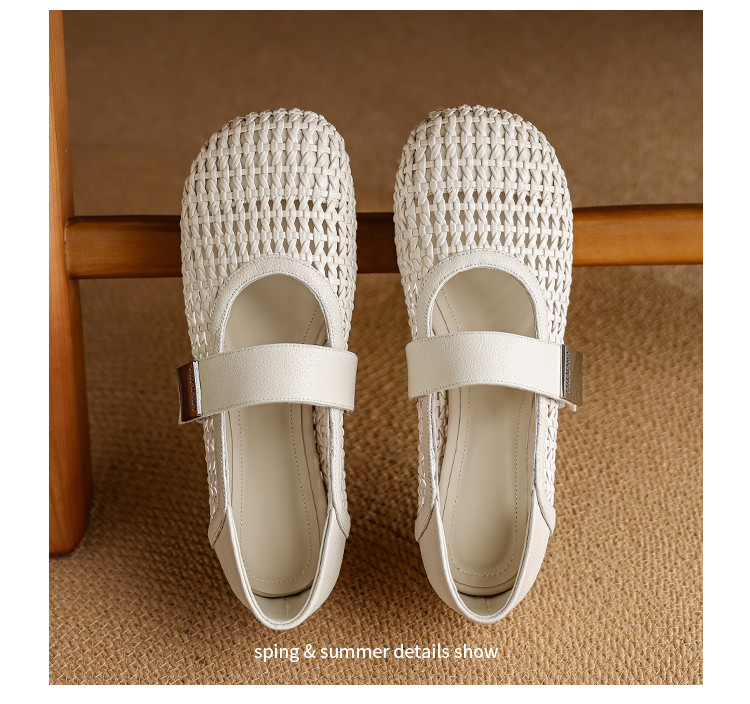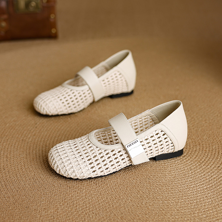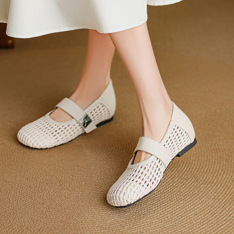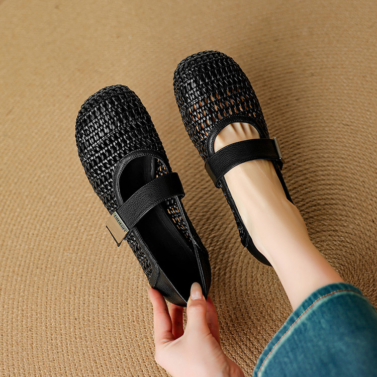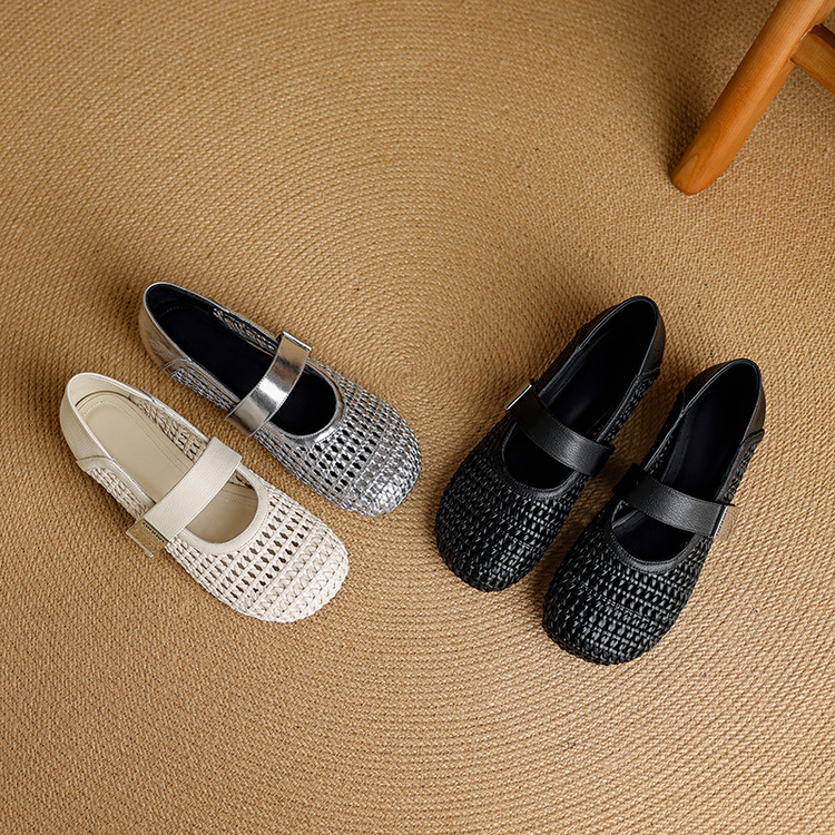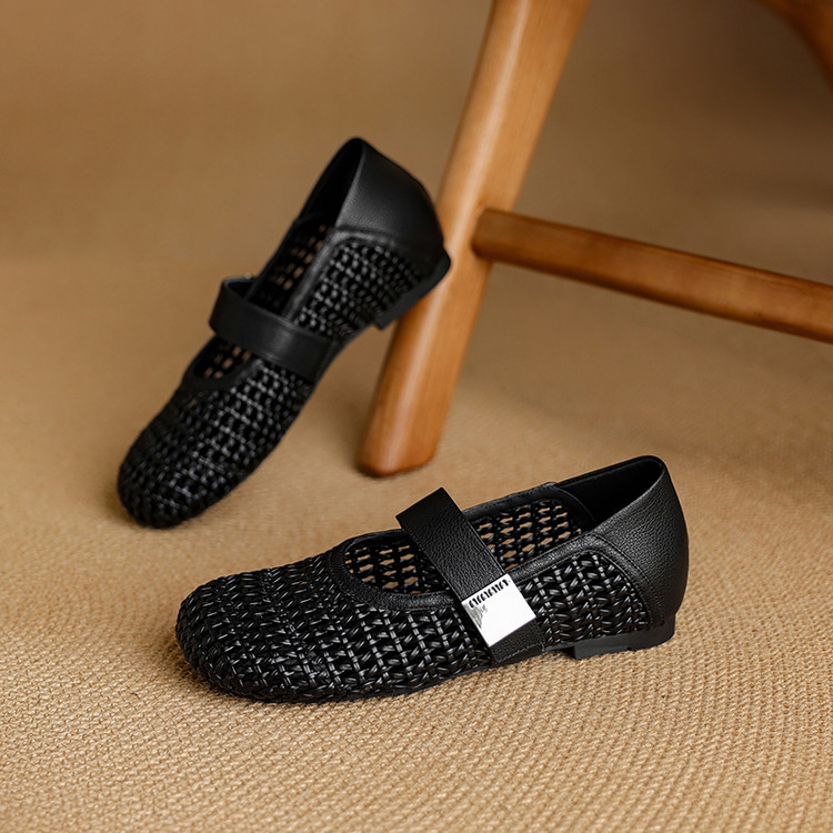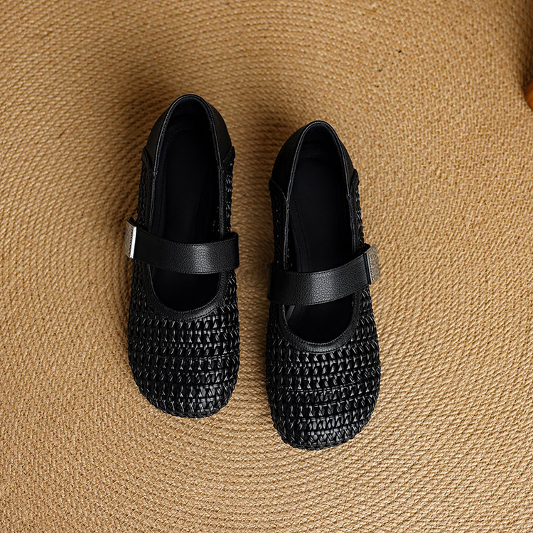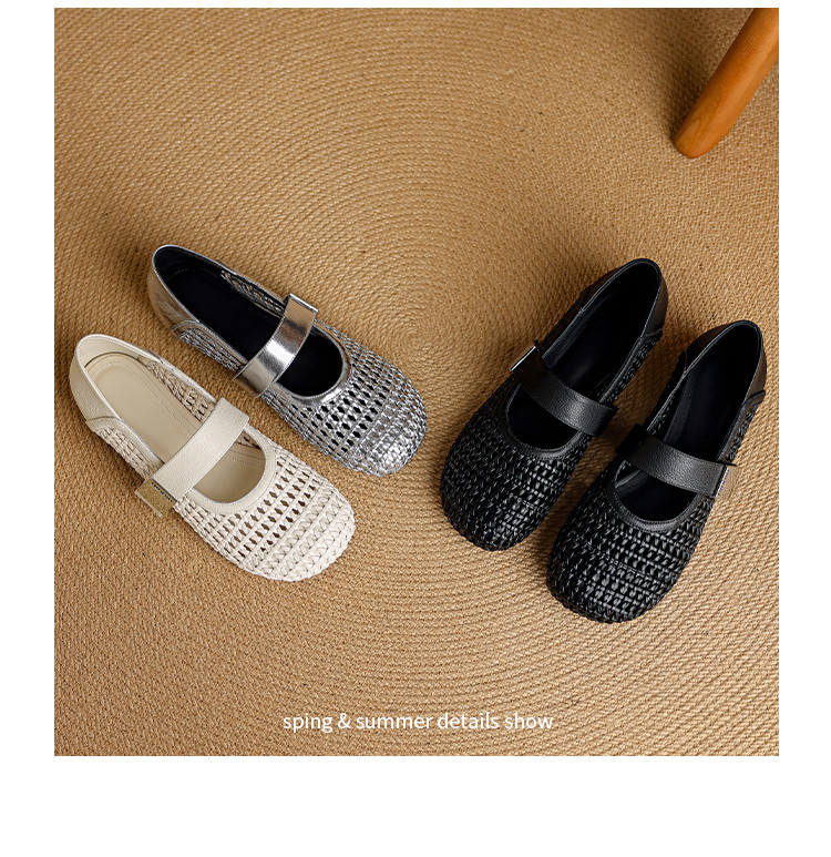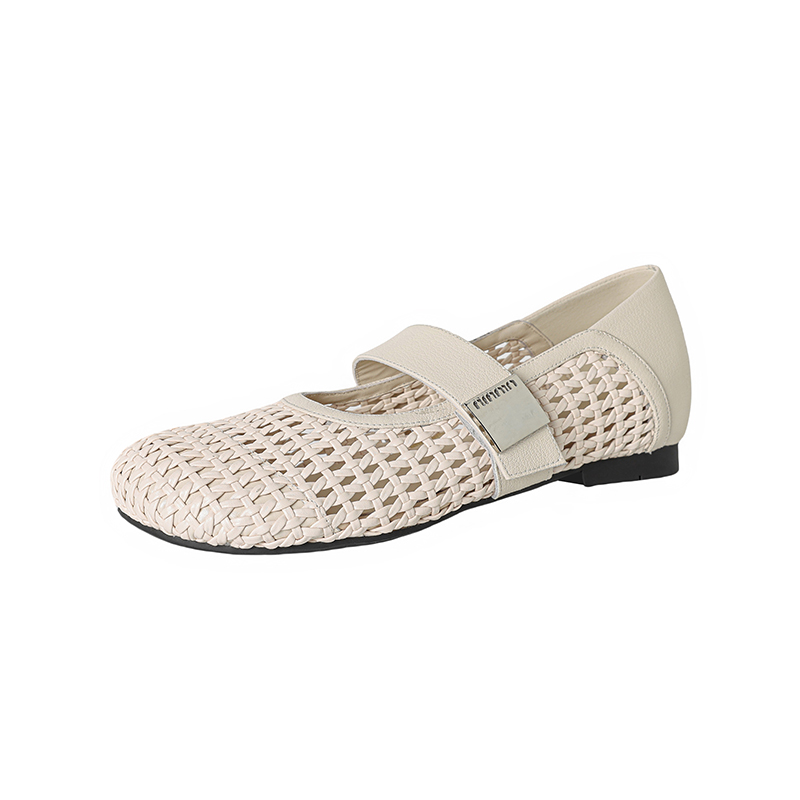 【预售5天】超软糯春夏季新款时尚编织镂空一字扣带玛丽珍鞋浅口圆头平底女单鞋NJMK&K1503