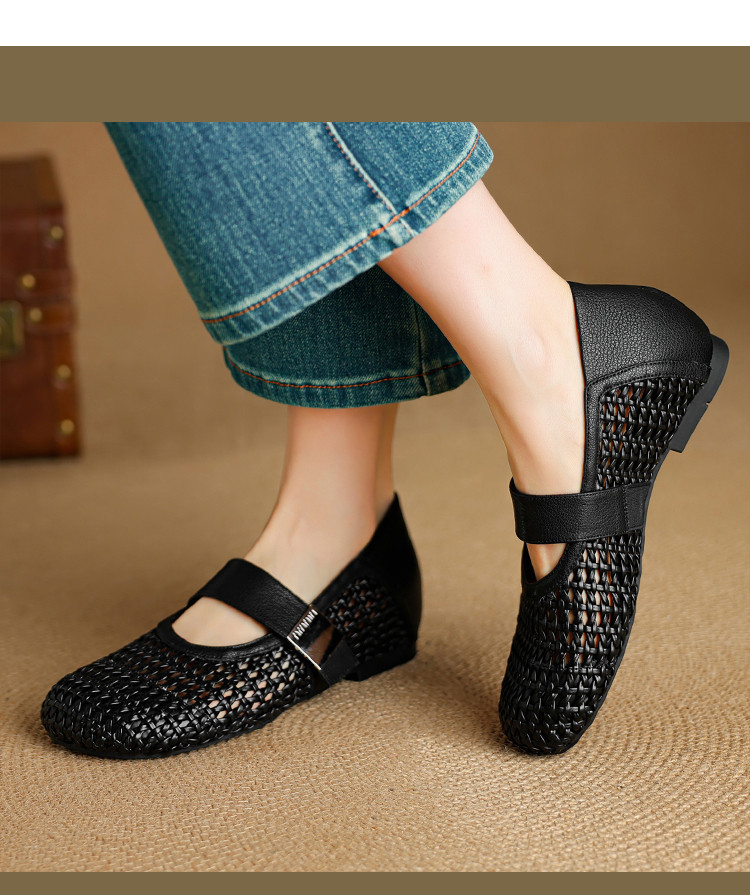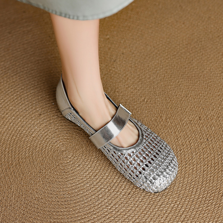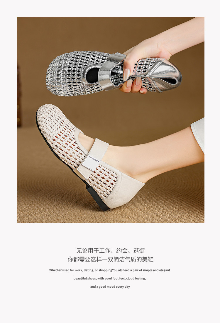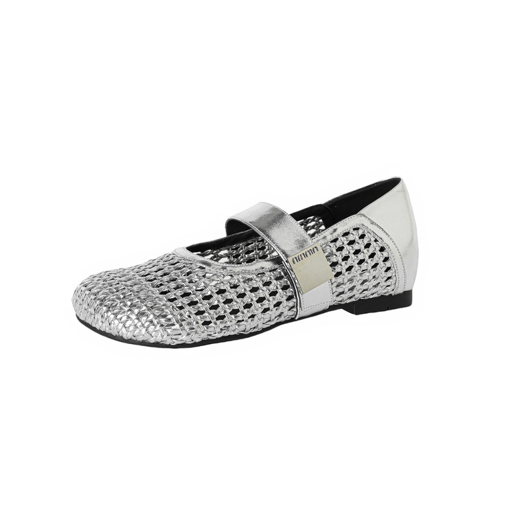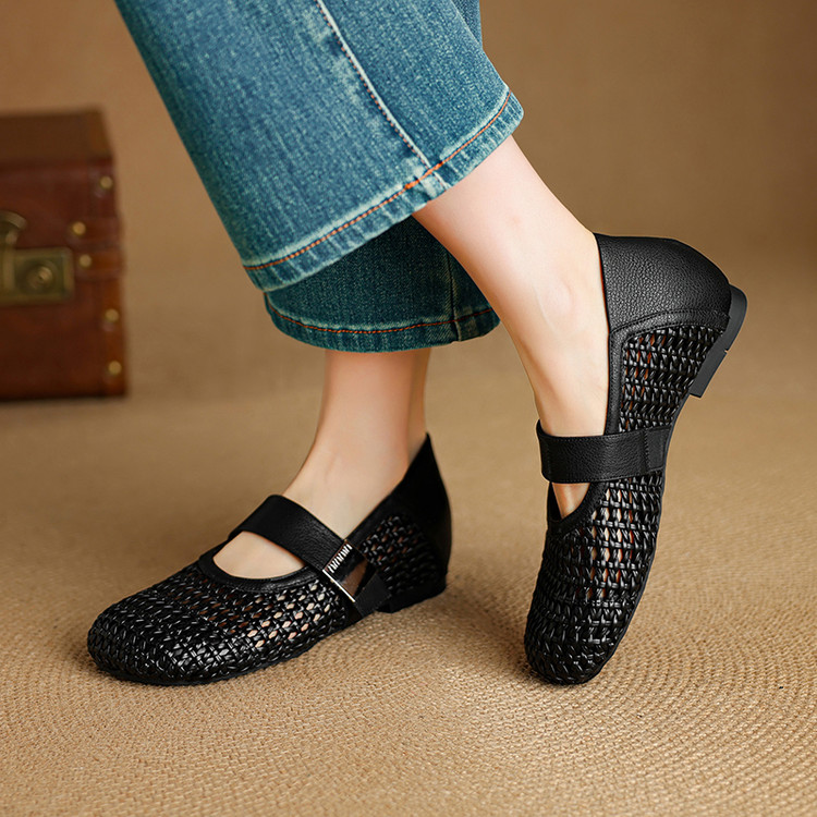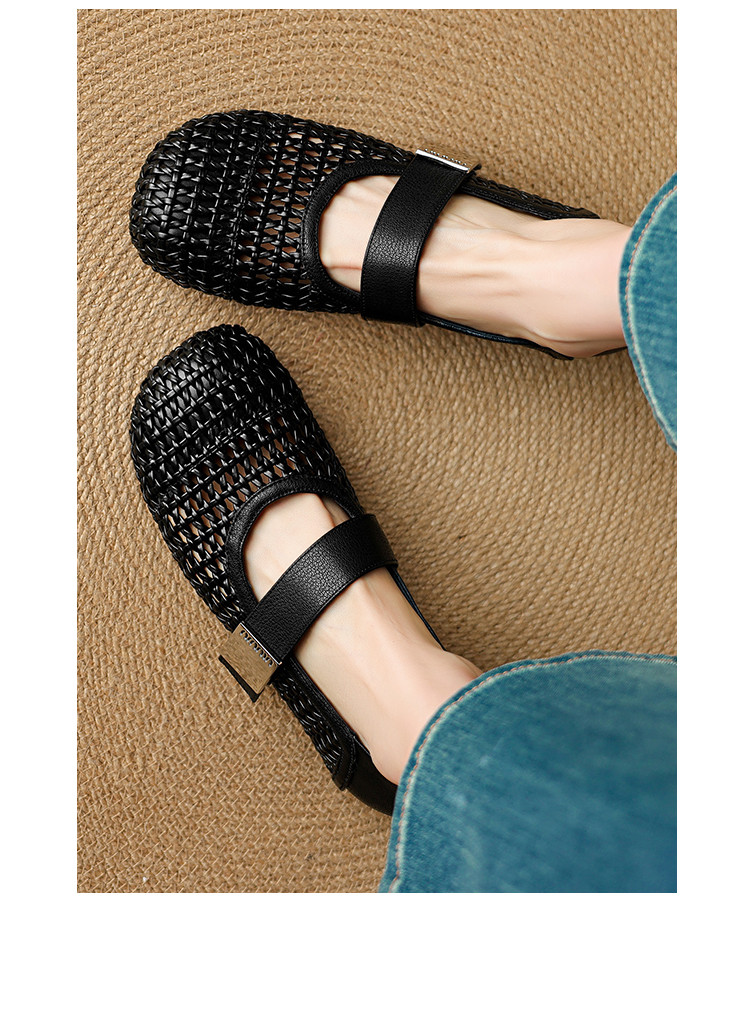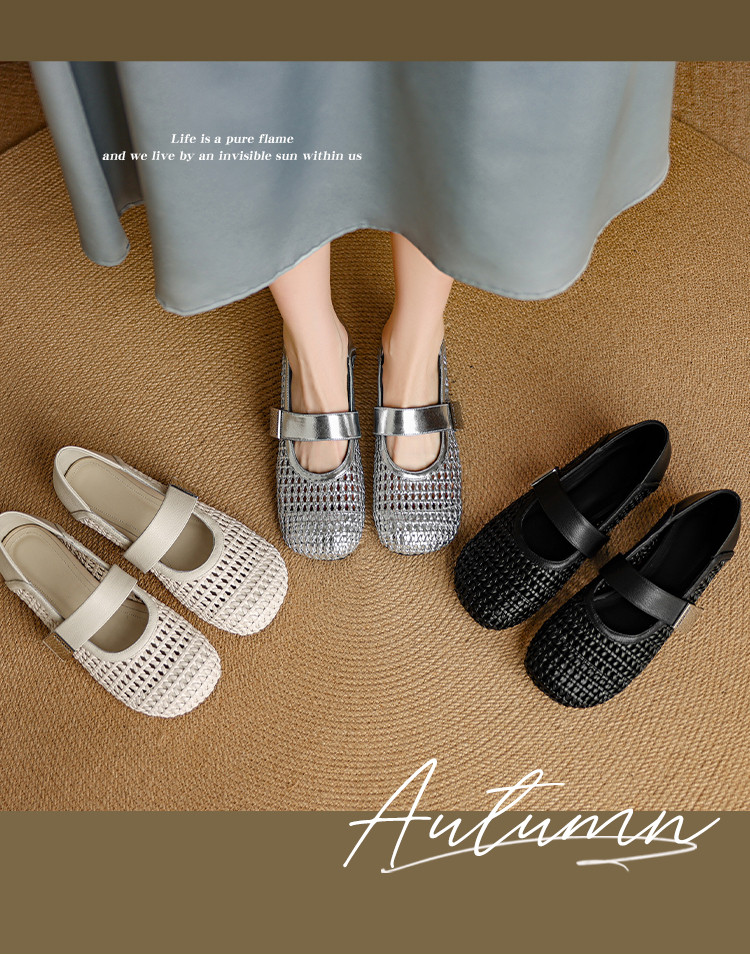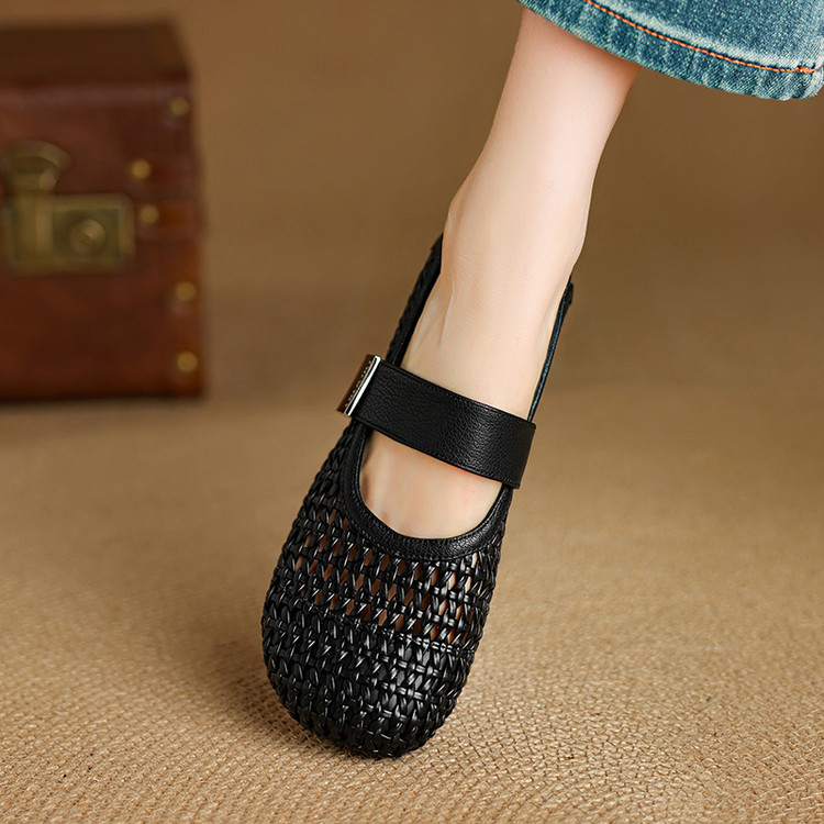 【预售5天】超软糯春夏季新款时尚编织镂空一字扣带玛丽珍鞋浅口圆头平底女单鞋NJMK&K1503