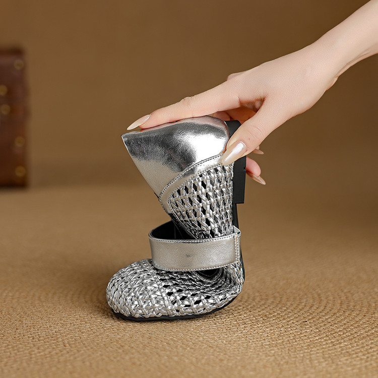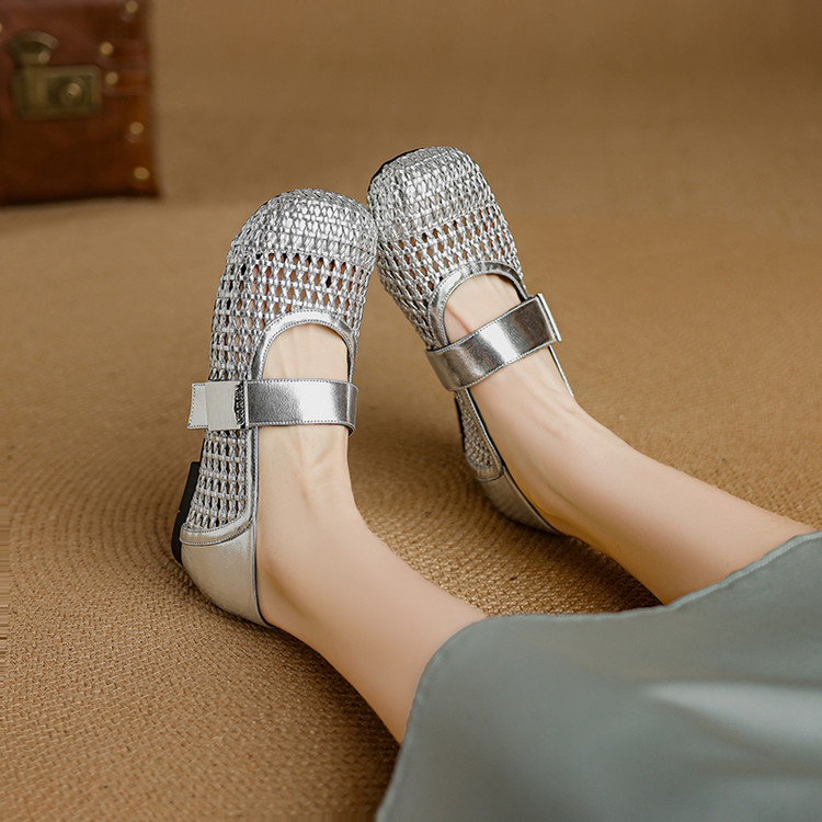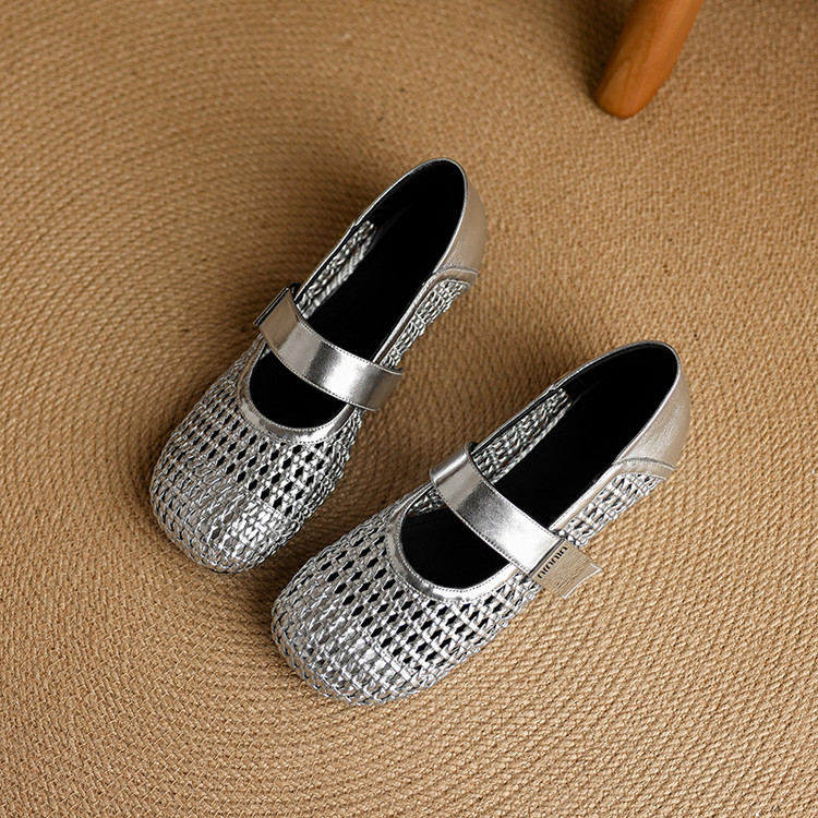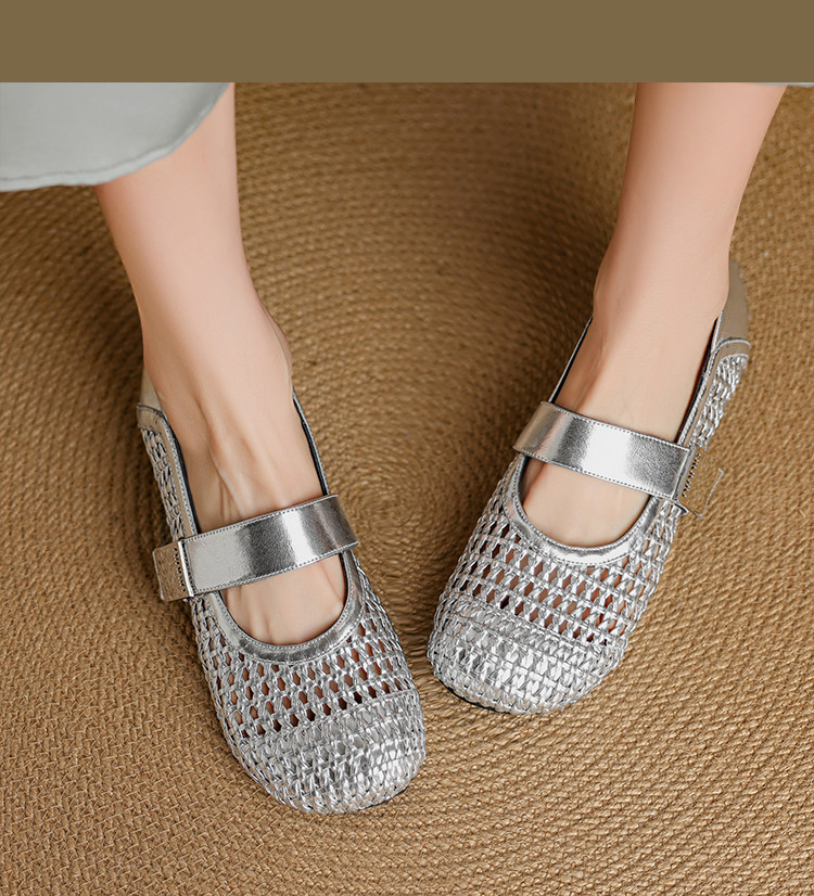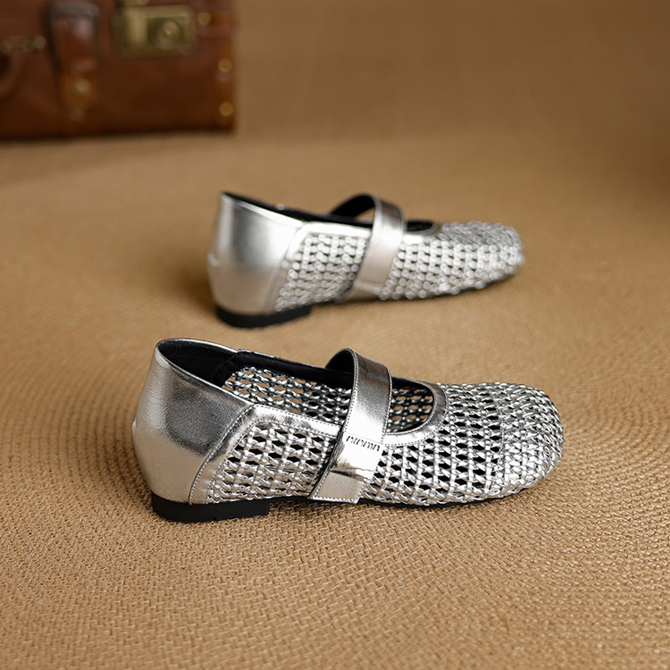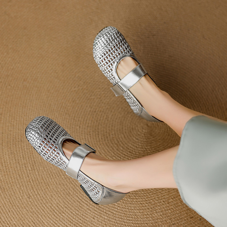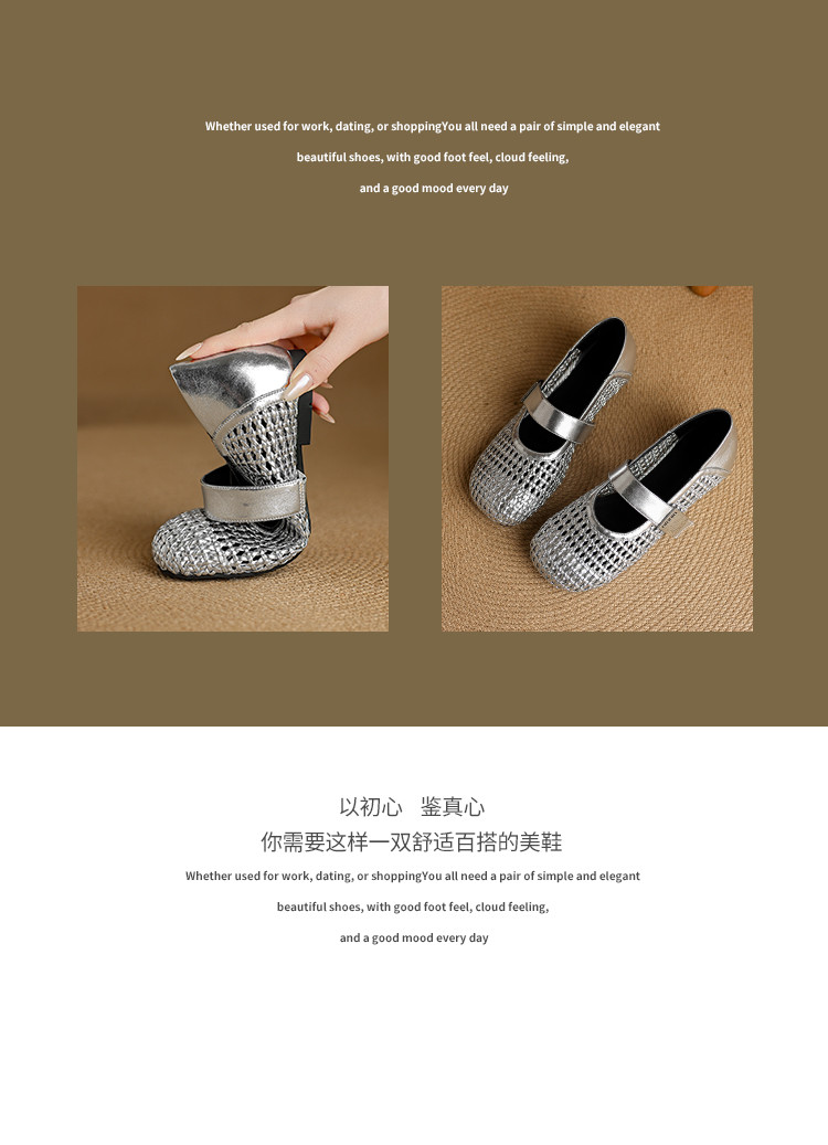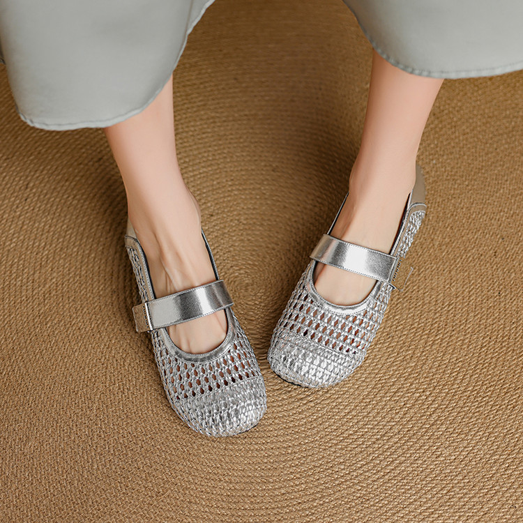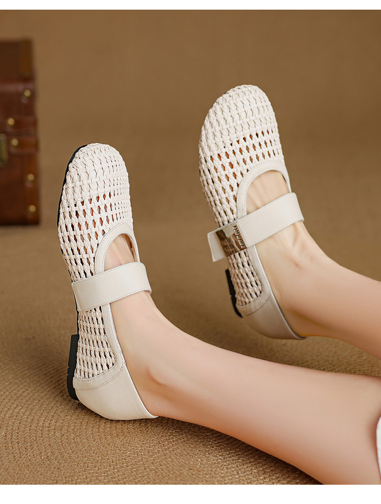 【预售5天】超软糯春夏季新款时尚编织镂空一字扣带玛丽珍鞋浅口圆头平底女单鞋NJMK&K1503