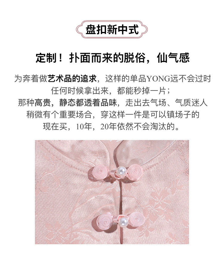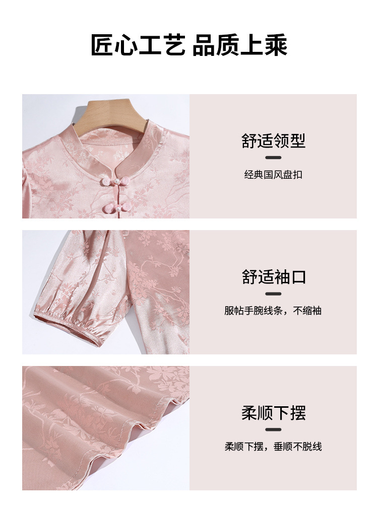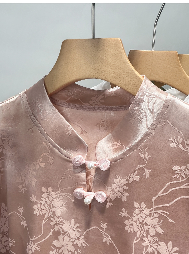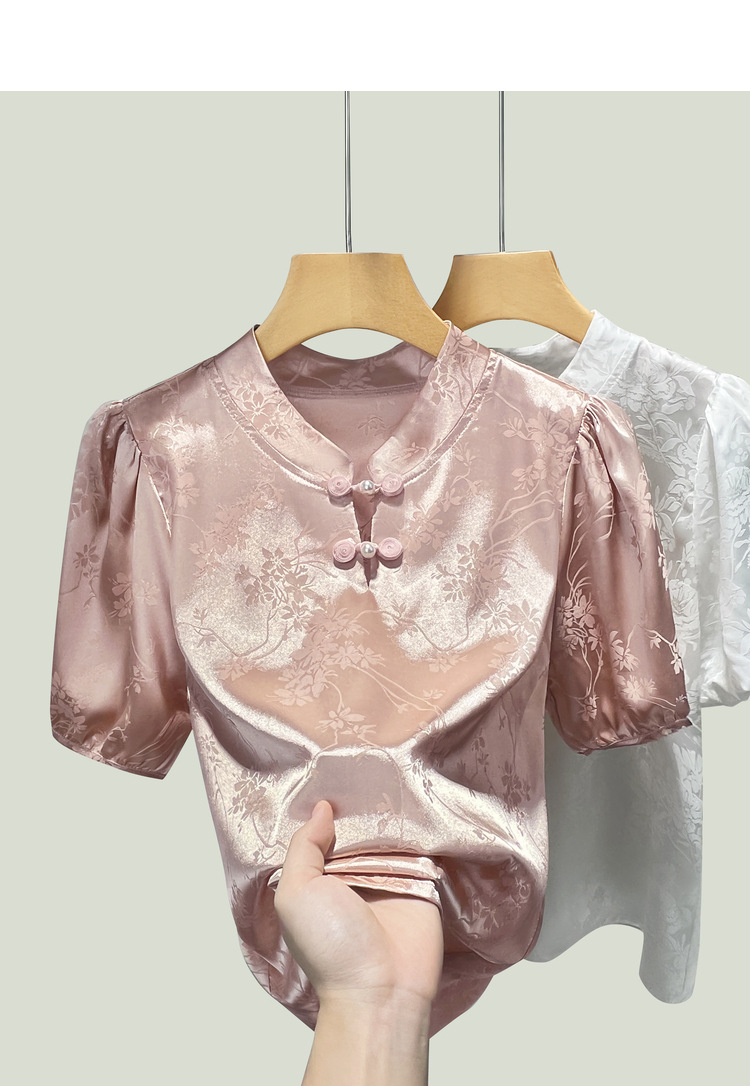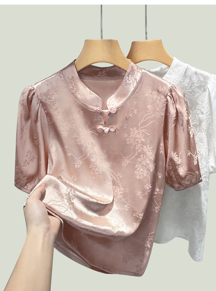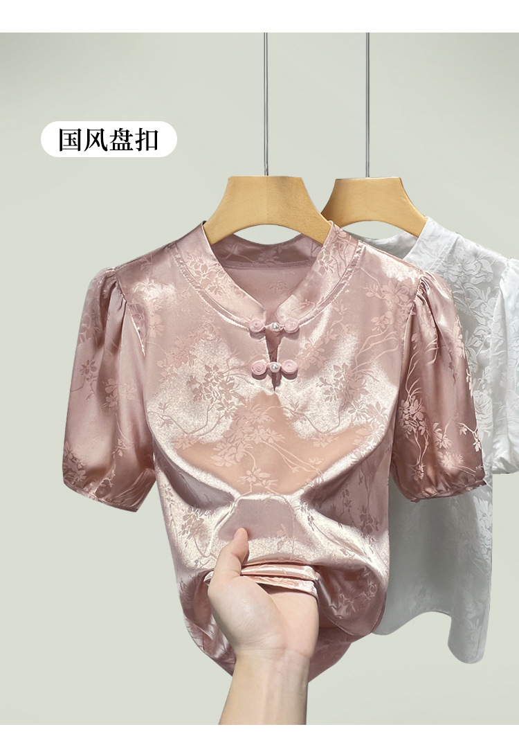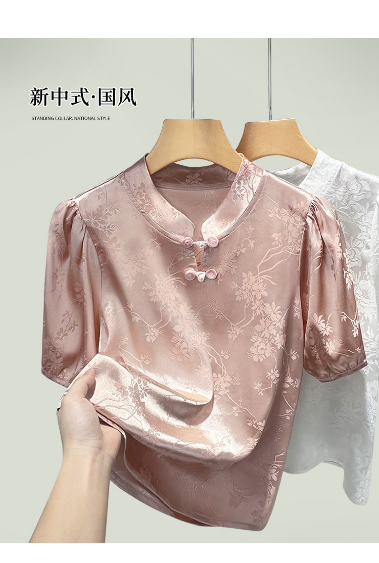 C4X1695-ZJL新中式立领盘扣上衣2025年夏季新款国风短袖雪纺衫提花缎面衬衫女