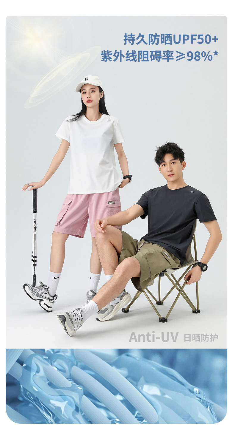 【可以防晒的短袖,UPF50+】男女情侣款冰丝短袖T恤 强力防晒 晾感科技 吸湿排汗 男女薄款潮牌上衣