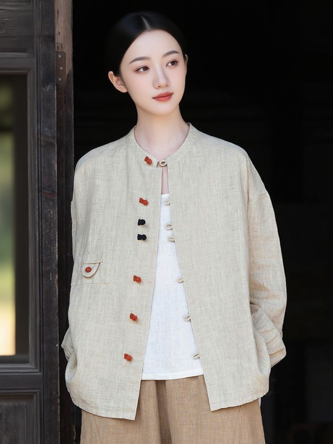 现货 臣禾 【棉麻新中式衬衫】 盘扣茶服对襟外套(71.5% 苎麻28.5% 棉) JZ253011275