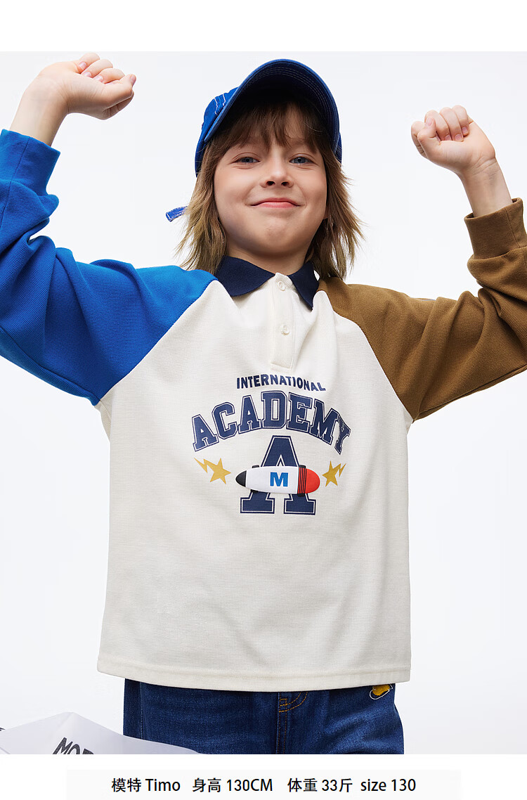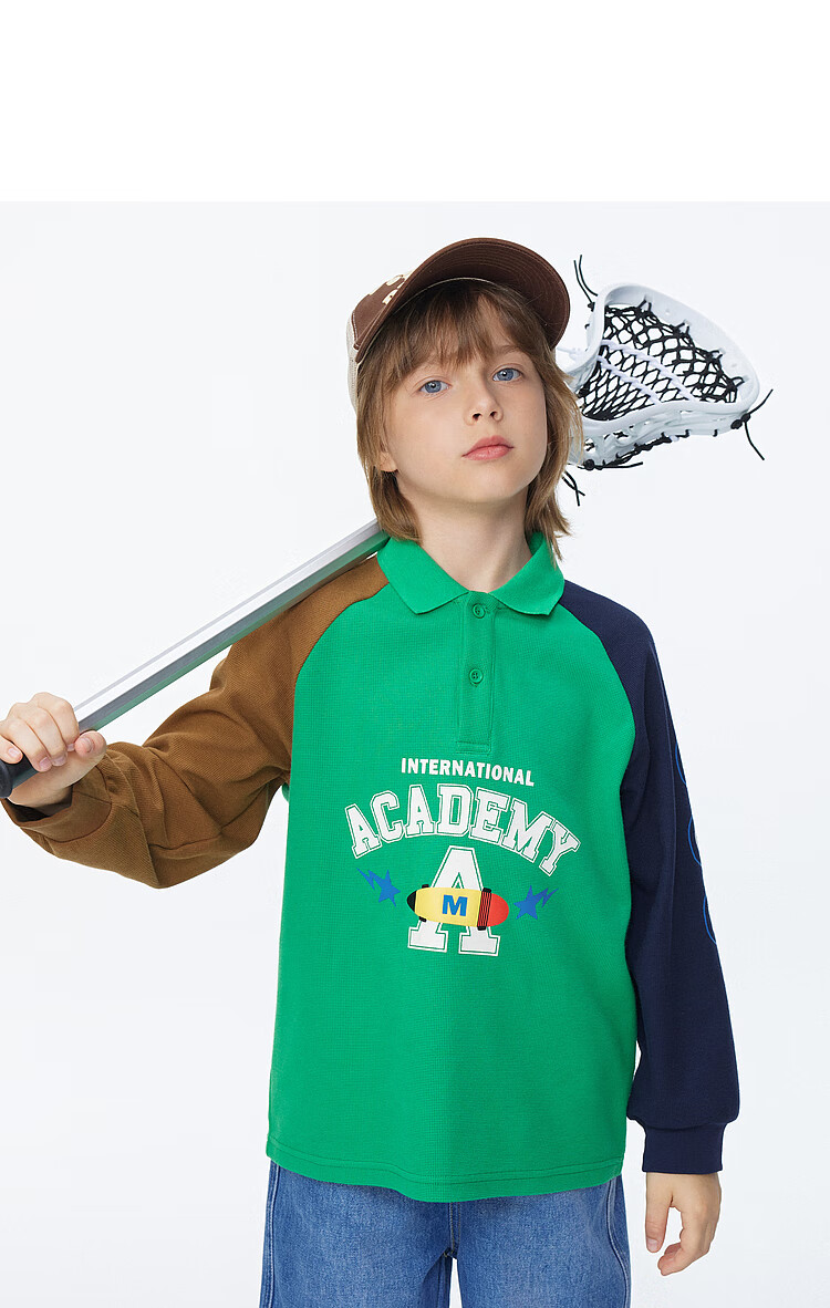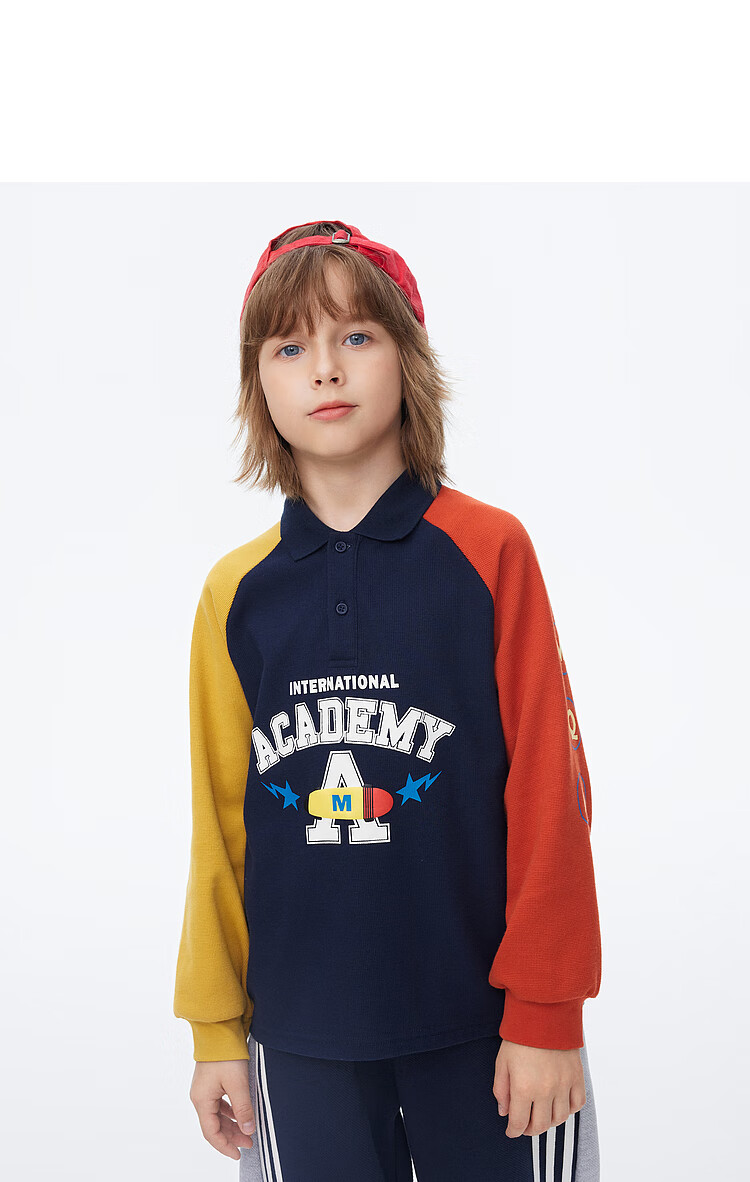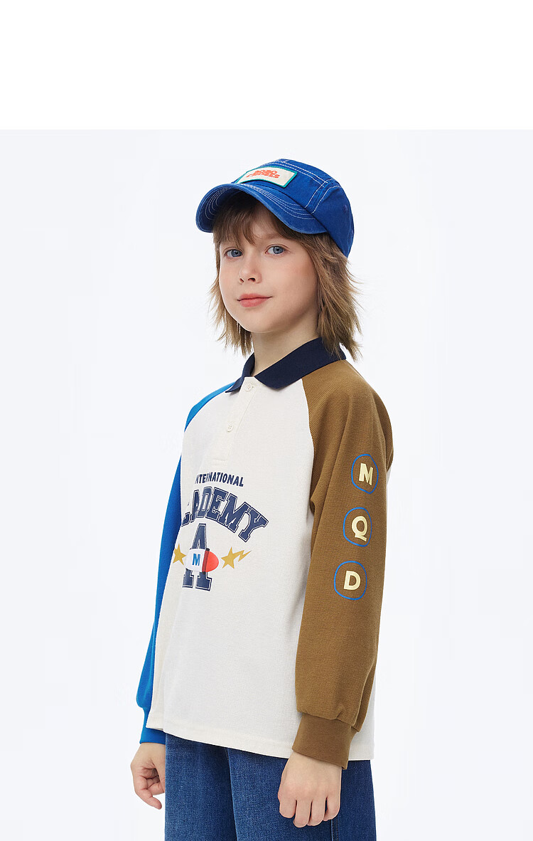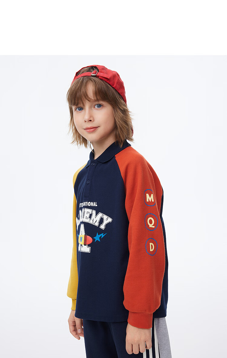 【MQD】男童POLO衫春季新品儿童长袖T恤胶印撞色上衣