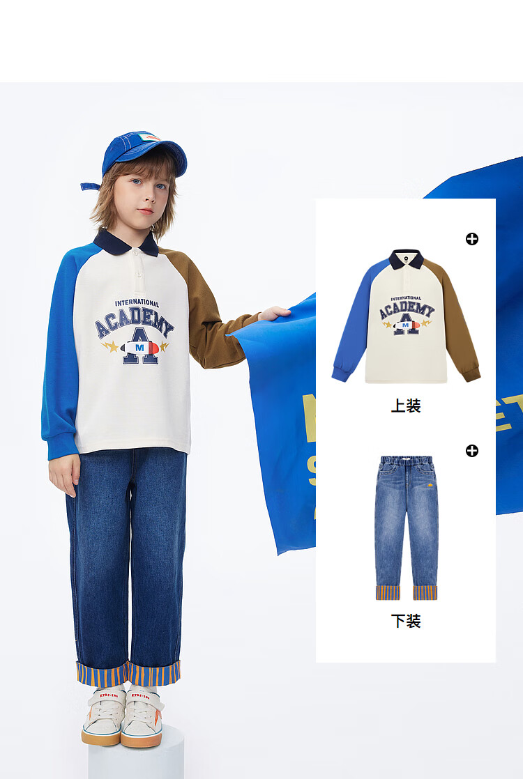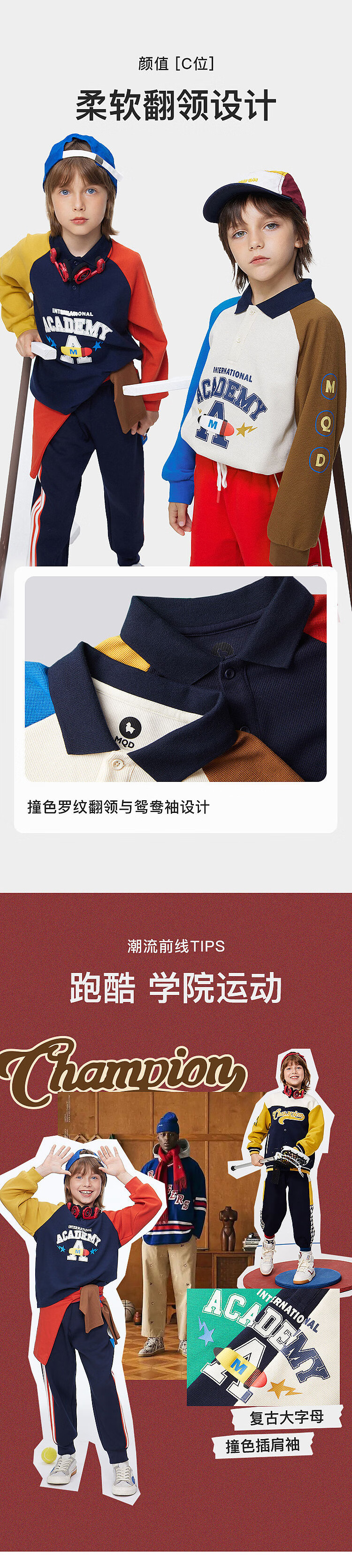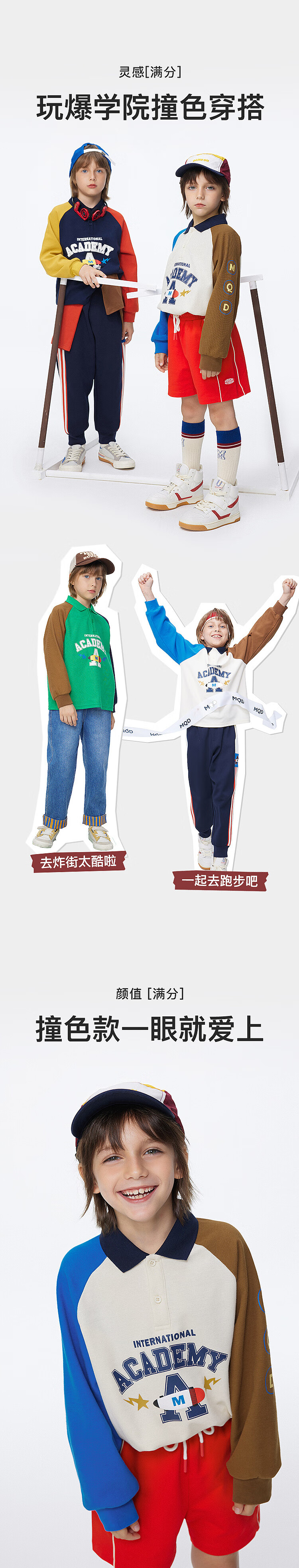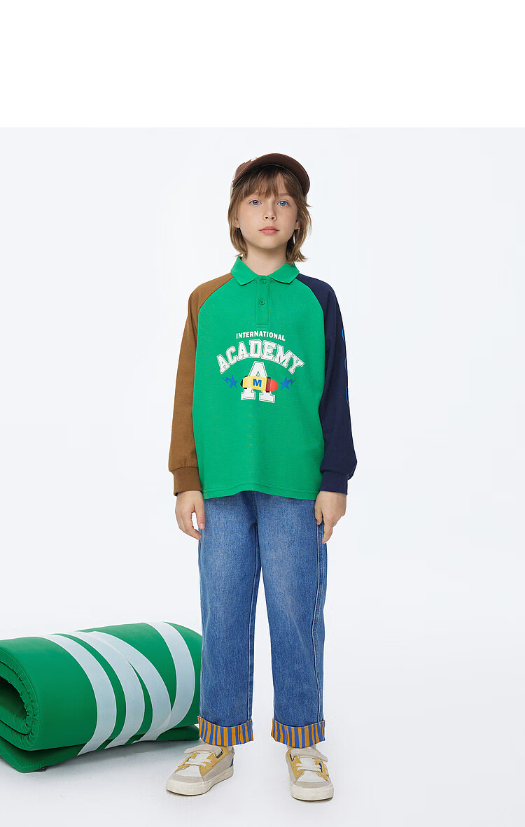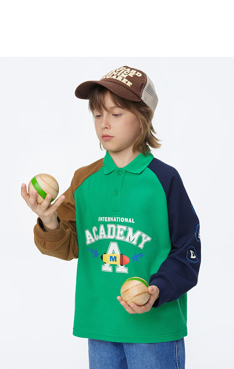 【MQD】男童POLO衫春季新品儿童长袖T恤胶印撞色上衣