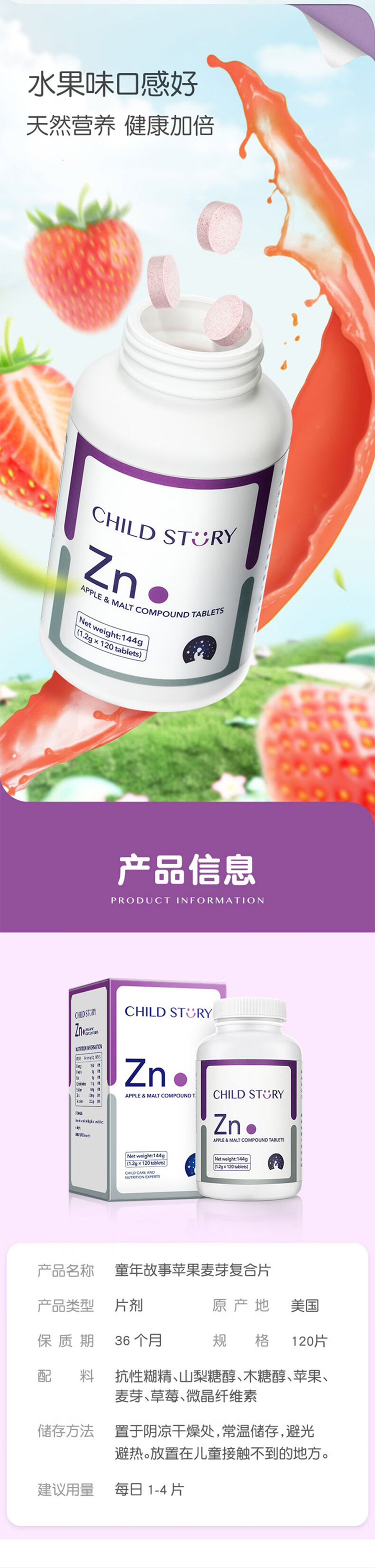童年故事复合牡蛎压片糖果锌硒片120片