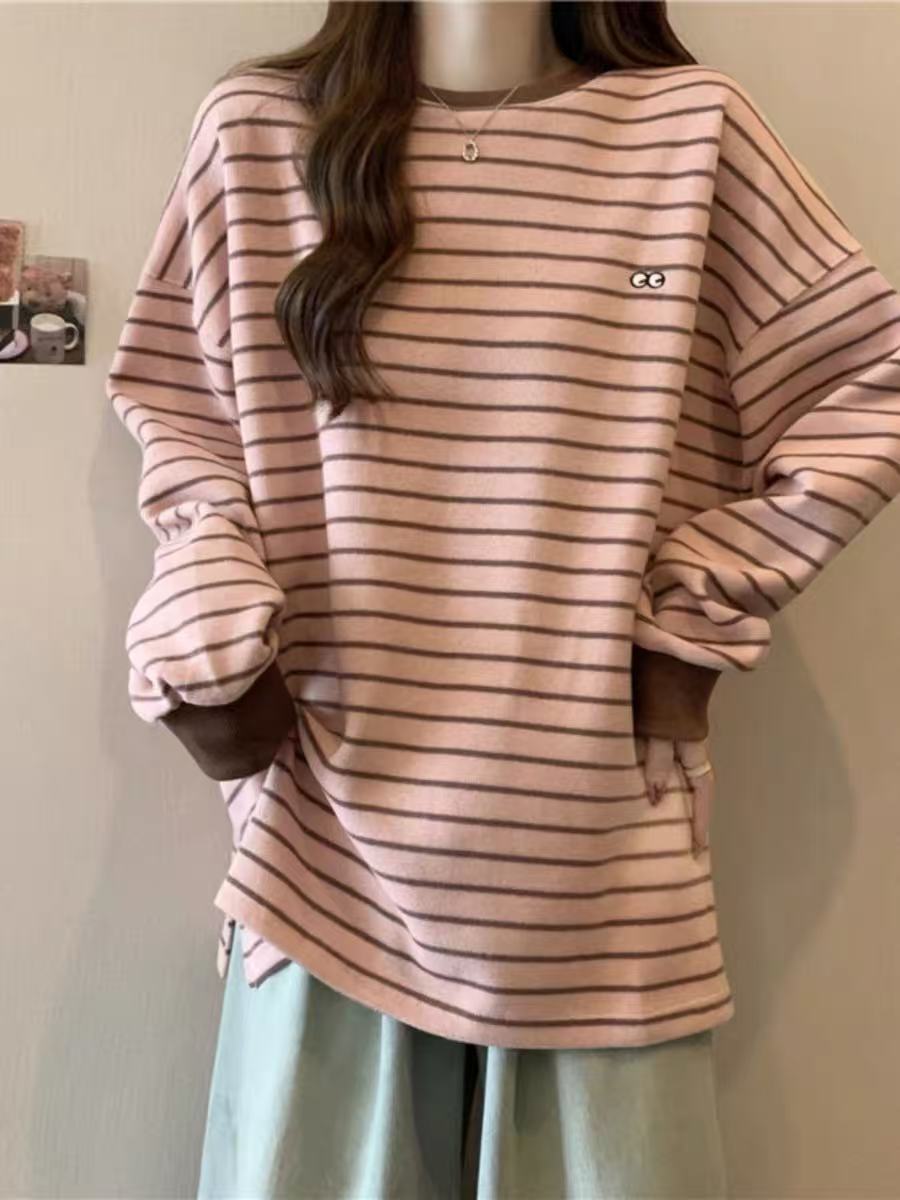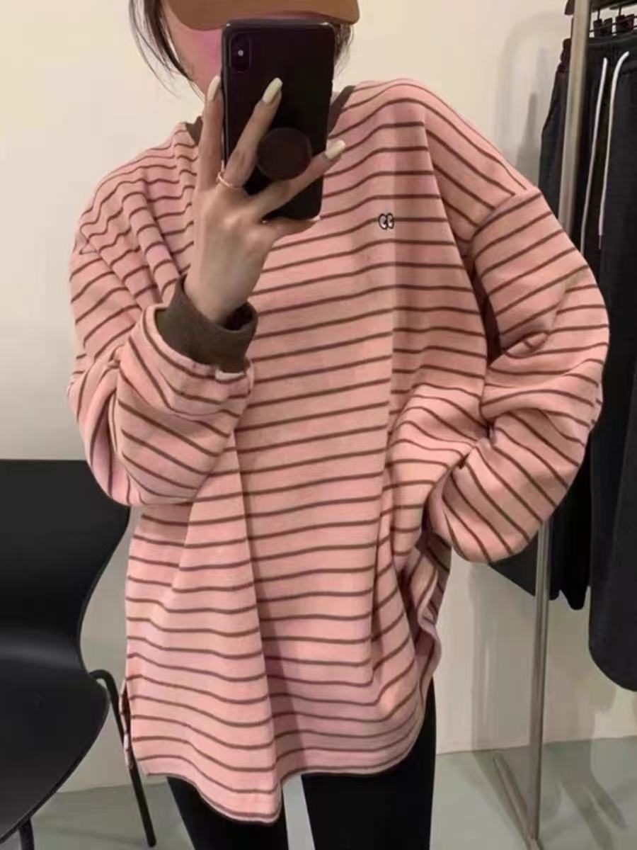 【卫衣系列】31853粉色条纹侧开叉眼睛刺绣卫衣-喜出