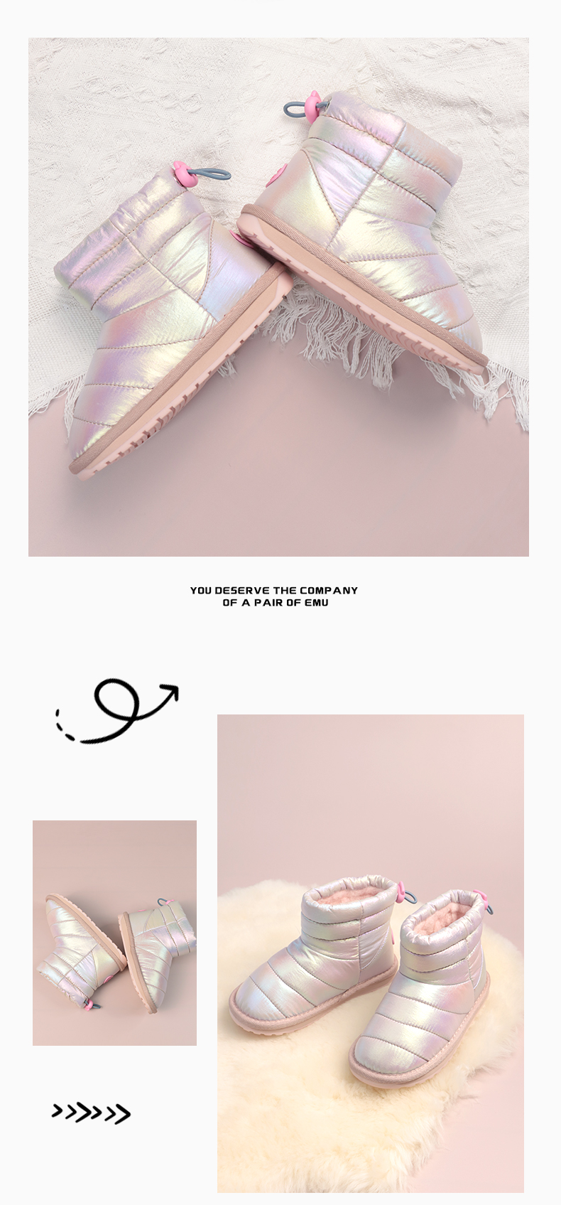 澳洲EMU童鞋雪地靴冬季渐变加绒加厚棉靴女童真羊毛保暖棉鞋