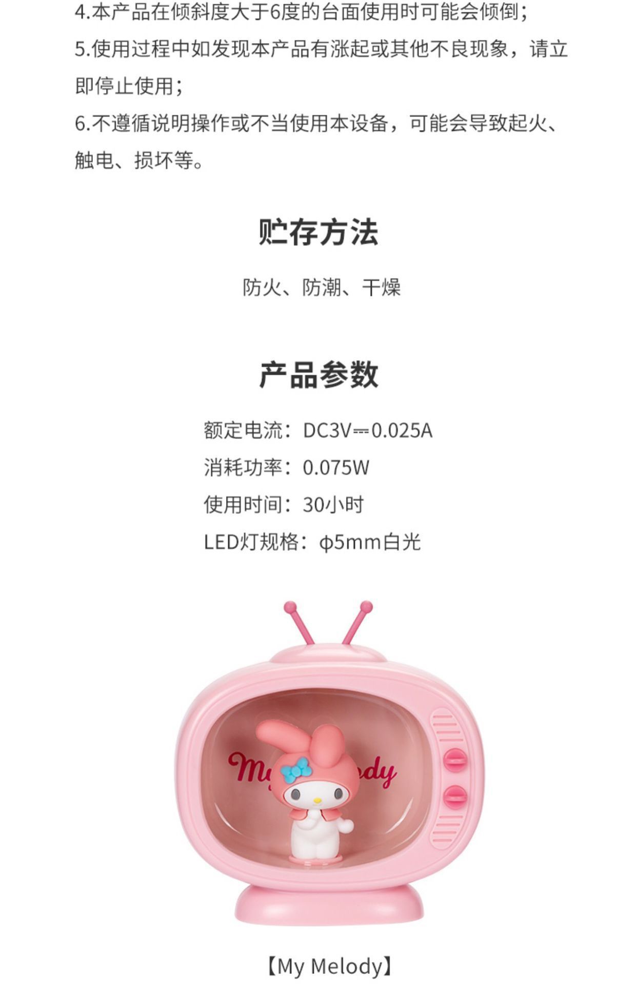 MINISO名创优品三丽鸥小夜灯迷你电视机造型卧室床头睡眠少女台灯
