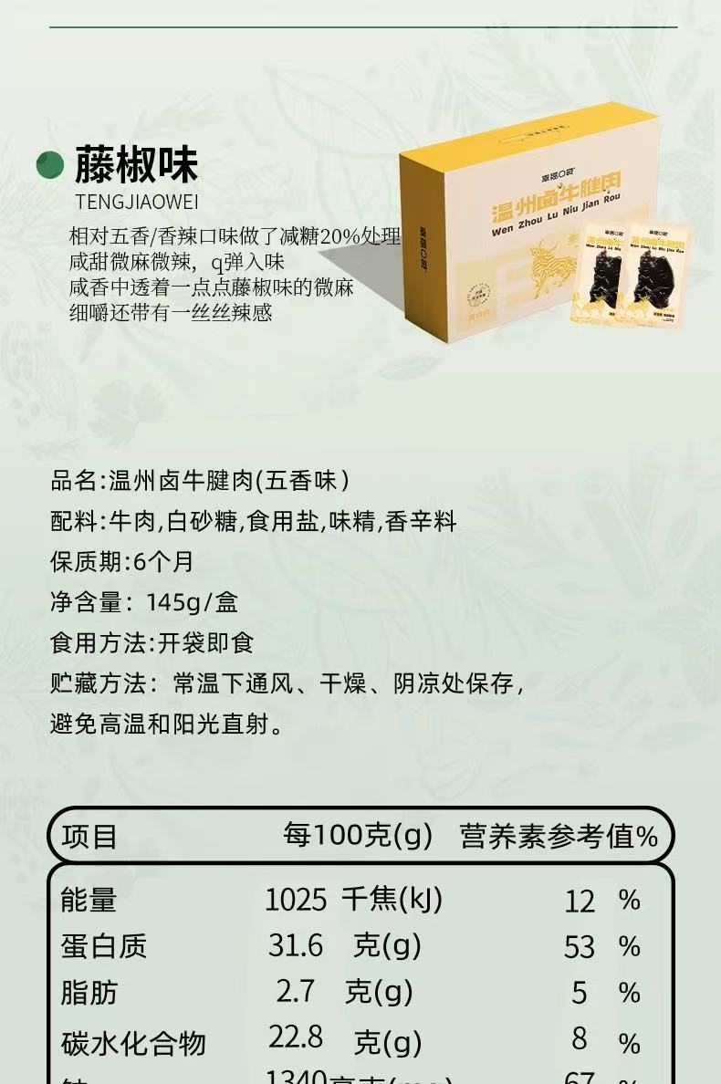 【甄选】幸福口袋卤牛腱Q弹劲道细嫩不塞牙无额外添加老少皆宜145g/盒