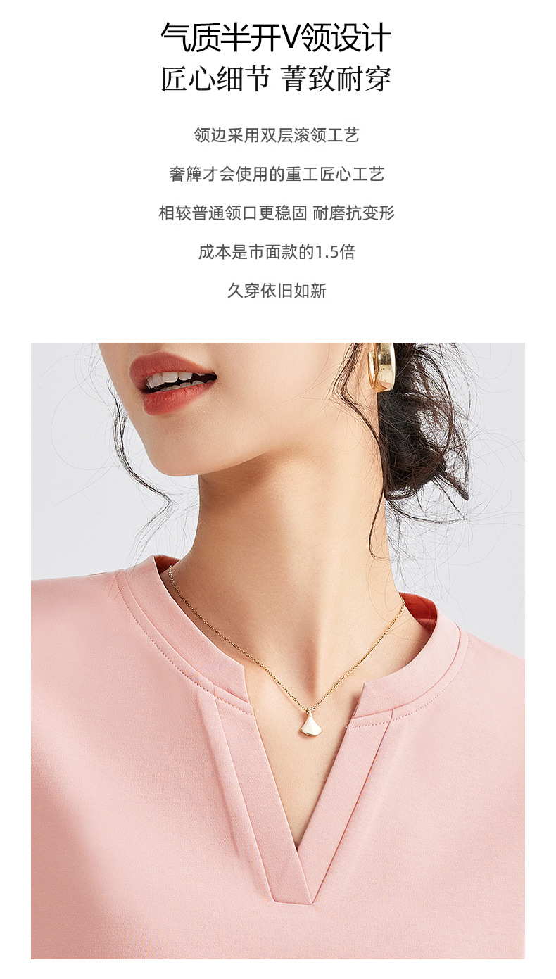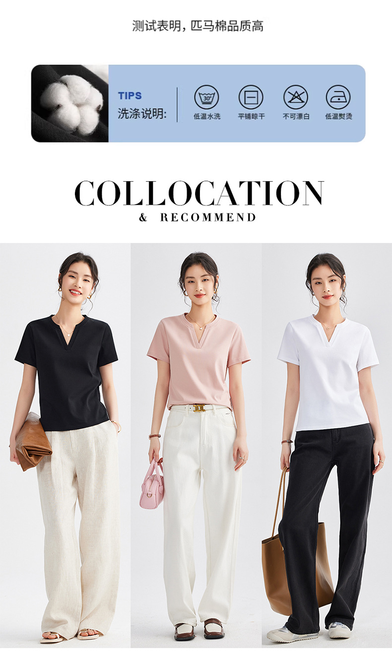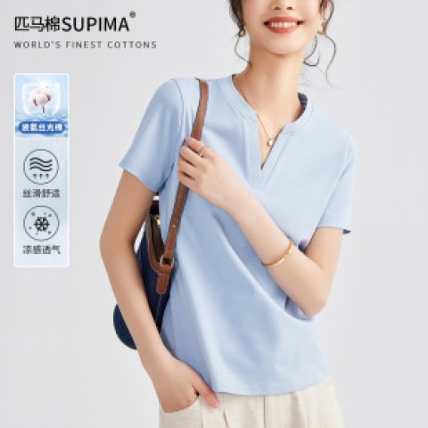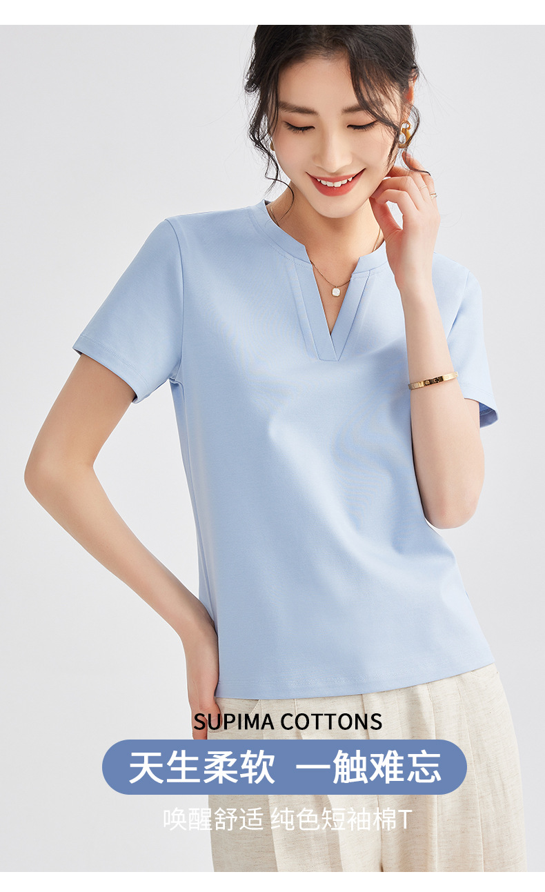 「自j」全新升级【铂金会员109/天猫149/差价40】(03352)洛诗琳双面丝光棉T恤2025夏季正肩V领显瘦纯色短袖上衣女
