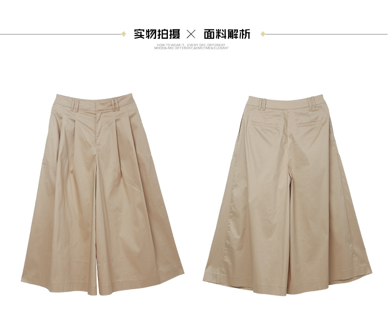 卡其色高腰阔腿裤女夏季 薄款打褶宽松显瘦垂感九分休闲裙裤