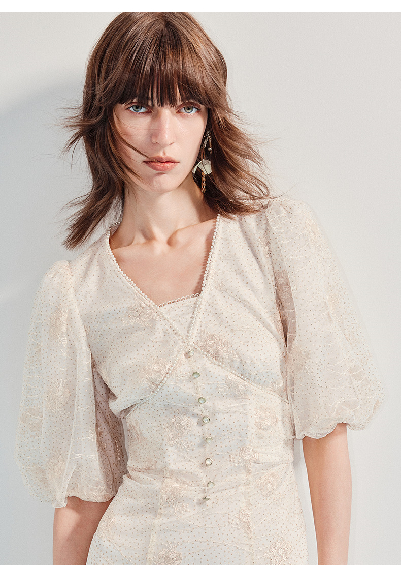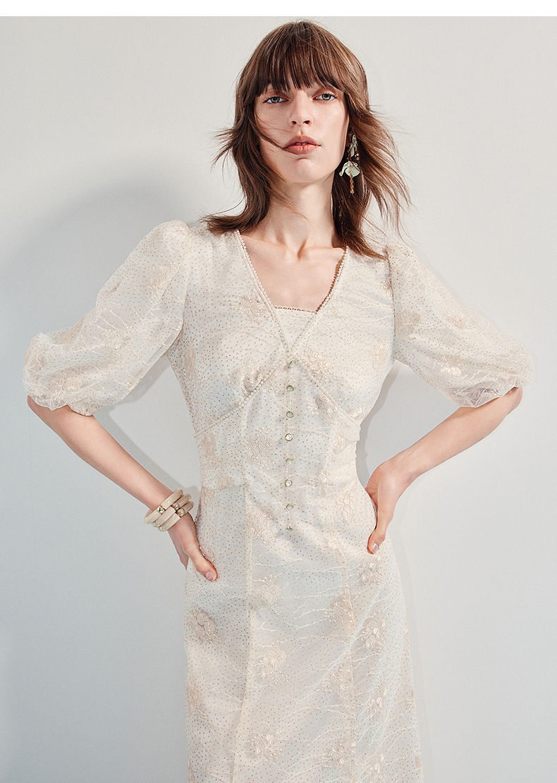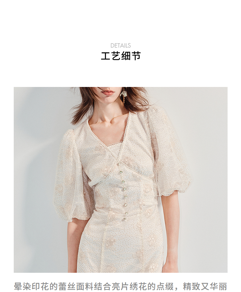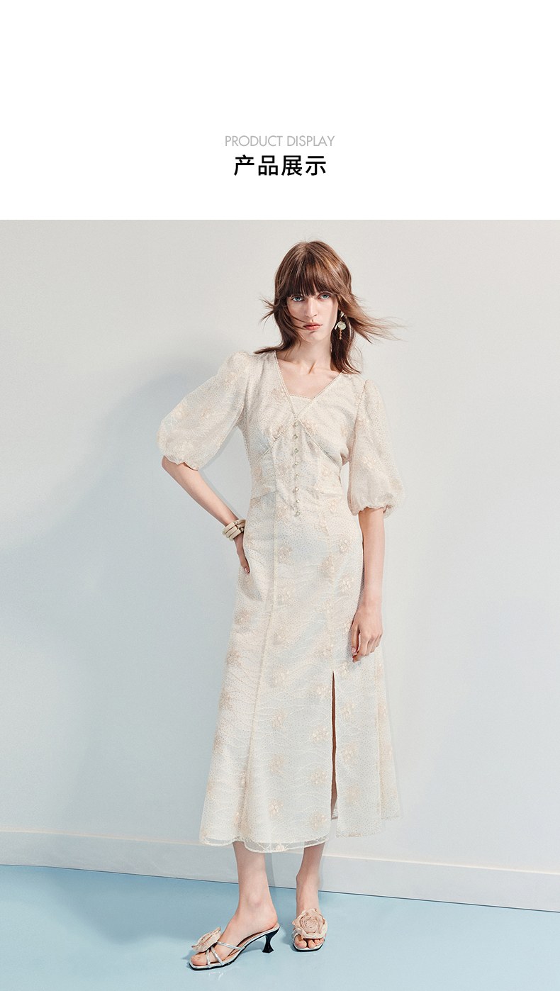 MAXRIENY【商场同款】2025年夏季新款浪漫鎏金系列灯笼袖连衣裙显瘦(货号:MF86DR255)