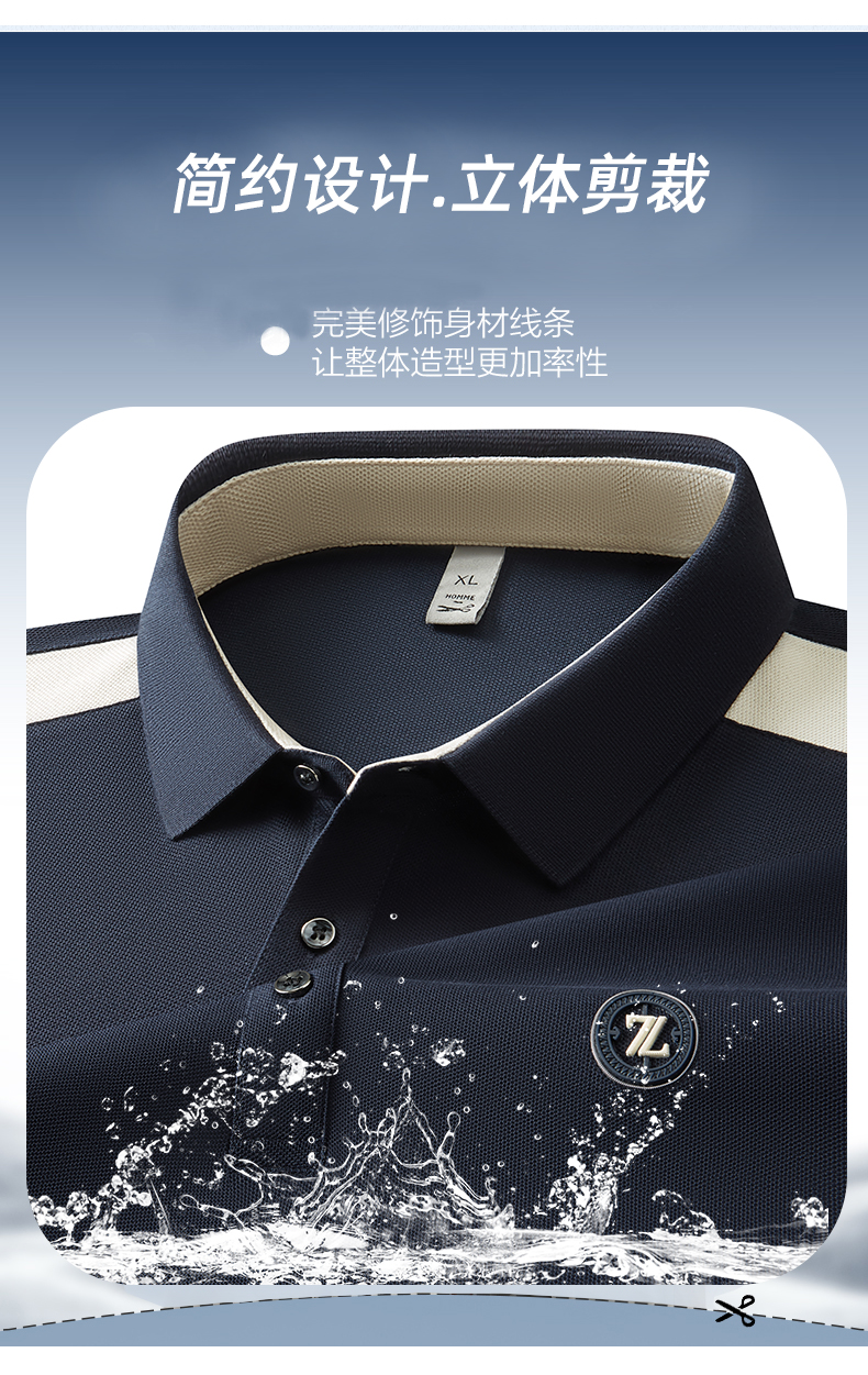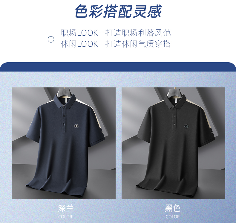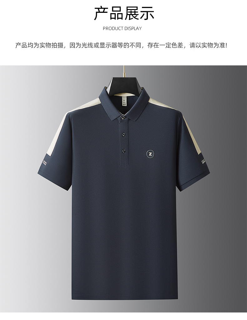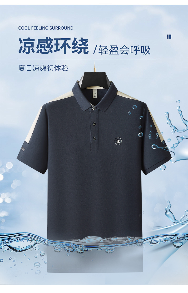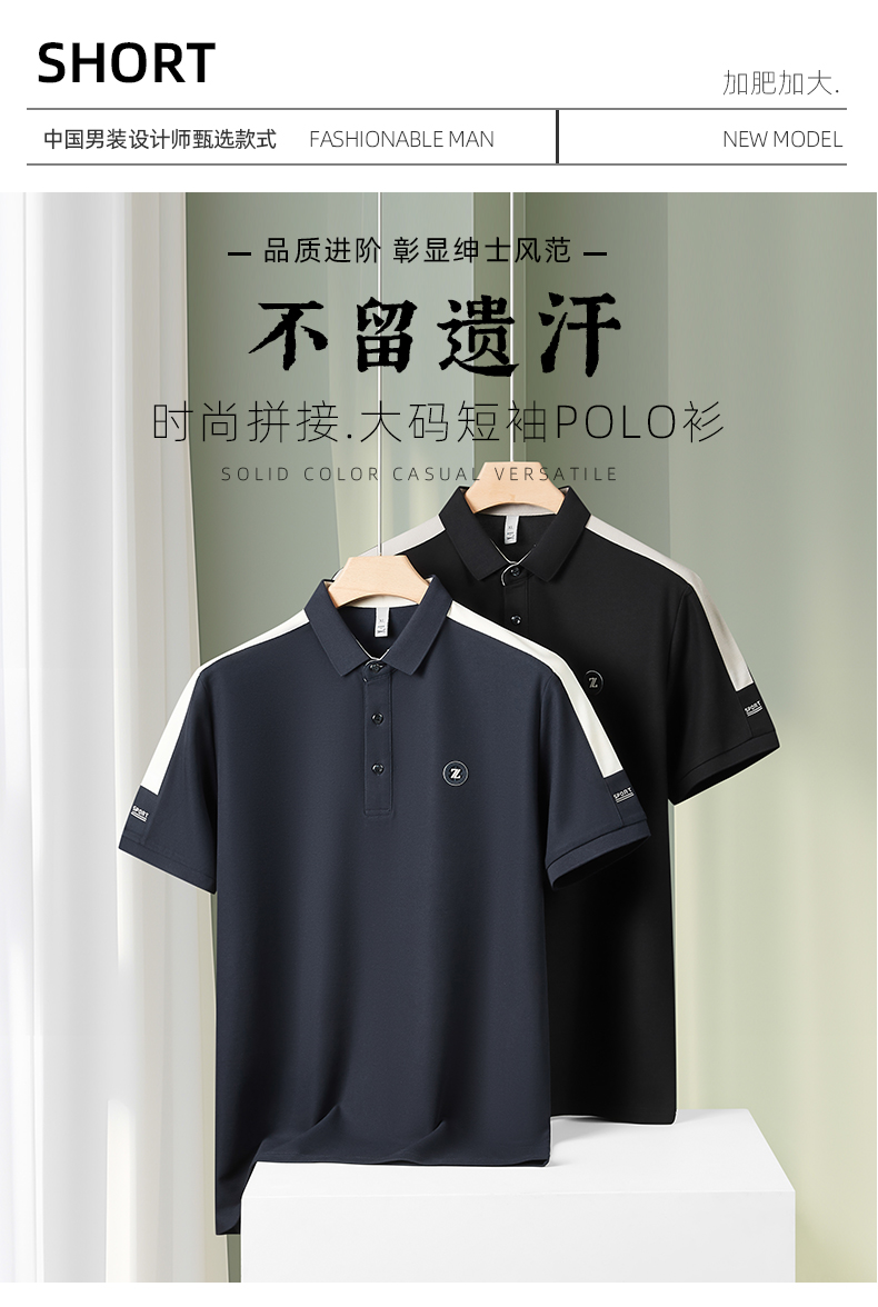 【冰丝】【DDP】大依优型大码拼接短袖POLO衫弹力翻领商务休闲透气半袖夏季上衣