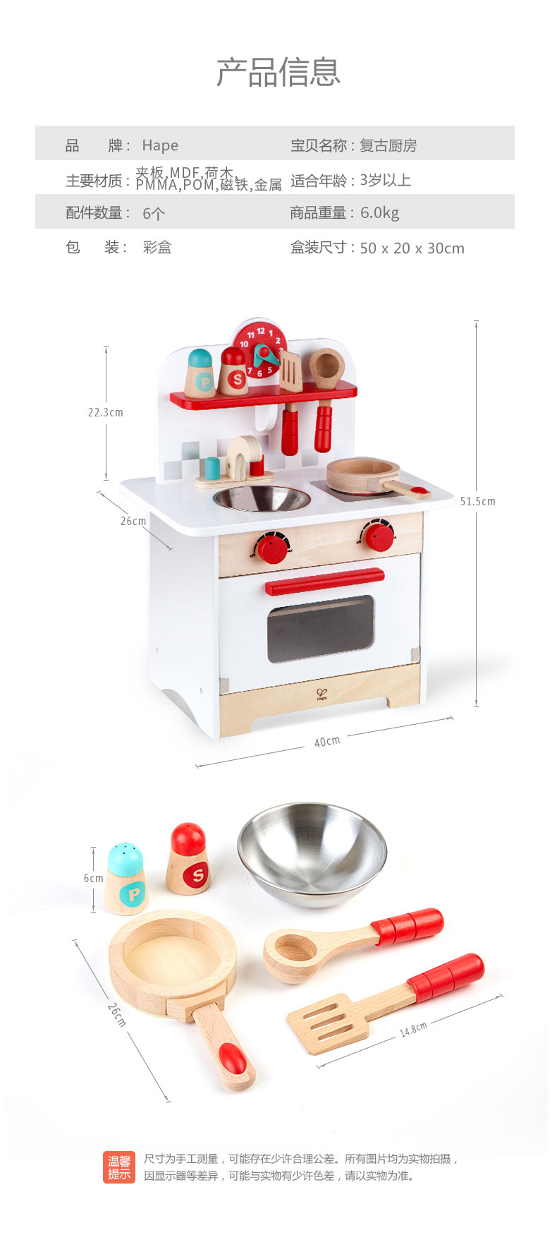 Hape(德国)早教启蒙玩具过家家木质仿真厨具复古厨房男女孩礼物E8118
