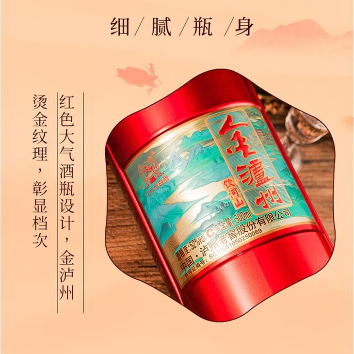 【清仓】2023年 泸州老窖股份 金泸州 饮河山52度 浓香型白酒500ml*6瓶