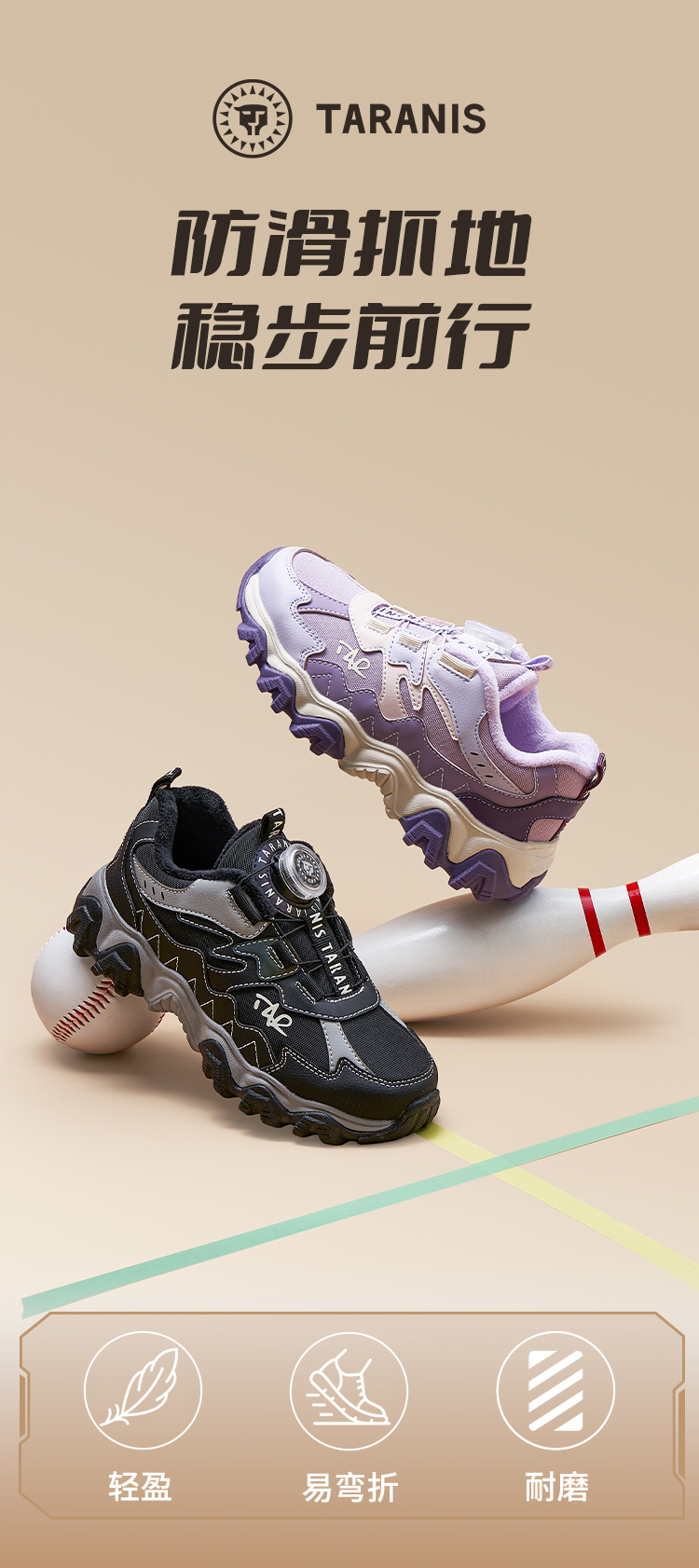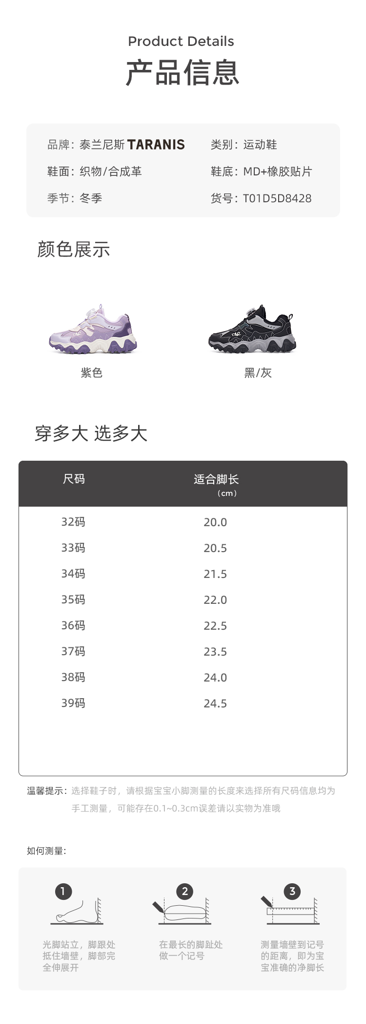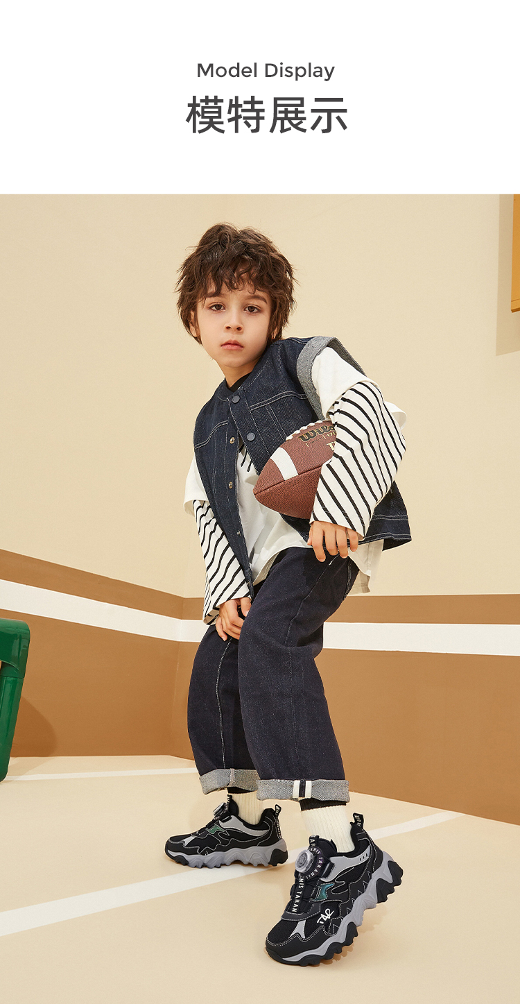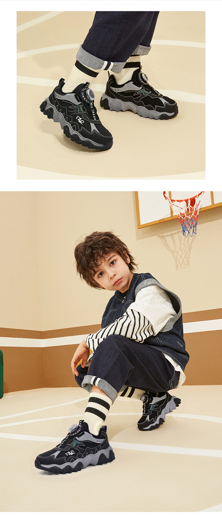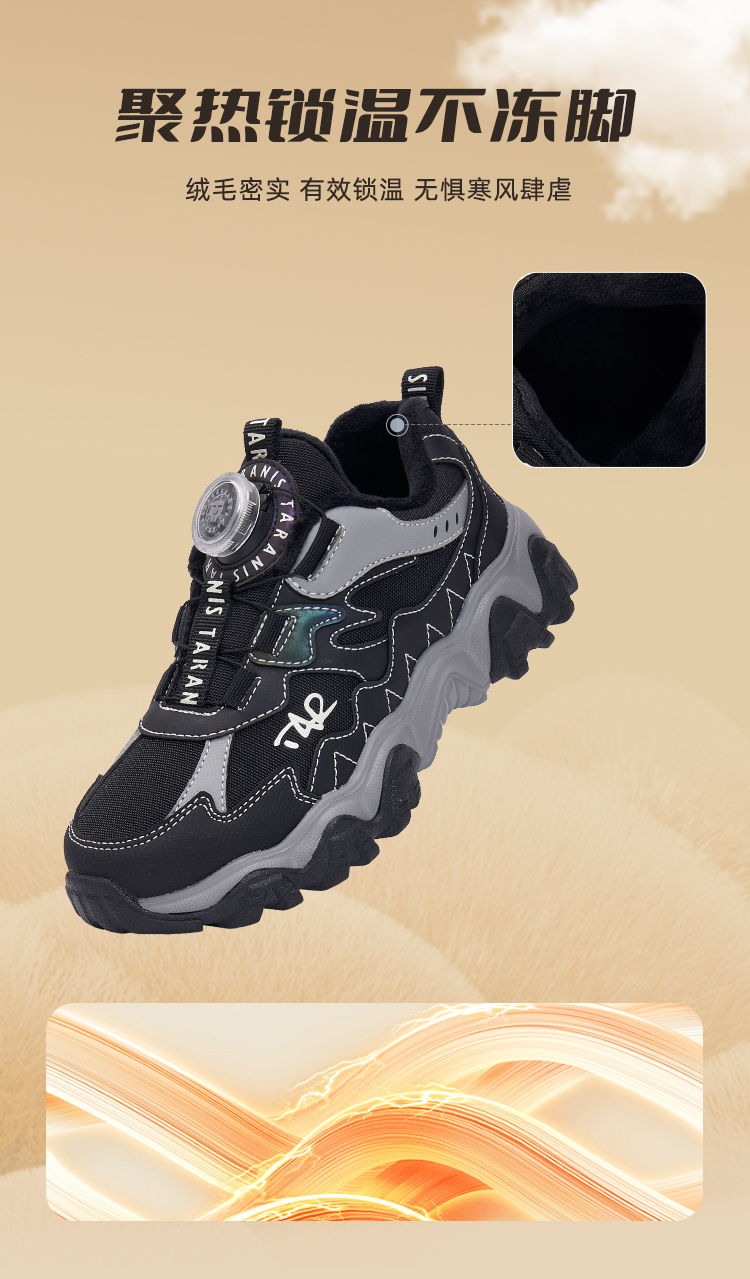 【泰兰尼斯】【新品】中大童冬款加绒时尚科技旋钮扣运动鞋T01D5D8428