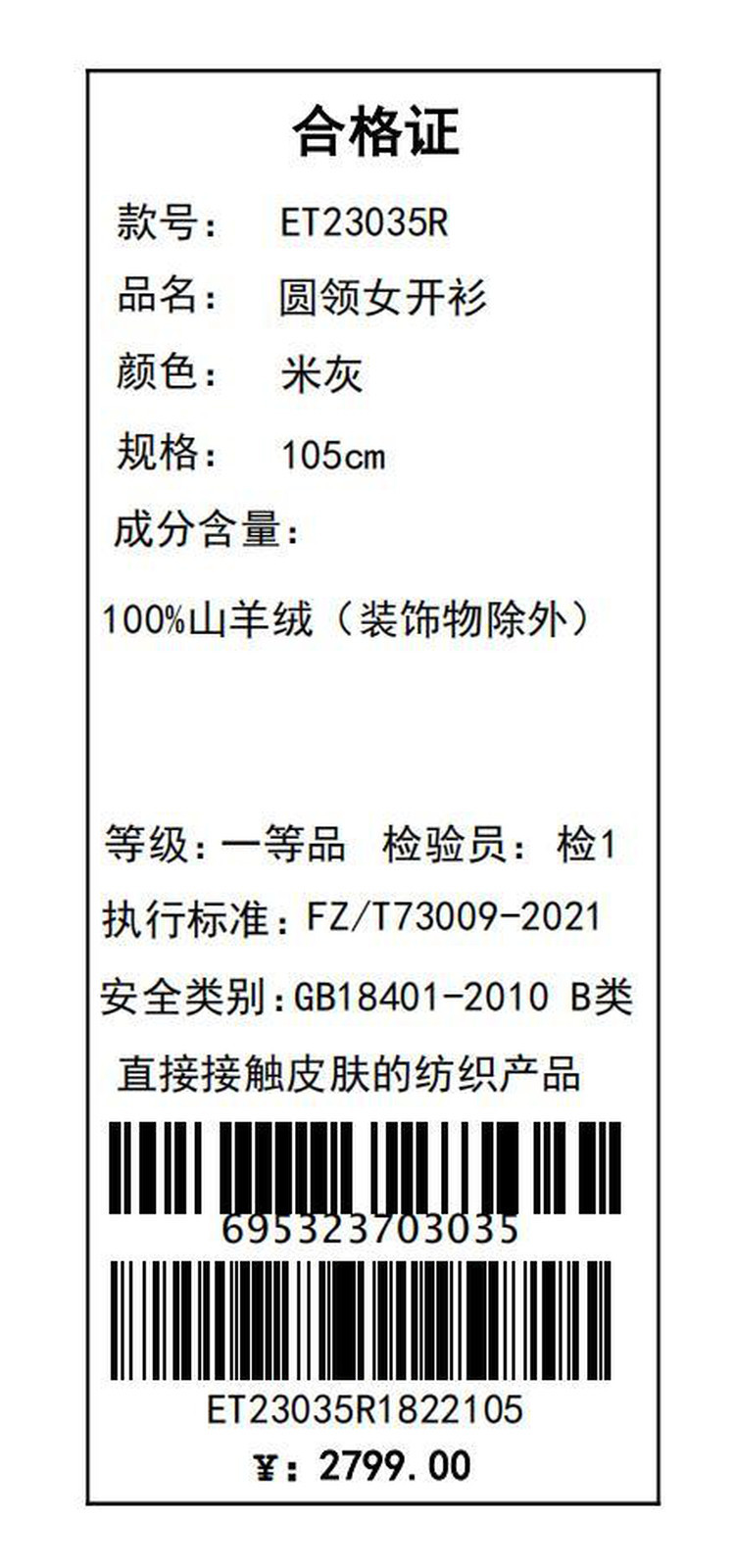 PALUOPO/PL圆领女开衫ET23035R/约重235g帕罗