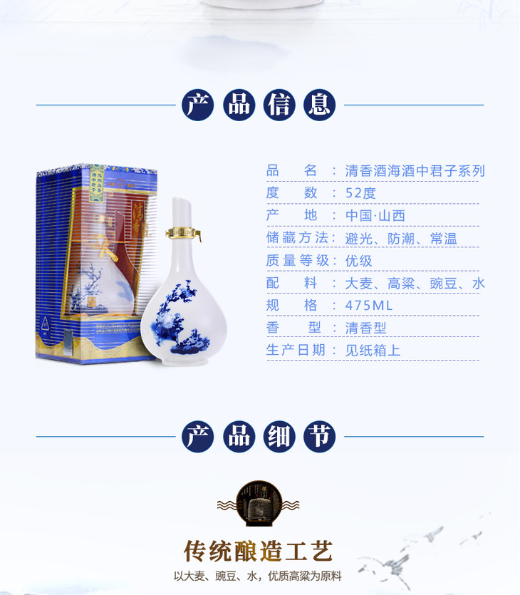 【推荐】汾酒 清香酒海梅兰竹菊 52度清香型白酒 475ml*4整箱装