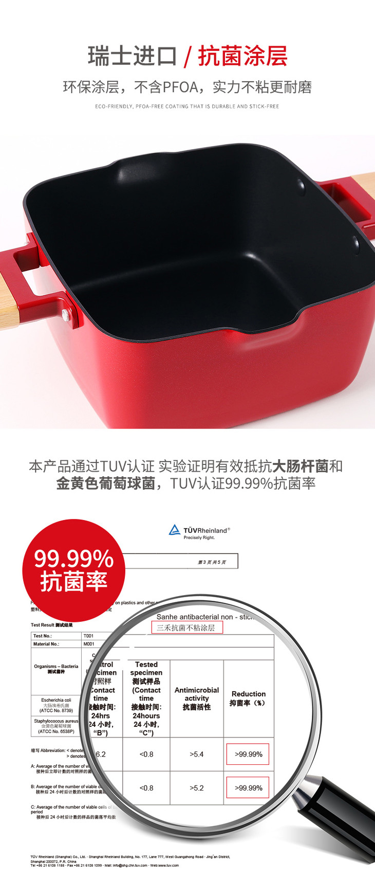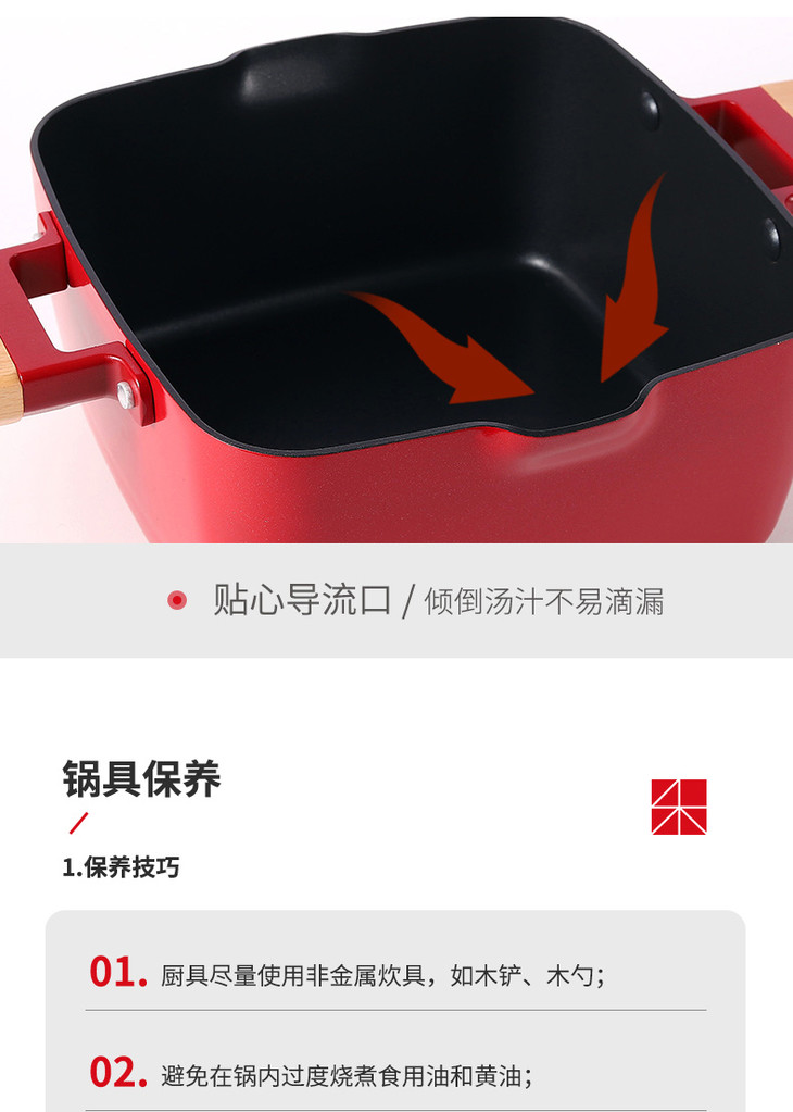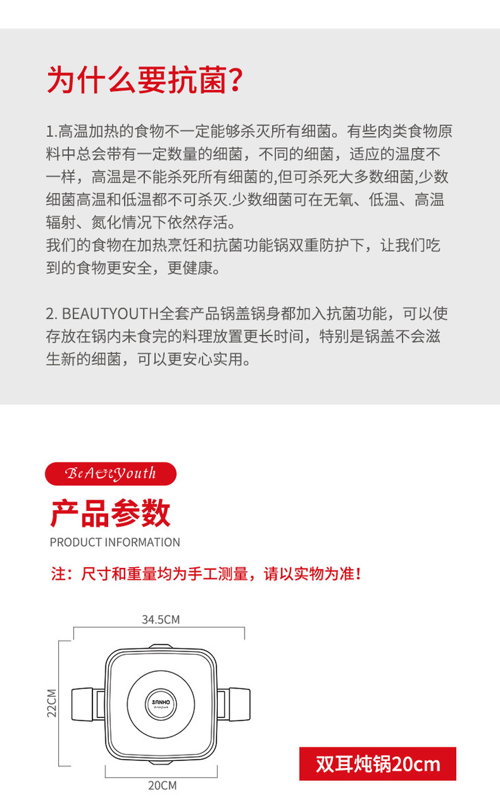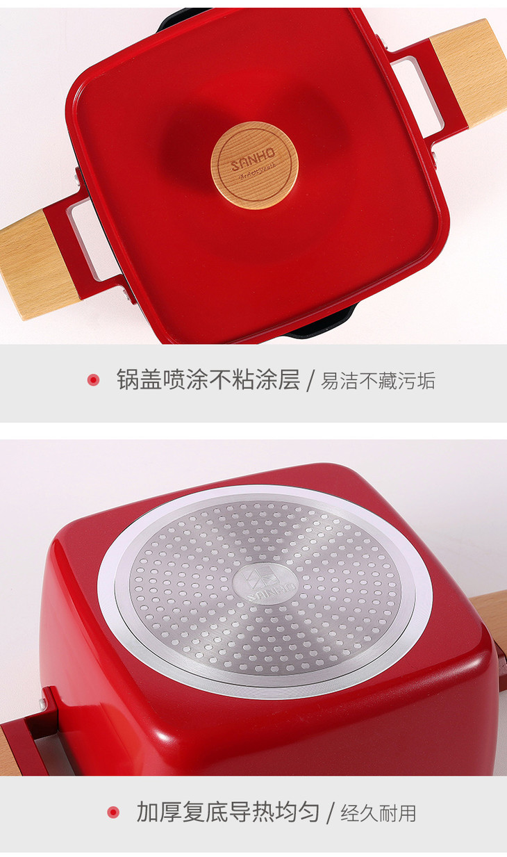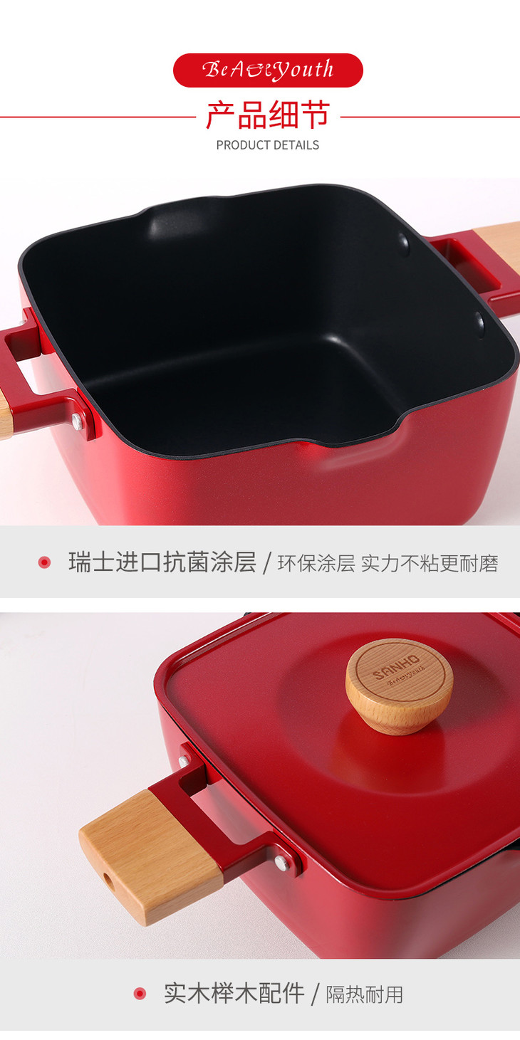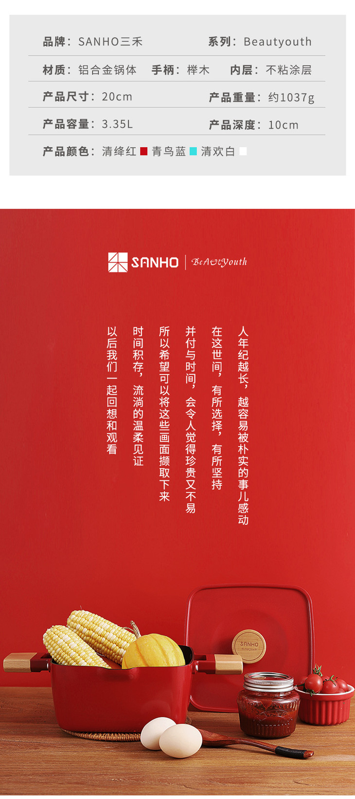 【三禾锅具】三禾Beautyouth小清新不粘锅汤锅双耳炖锅电磁炉通用顿汤煲汤火锅家用燃气方锅炖锅20cm