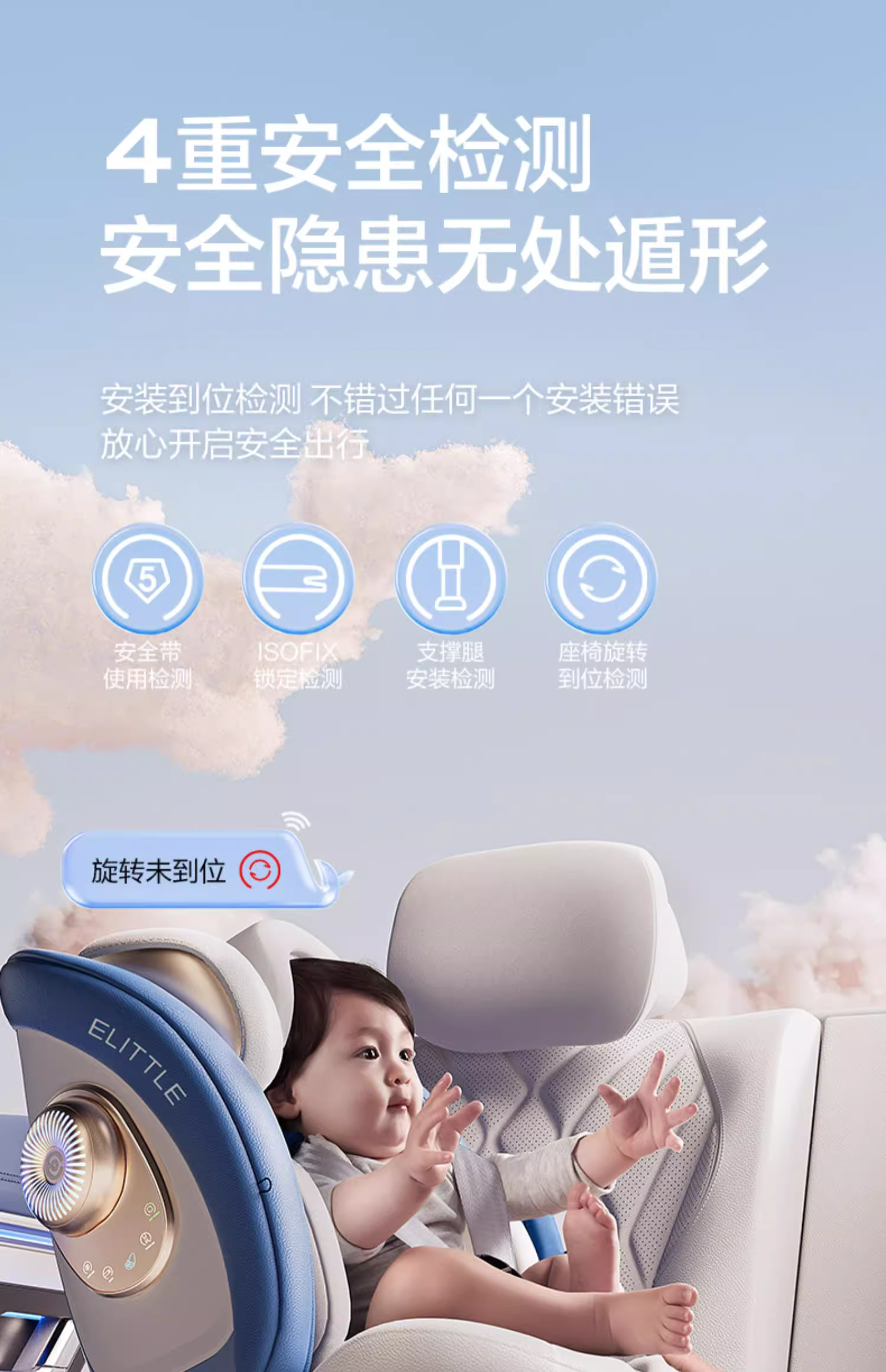 【分销专属】逸乐途S8鲸智能通风儿童宝宝安全座椅汽车载360旋转0-7岁婴儿ADAC