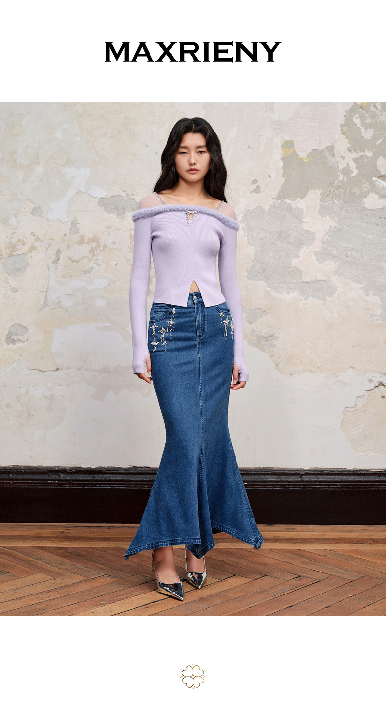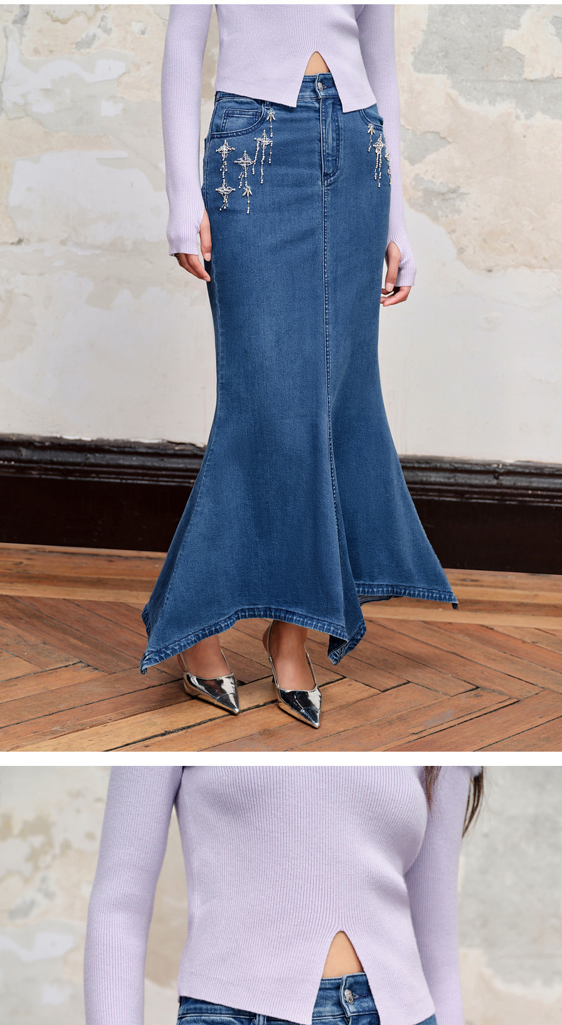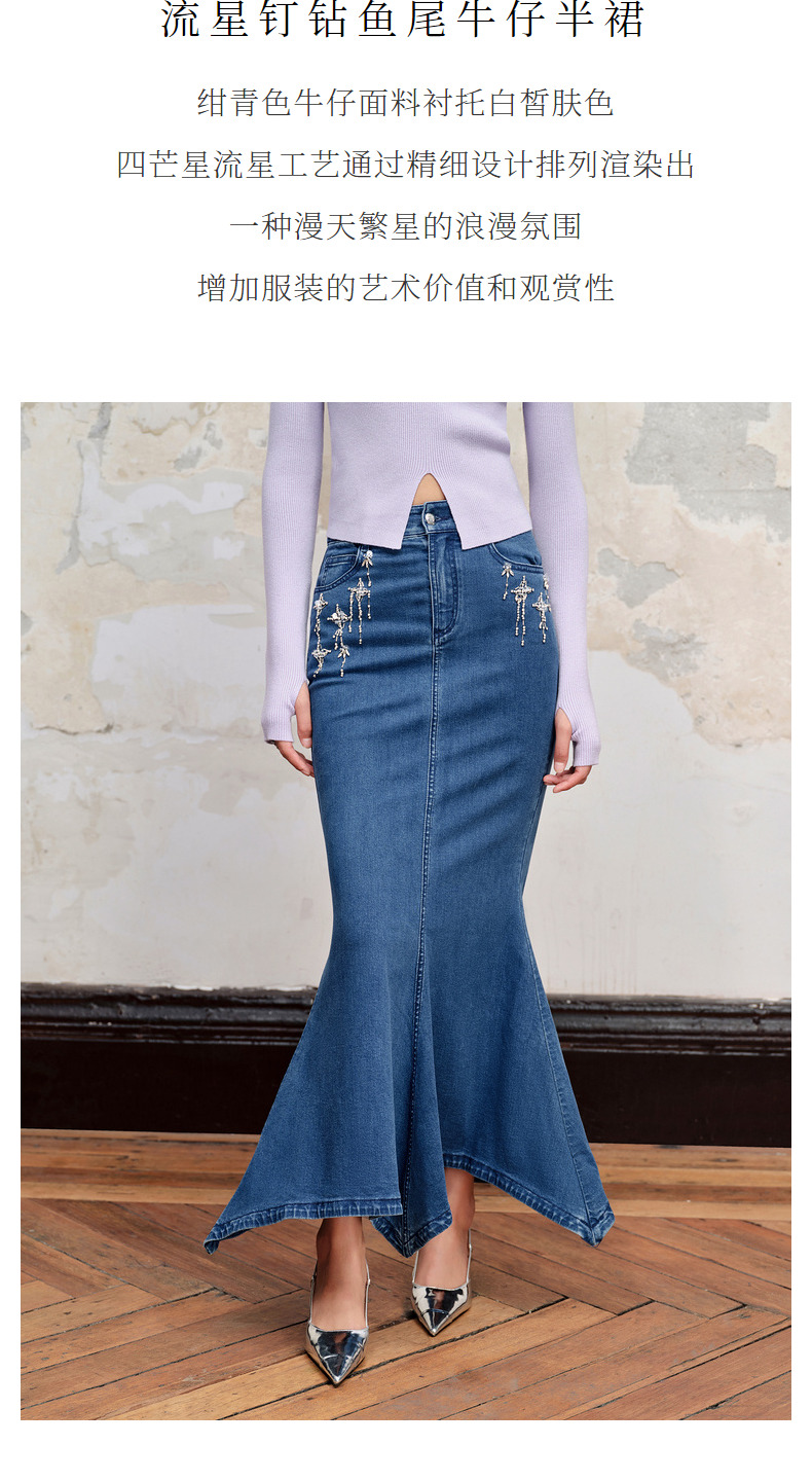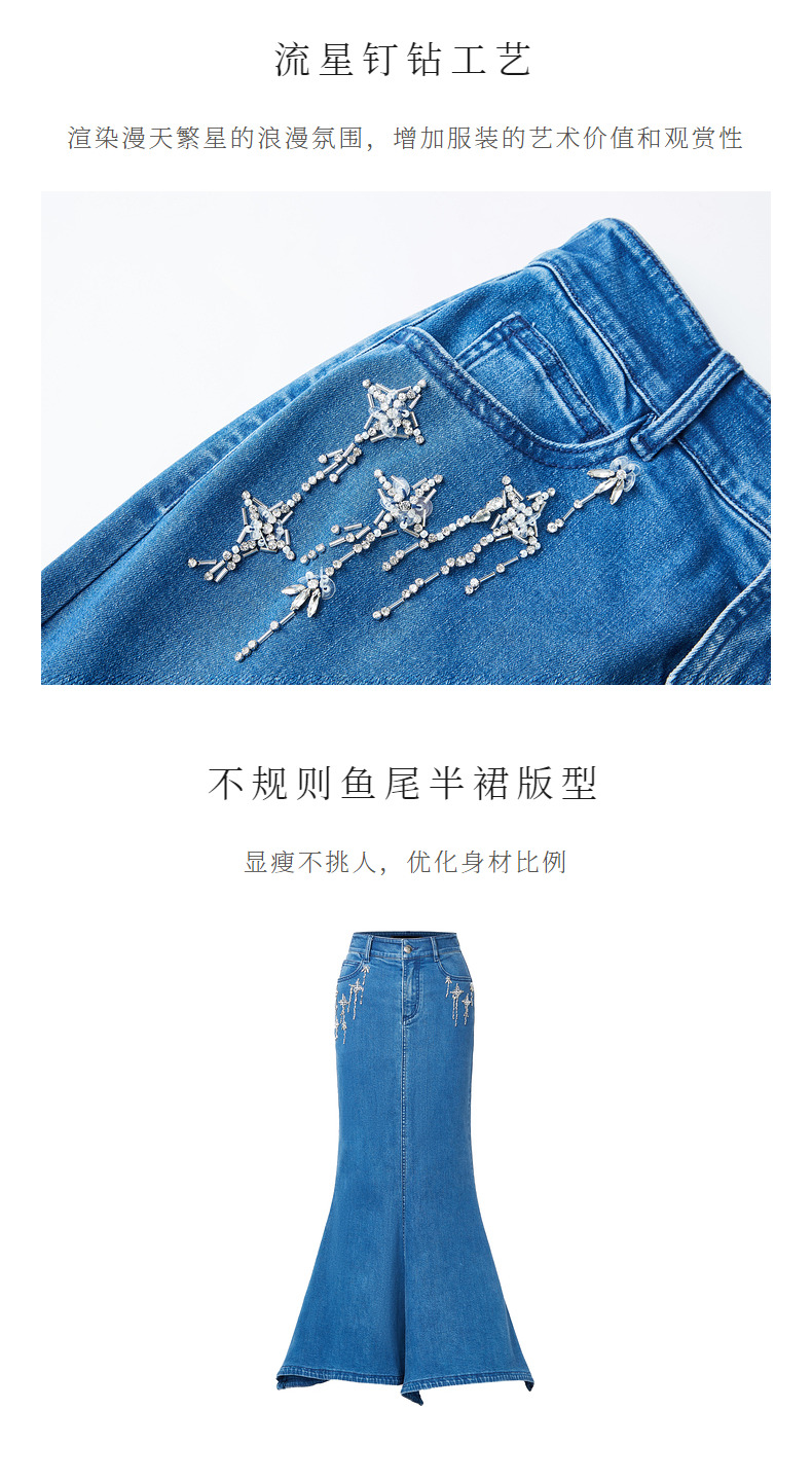 MAXRIENY*浪漫感流星钉钻鱼尾牛仔半裙(货号:MC88SK535)