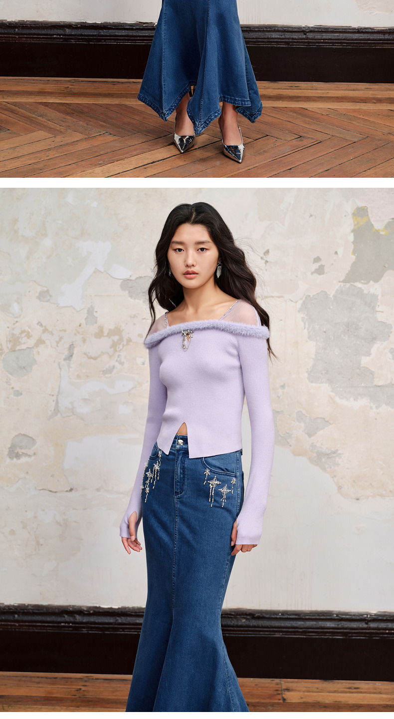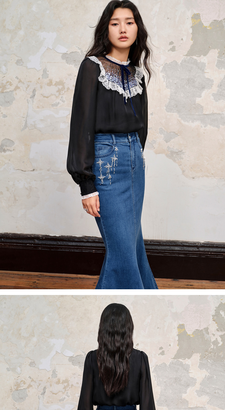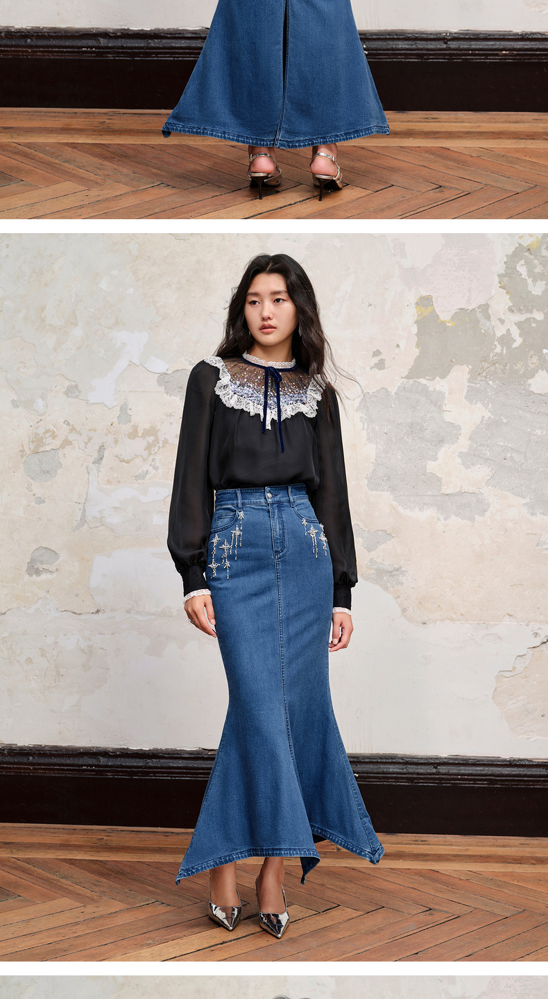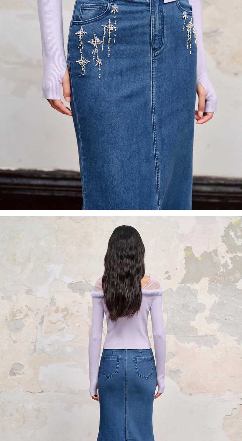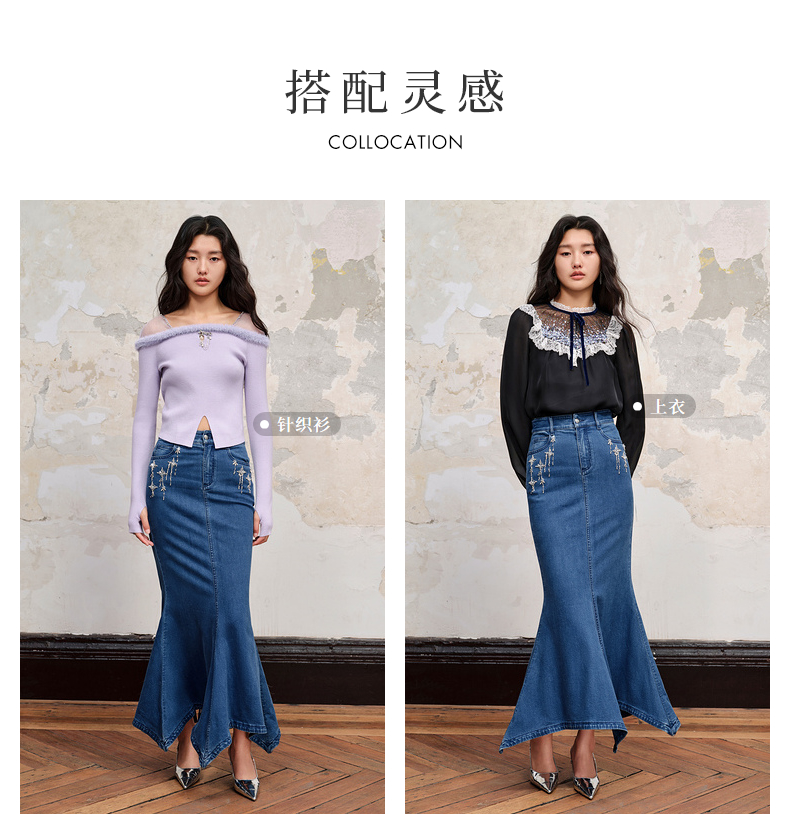MAXRIENY*浪漫感流星钉钻鱼尾牛仔半裙(货号:MC88SK535)