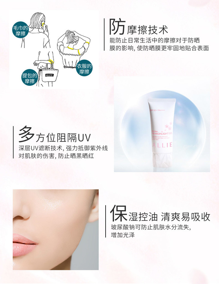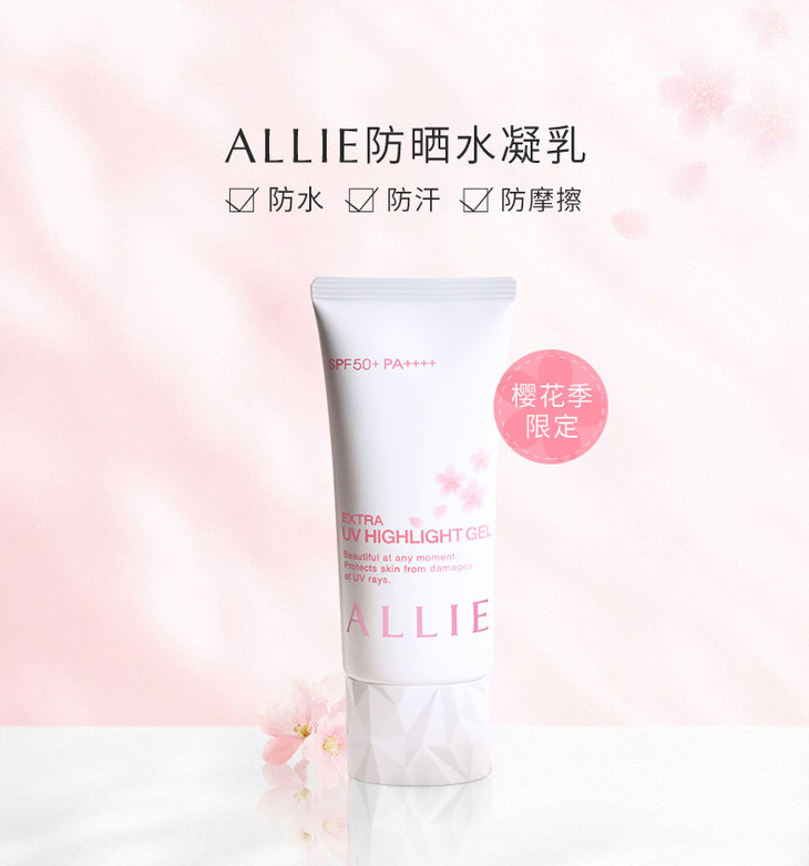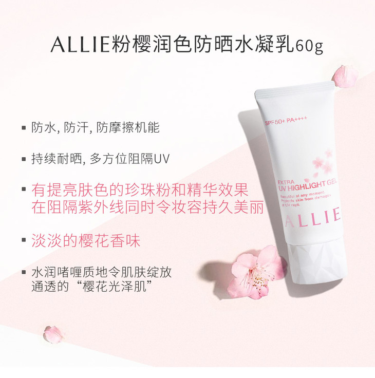 日本嘉娜宝allie保湿防晒霜#樱花版🌟非常自然的提亮光泽✨,效果堪比妆前乳,素颜不想化妆时出门👏,使用后皮肤显得明亮了不少,淡粉色质地特别水润💦,保湿效果没话说,颜值又高又好用😍😍😍