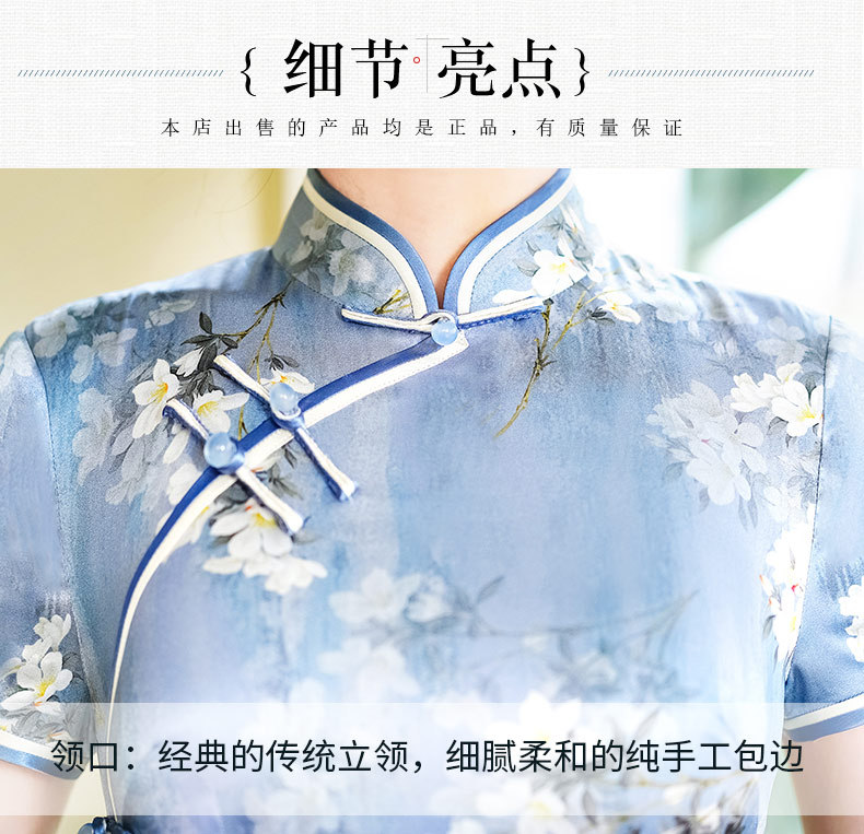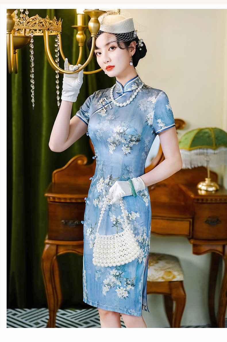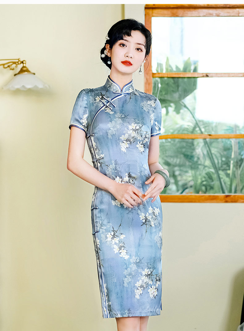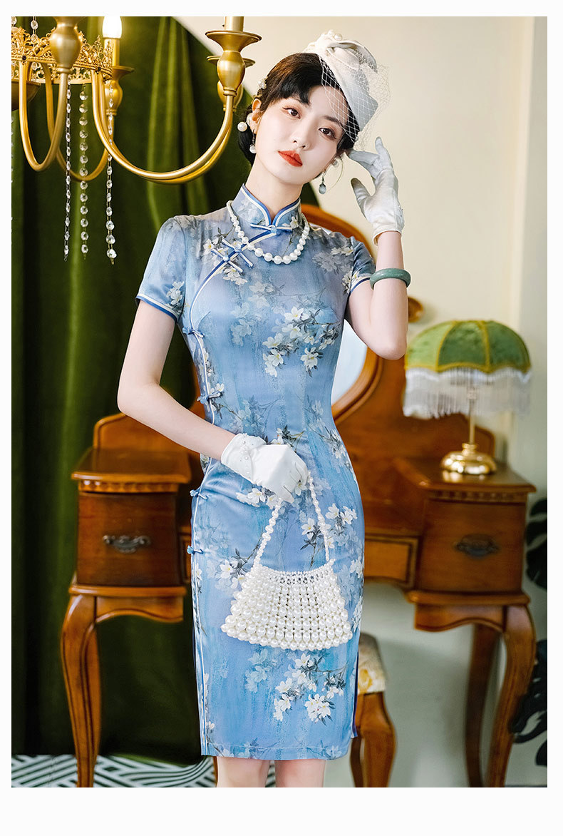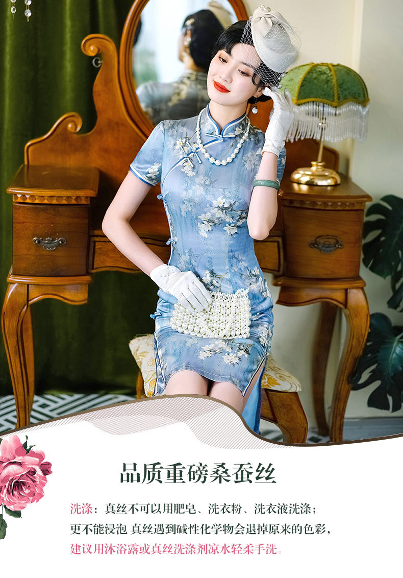WX-D336真丝改良版复古中国风日常短款修身连衣裙少女