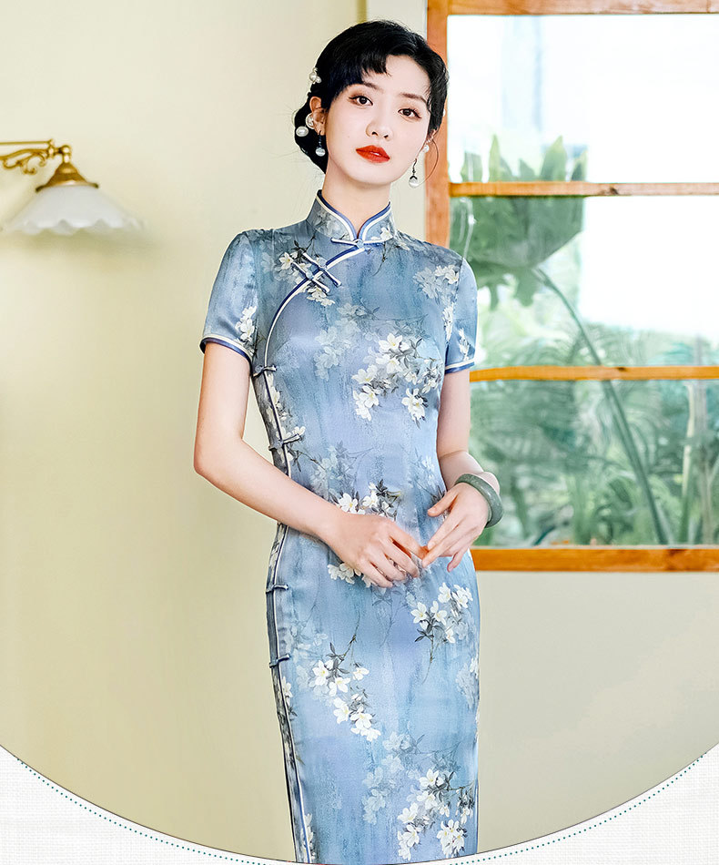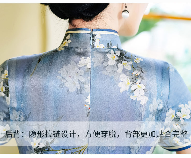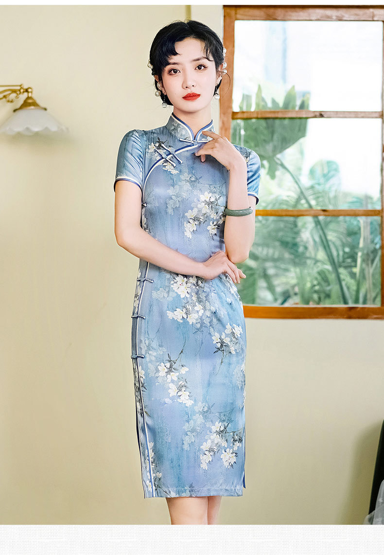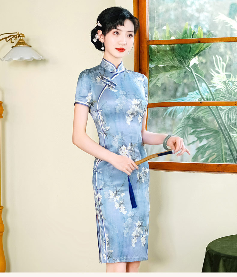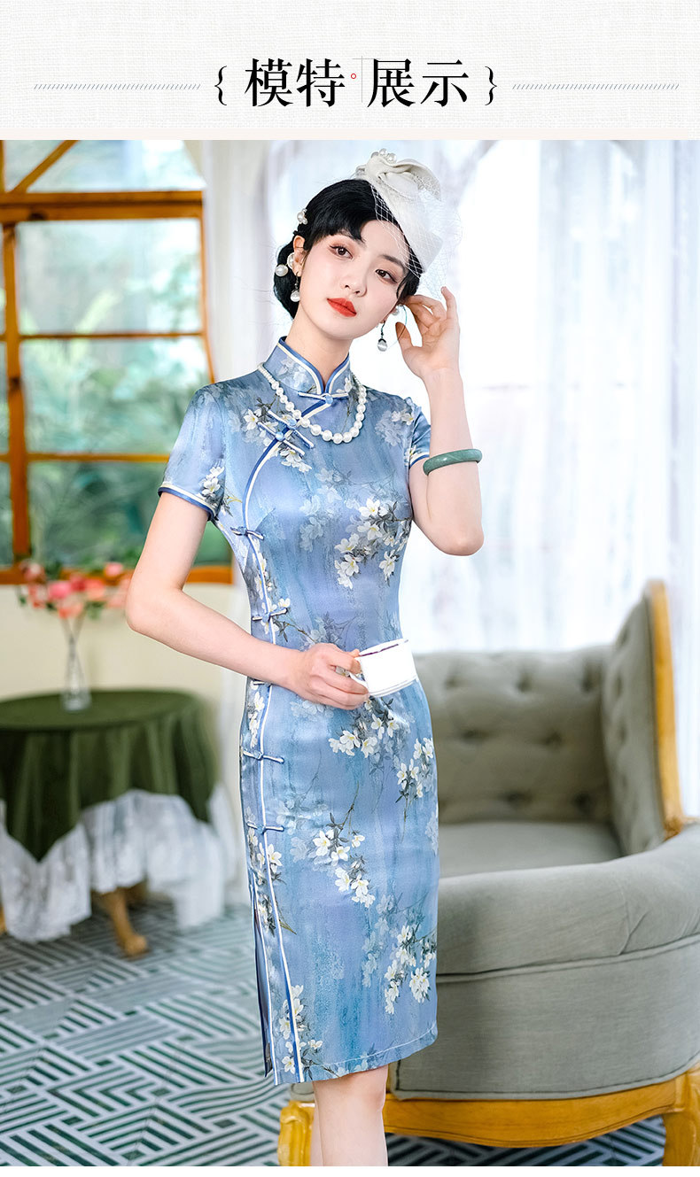 WX-D336真丝改良版复古中国风日常短款修身连衣裙少女