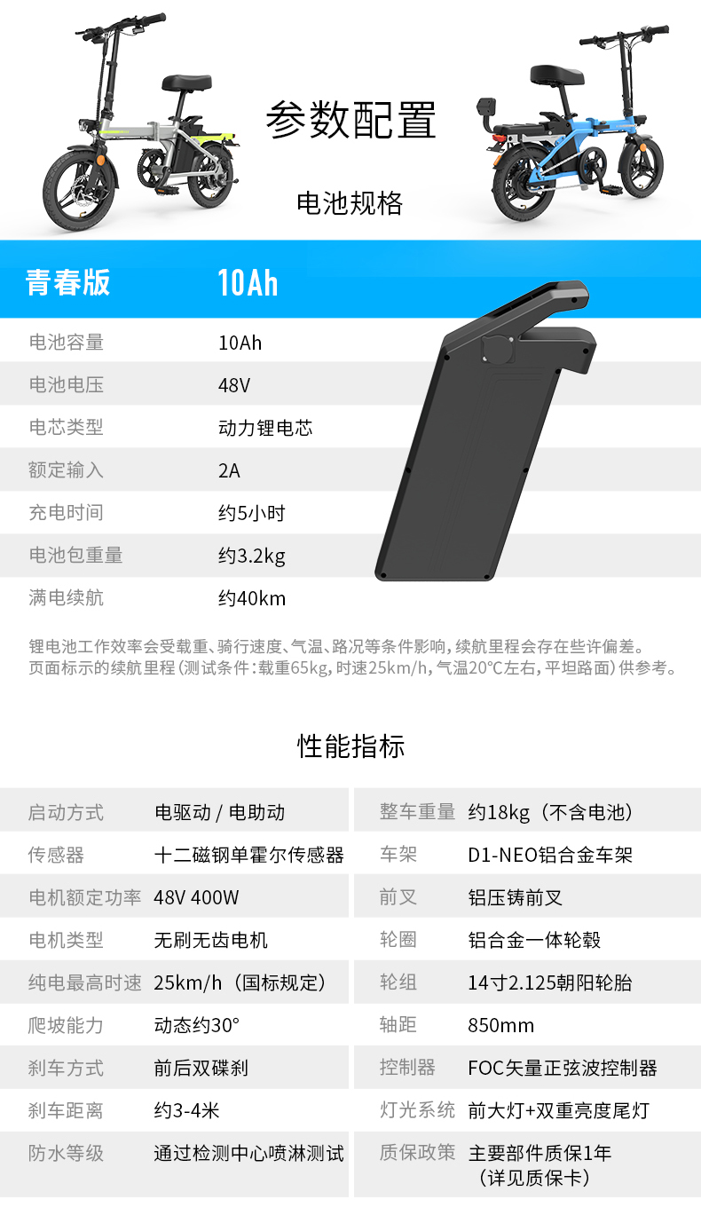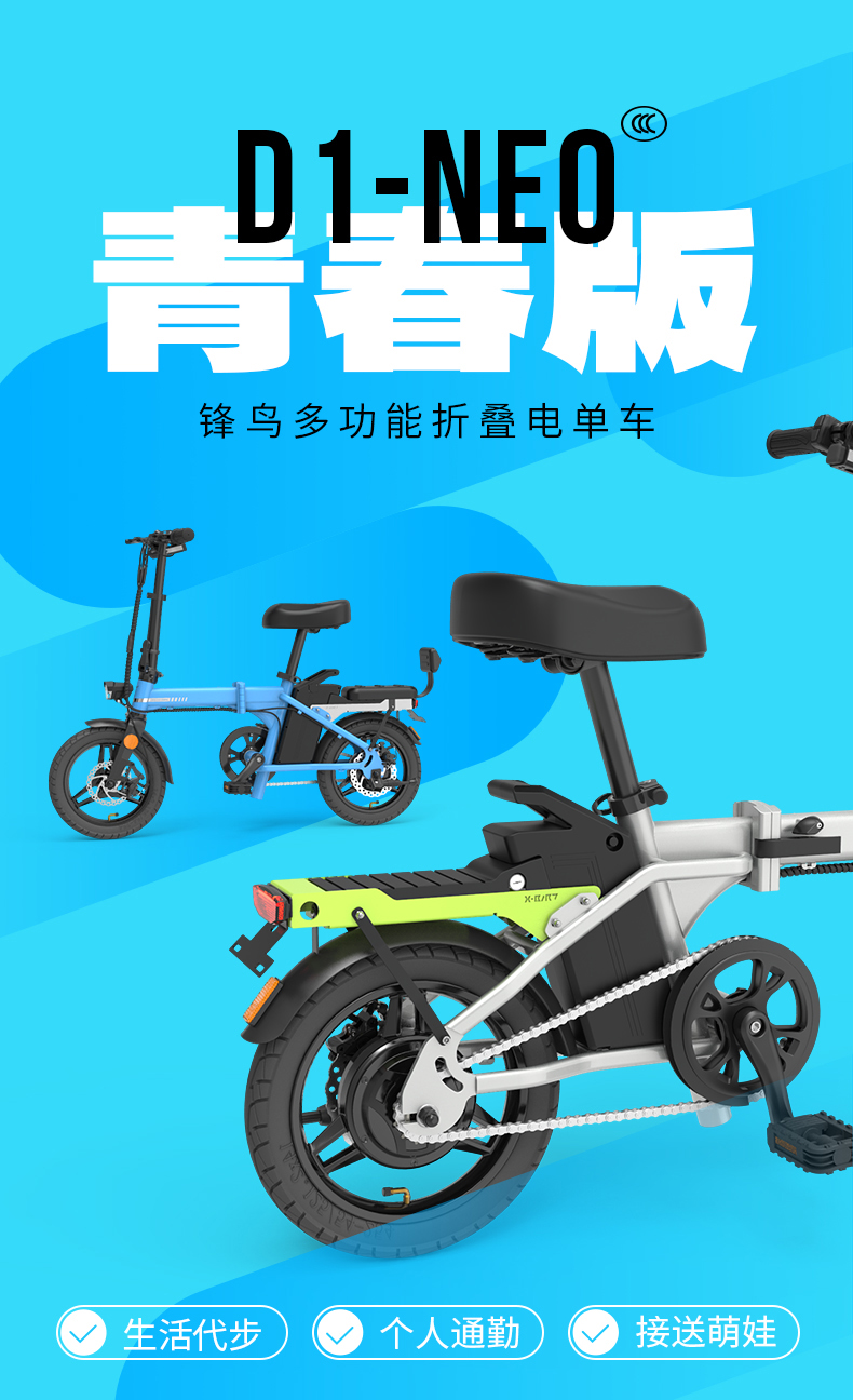 锋鸟D1-NEO 折叠电单车青春版代步车买菜车带娃短途代步