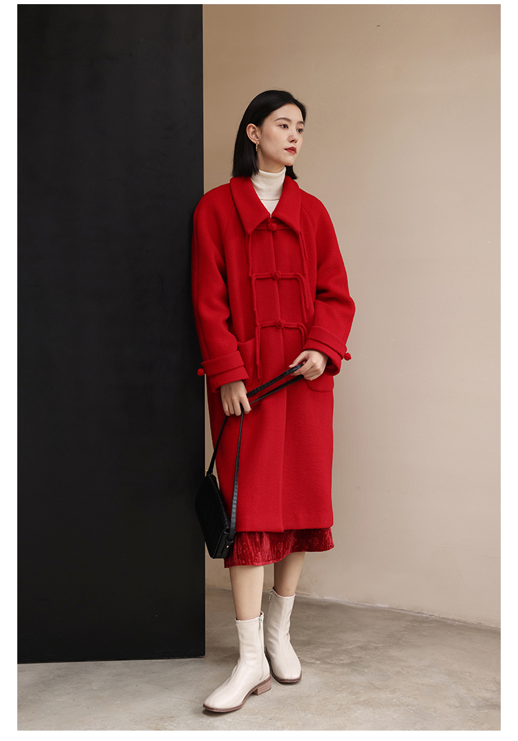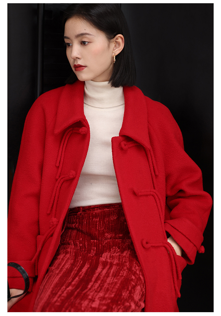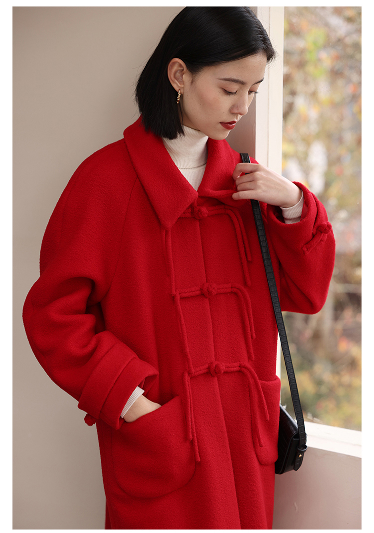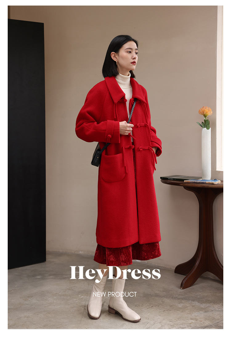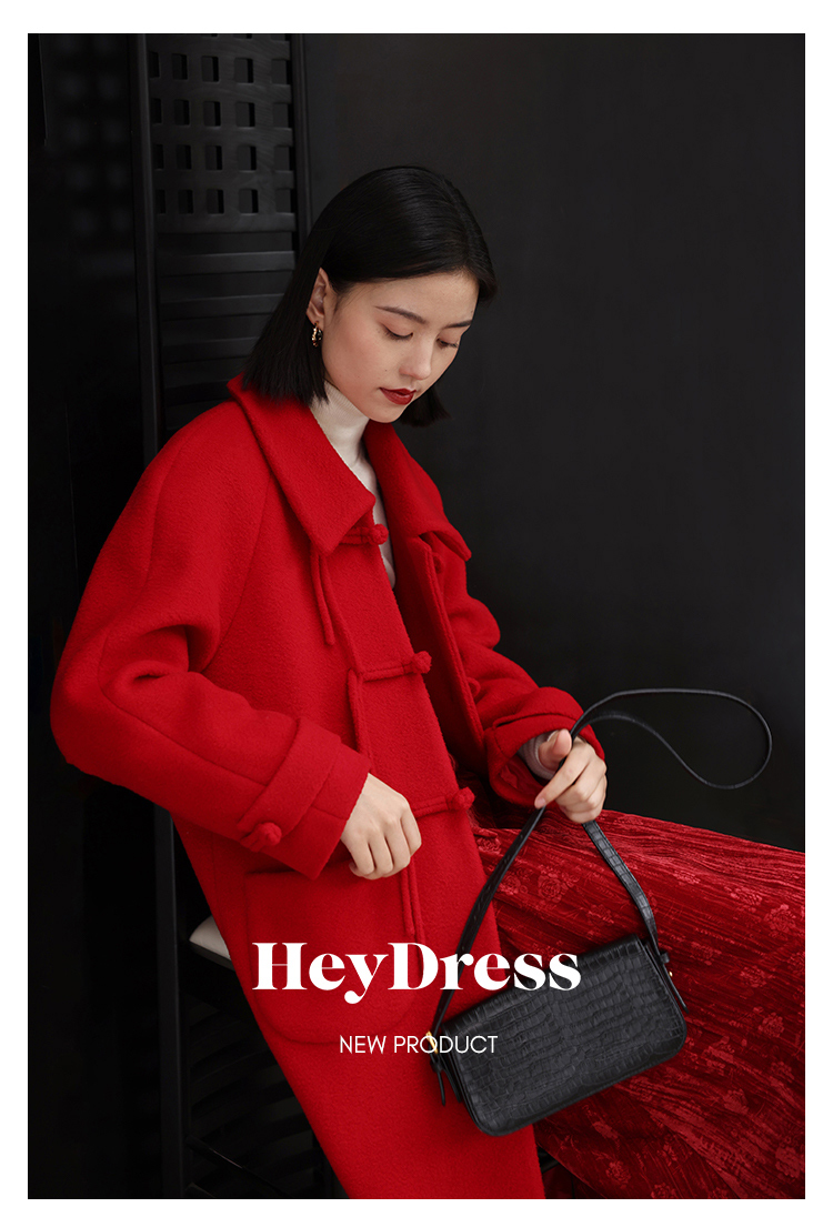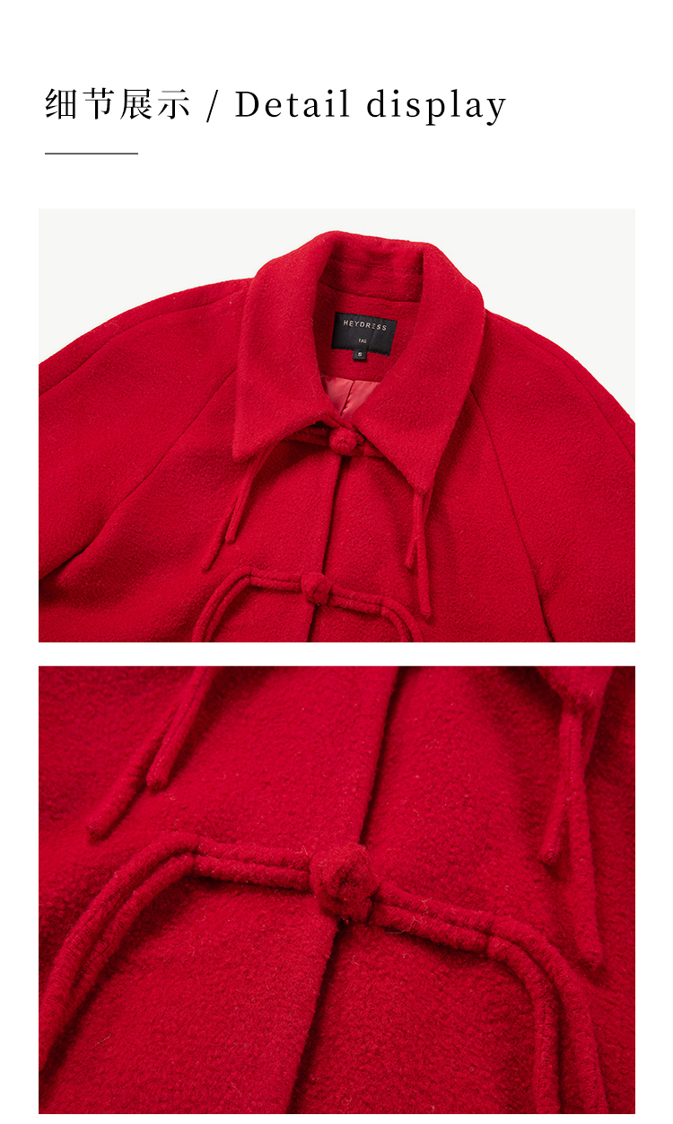 HeyDress中式国风盘扣毛呢外套女秋冬复古新年红圣诞红羊毛大衣